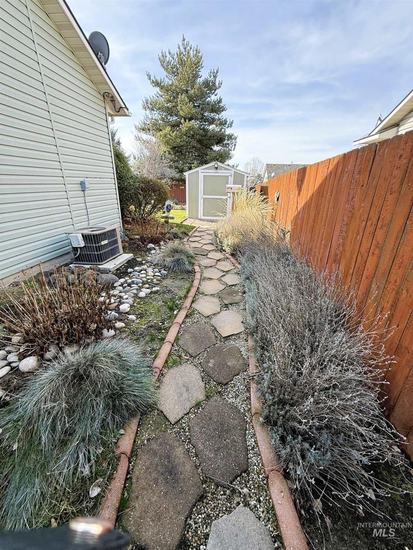 Cute as a button and impeccably maintained! This charming single-family home offers a desirable split-bedroom floor plan and reflects true pride of ownership from its one and only owner. Situated on a nice-sized lot within city limits, the fully fenced backyard is a gardener’s dream with irrigation water available—perfect for flowers, raised beds, or summer entertaining. She shed w/power. Enjoy the convenience of a two-car garage and the comfort of a well-cared-for home that’s ready for its next chapter. A rare find combining charm, functionality, and location! Quick trip to Ada and Canyon County for commuters and shopping.