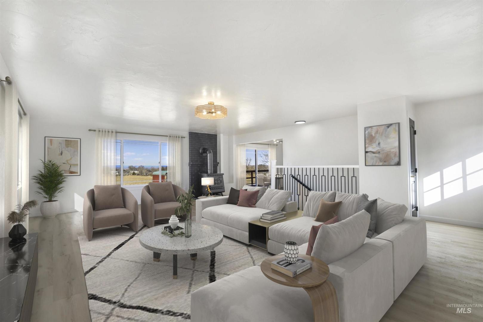 Welcome to your private country retreat! This stunning property features a fully renovated interior with all-new appliances, blending modern comfort with timeless charm. Set on 5 beautiful acres with fully fenced pastures ready for your animals, mature fruit trees, and 5 valuable water shares, the land is as functional as it is picturesque. A massive shop offers endless possibilities for hobbies, storage, or work, while the charming “chicken castle” is ready for your feathered friends. Enjoy peaceful mornings and golden evenings from the front and back balconies—perfectly positioned so you never miss a sunrise or sunset. Serene, spacious, and thoughtfully updated, this property is country living at its finest