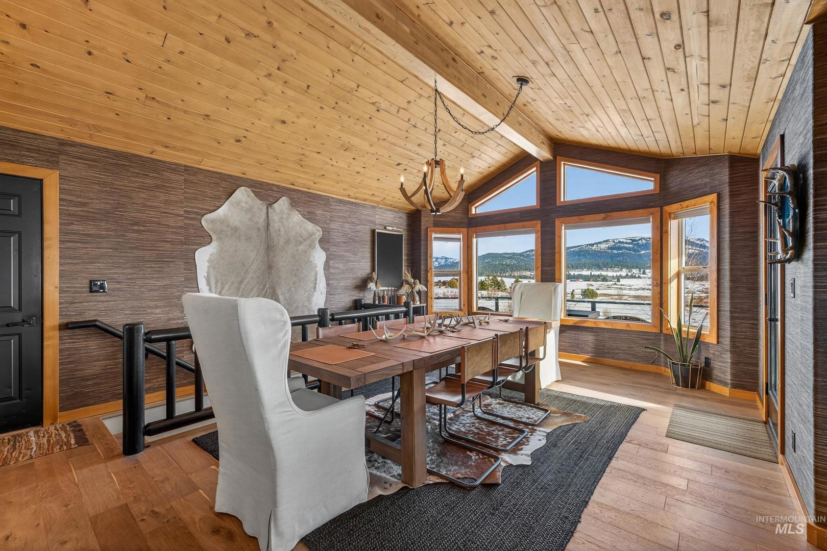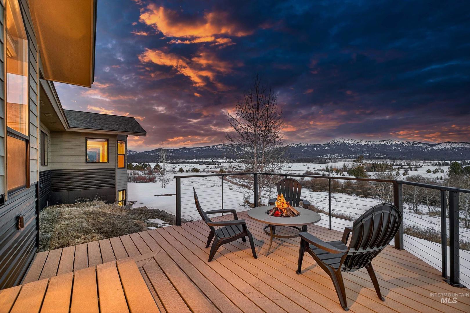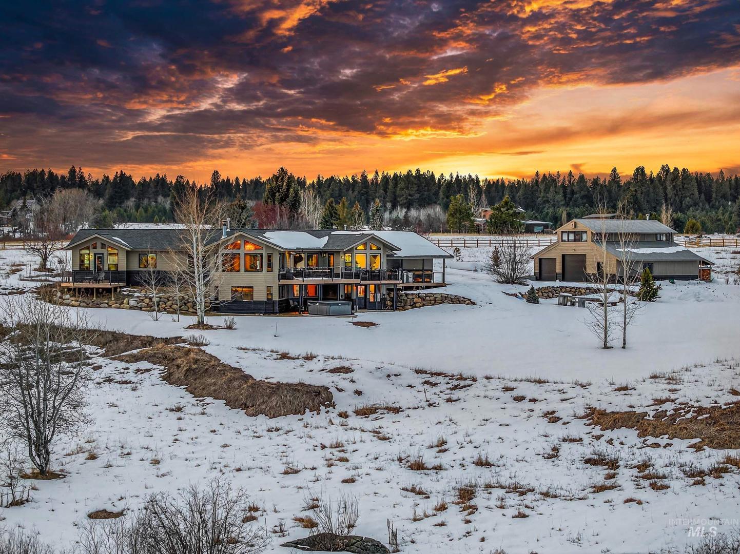 A Private 10-Acre Estate in McCall Where Luxury Meets Legacy Living. This is more than a home, its a rare opportunity to own a private estate in one of Idahos most sought-after destinations; where horses are welcome and space is sacred. Set on 10 acres with new fencing, barn/shop, and pond, this is a luxury ranch-inspired retreat. Whether you envision an equestrian haven, a private wellness compound, or a legacy estate for generations to gather, this property delivers on every level. The completely remodeled residence exudes warmth and refinement. Rich wood flooring flows throughout, curated designer lighting sets the tone, and a statement wood-burning fireplace anchors the main living space. The beautifully reimagined kitchen pairs rustic texture with modern elegance new countertops, appliances, and fixtures open seamlessly into an expansive dining area. The main level features three bedrooms and two spa-inspired bathrooms. On the lower level, a generous bunk room, full bath, and a reimagined game room with bar and shuffleboard. Outdoors a 14-person hot tub overlooks Jug Mountain; a tranquil pond, updated deck railings, a newly resurfaced driveway, and new horse fencing surround the 2,400-square-foot fully insulated barn and shop complete with wood-burning stove and sauna. A semi-finished loft space could be guest quarters, studio, fitness space, or future ADU potential.