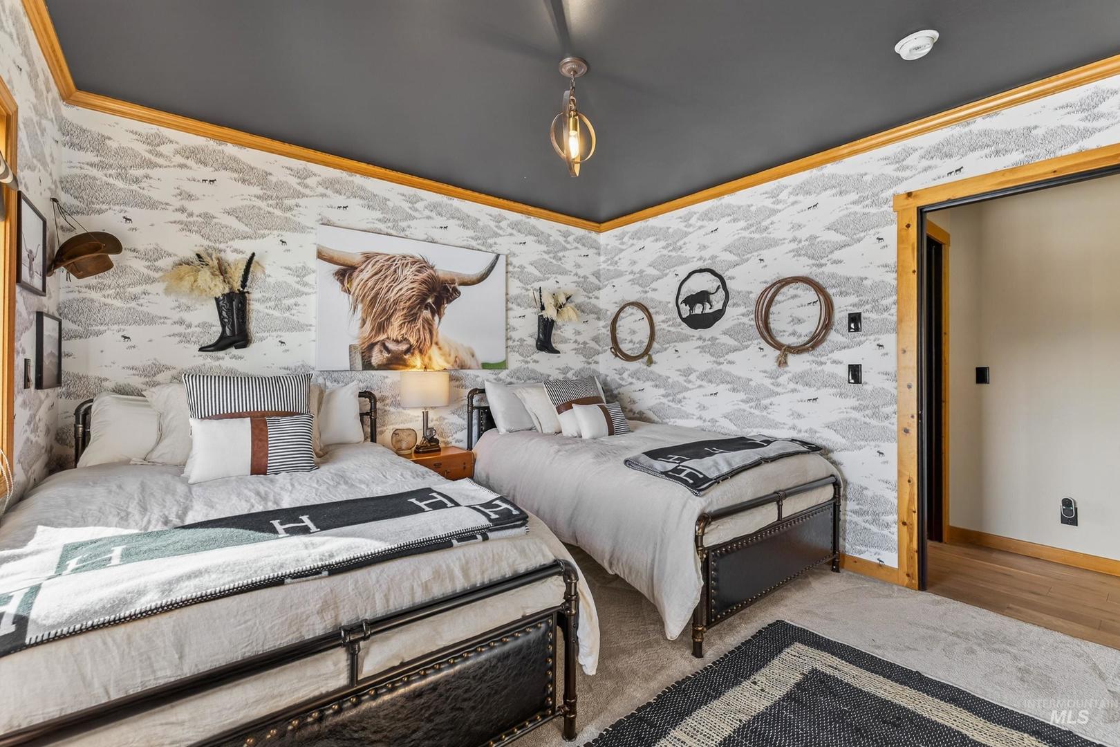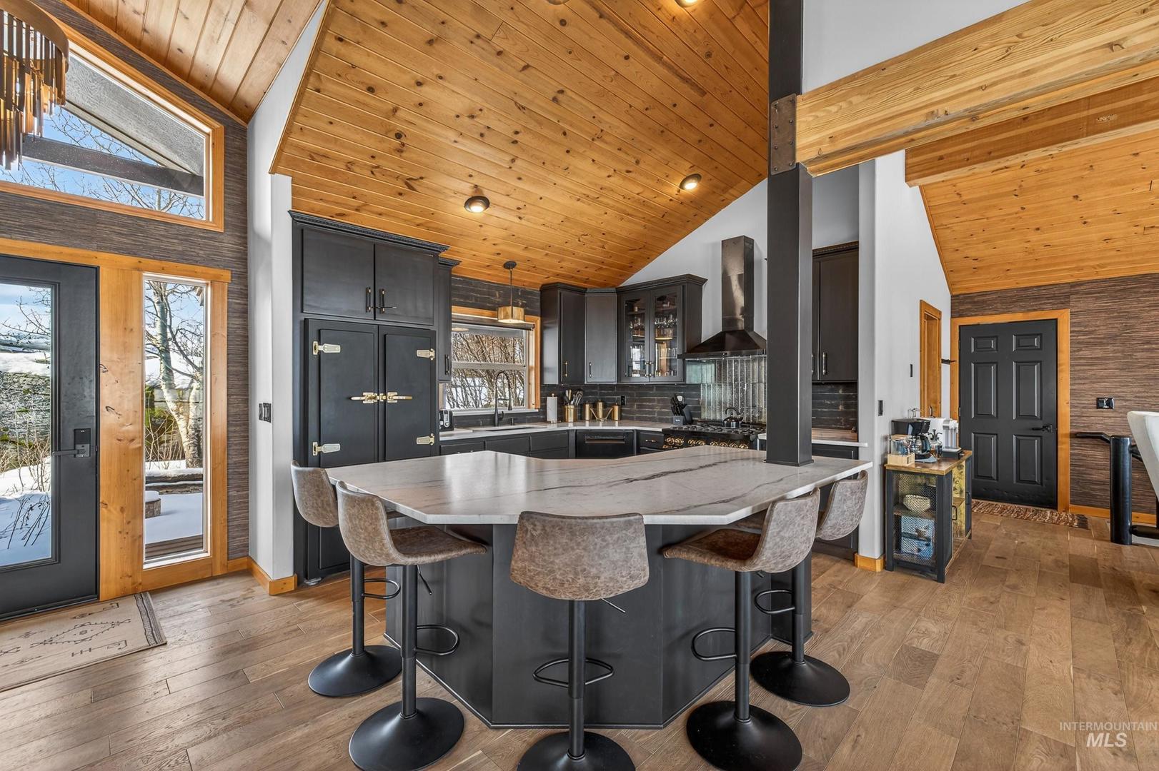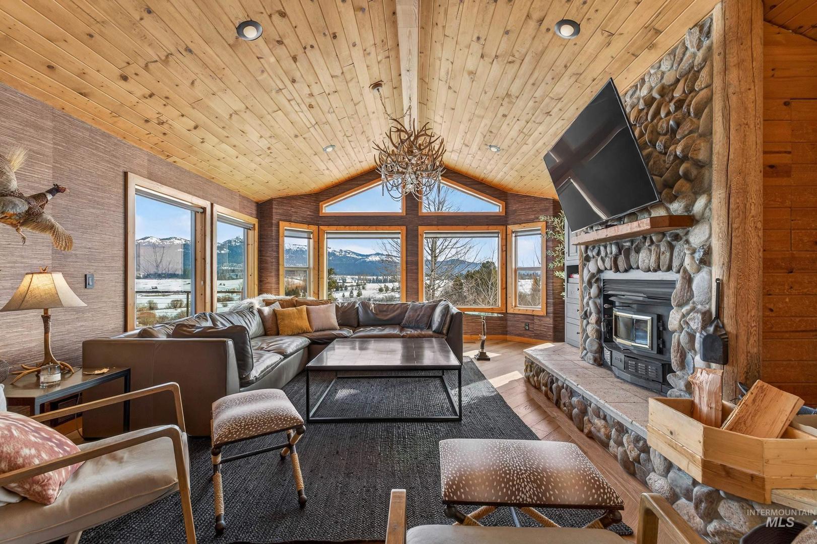 A Private 10-Acre Estate in McCall Where Luxury Meets Legacy Living. This is more than a home, its a rare opportunity to own a private estate in one of Idahos most sought-after destinations; where horses are welcome and space is sacred. Set on 10 acres with new fencing, barn/shop, and pond, this is a luxury ranch-inspired retreat. Whether you envision an equestrian haven, a private wellness compound, or a legacy estate for generations to gather, this property delivers on every level. The completely remodeled residence exudes warmth and refinement. Rich wood flooring flows throughout, curated designer lighting sets the tone, and a statement wood-burning fireplace anchors the main living space. The beautifully reimagined kitchen pairs rustic texture with modern elegance new countertops, appliances, and fixtures open seamlessly into an expansive dining area. The main level features three bedrooms and two spa-inspired bathrooms. On the lower level, a generous bunk room, full bath, and a reimagined game room with bar and shuffleboard. Outdoors a 14-person hot tub overlooks Jug Mountain; a tranquil pond, updated deck railings, a newly resurfaced driveway, and new horse fencing surround the 2,400-square-foot fully insulated barn and shop complete with wood-burning stove and sauna. A semi-finished loft space could be guest quarters, studio, fitness space, or future ADU potential.