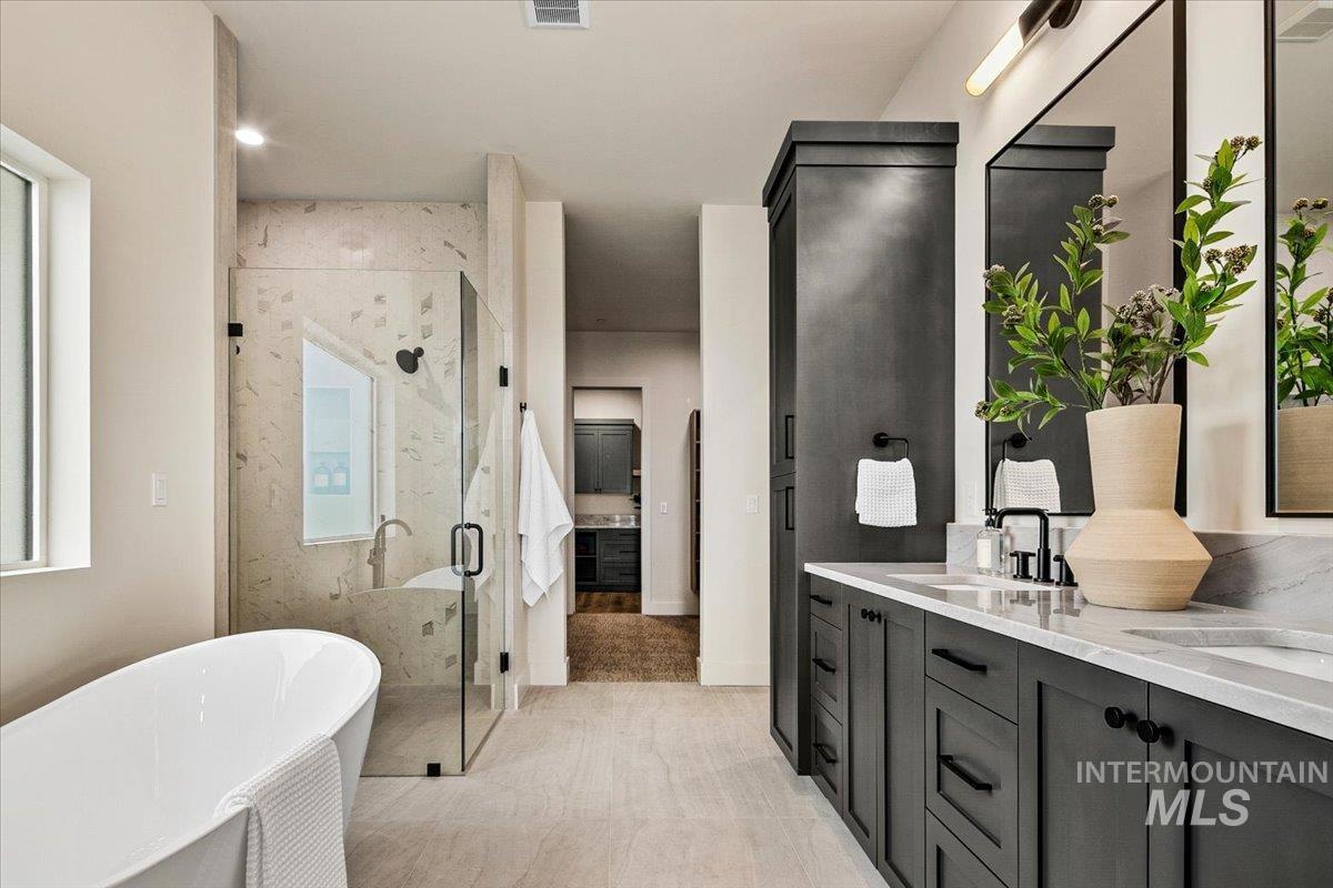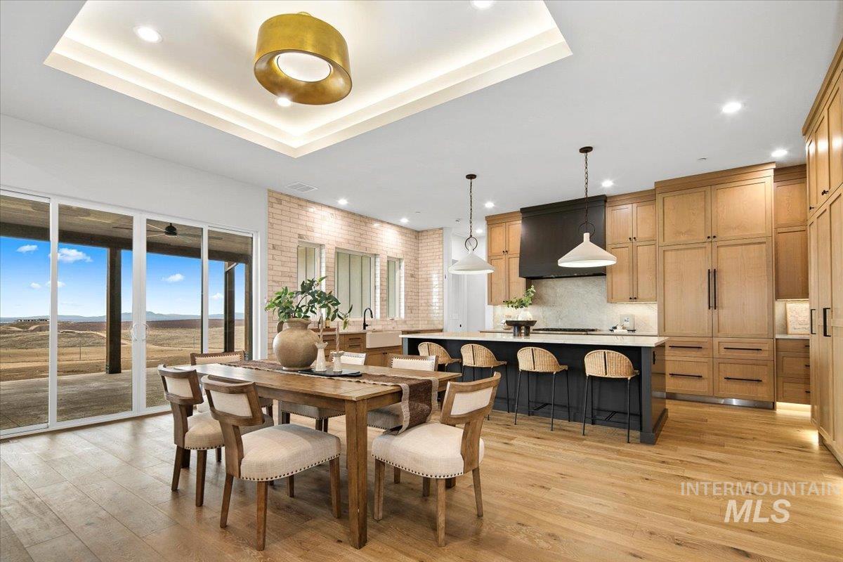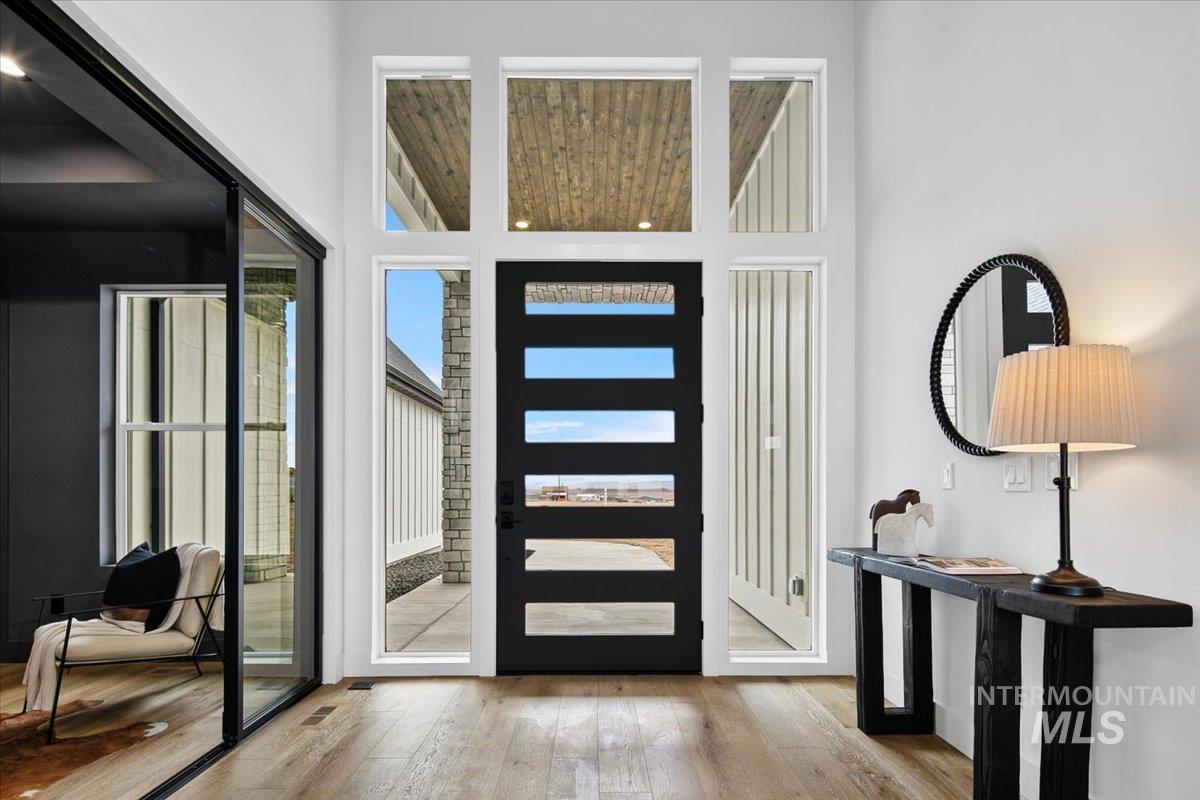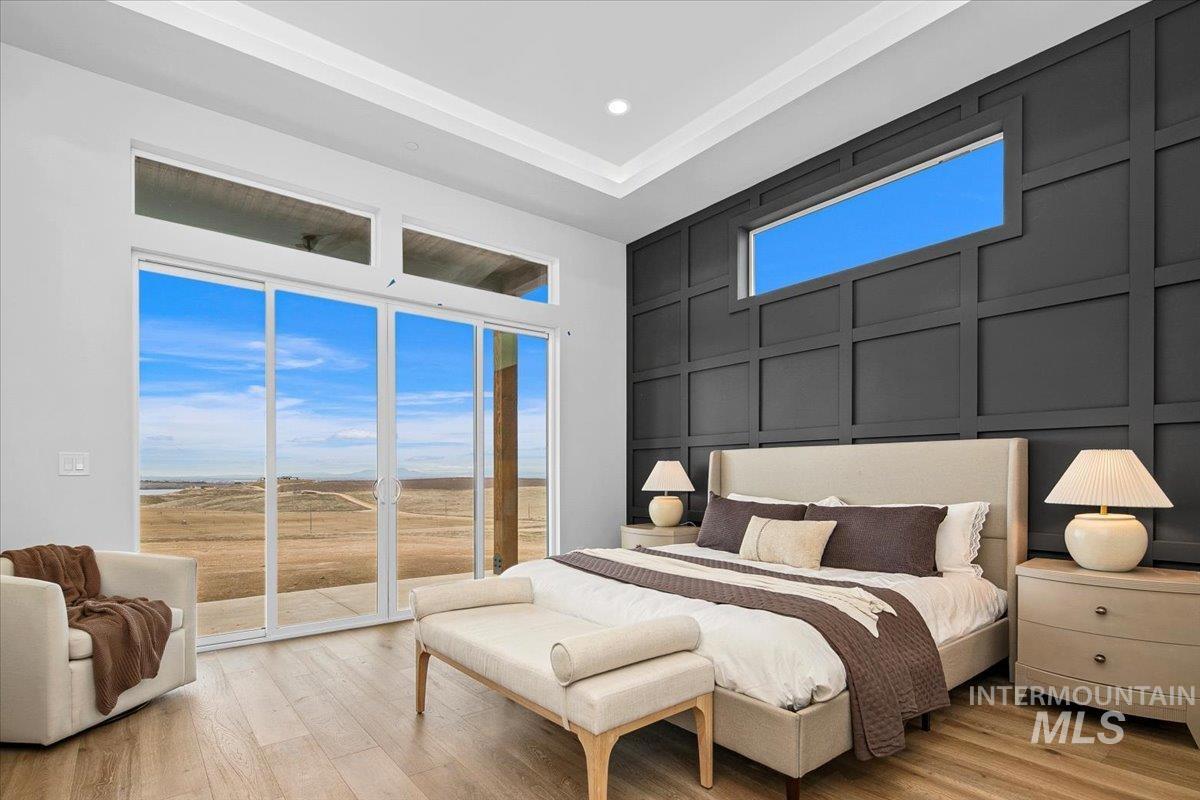Must see lake views! Discover luxury country living on nearly 2 acres just south of Lake Lowell. This thoughtfully designed single-story home features 4 spacious bedrooms, 3.5 bathrooms, an office and large bonus room not included in bedroom count, and an impressive 52’ RV bay in addition to the 3-car garage perfect for all your toys and storage needs. Enjoy elevated living with built-in Thermador appliances including built-in fridge, two dishwashers, hidden prep kitchen, and designer finishes throughout such as hard surface (quartzite) countertops, engineered hardwood floors and motion activated toe-kick and soffit lighting. 60" Indoor Heat & Glo Primo Fireplace, covered patio with cedar wood planks. Expansive windows frame scenic views of Lake Lowell, offering the peace of rural living just minutes from Nampa’s conveniences.