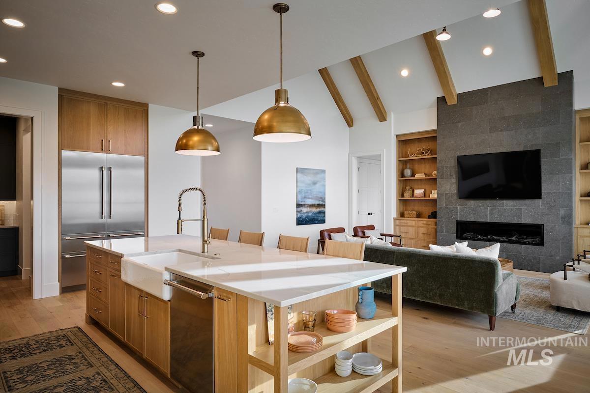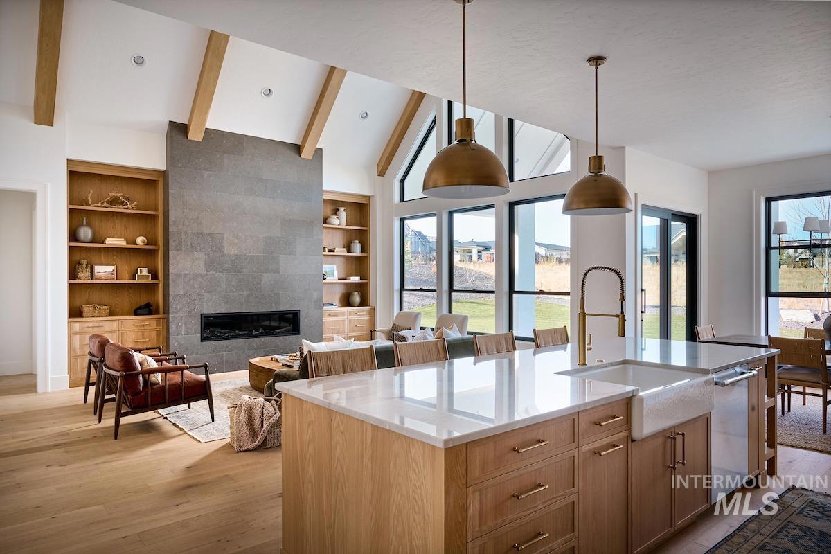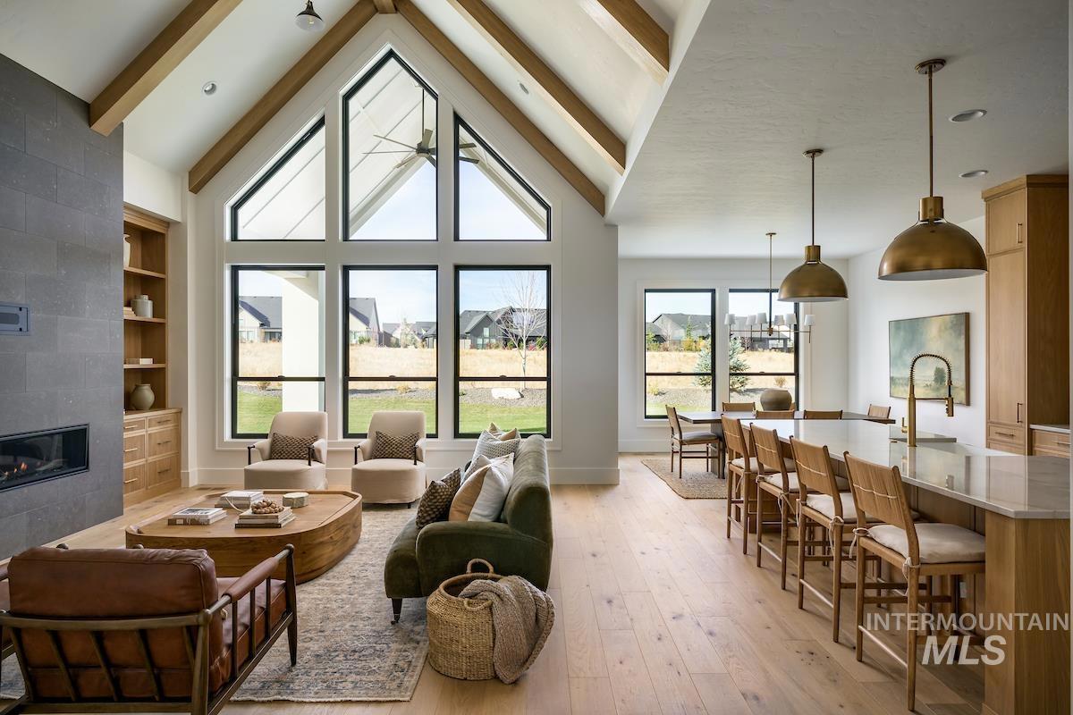 OPEN HOUSE FRIDAY AND SATURDAYS FROM 12-4PM. Call us today to learn about the Seller Incentive. Embark on a journey of luxury with the Southgate floor plan in the sought after Terra View Subdivision in Eagle Idaho. This single-level home features a media room and dedicated office. Experience culinary delight in the gourmet kitchen, complete with a butler pantry and top-of-the-line Thermador appliances. No back neighbors allows for privacy to enjoy your days or nights on the back patio, either enjoying the Sunrise or Sunset and looking out over the large open grass area. Or take advantage of the built in firepit on those chilly nights. The garage features a workshop, and plenty of space for toys. Terra View Features resort style amenities that include Community clubhouse, pool and parks.