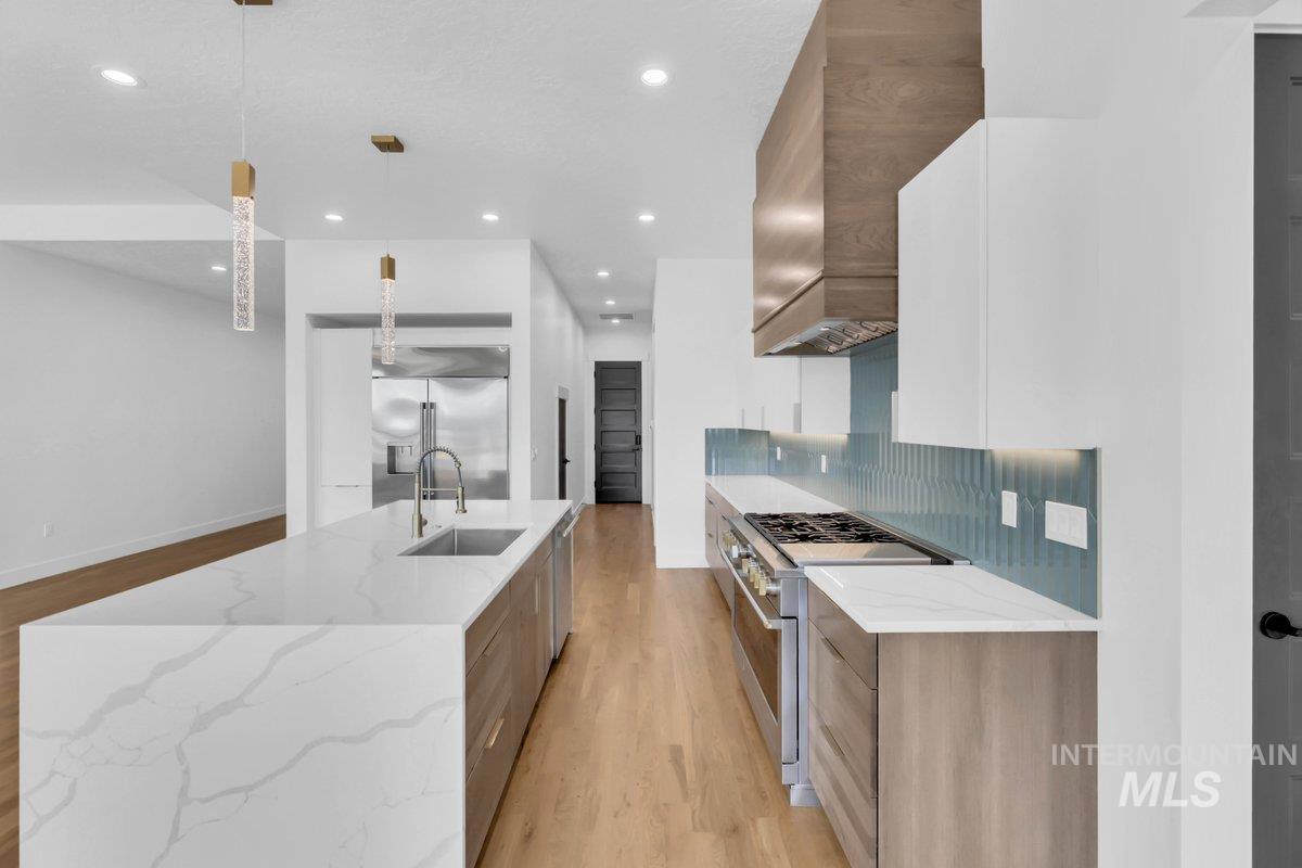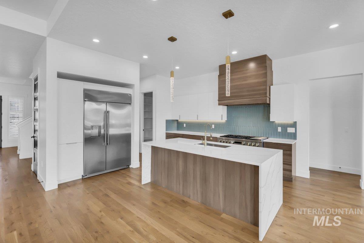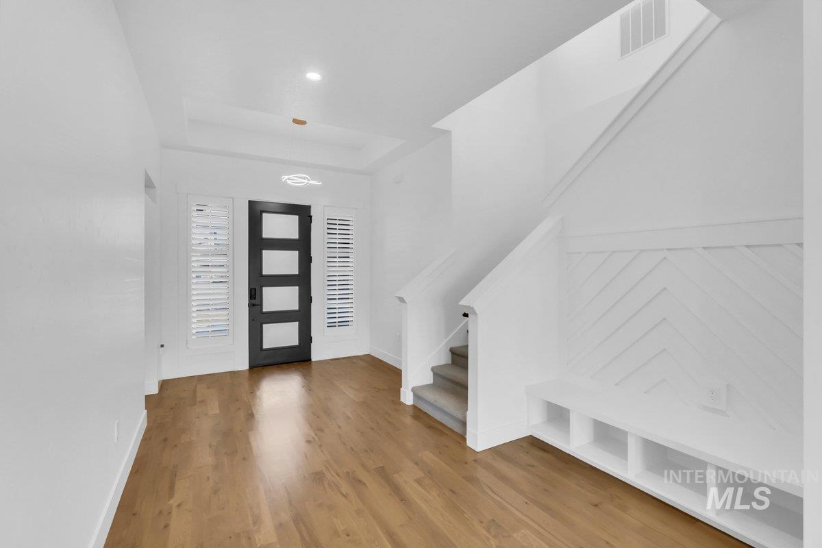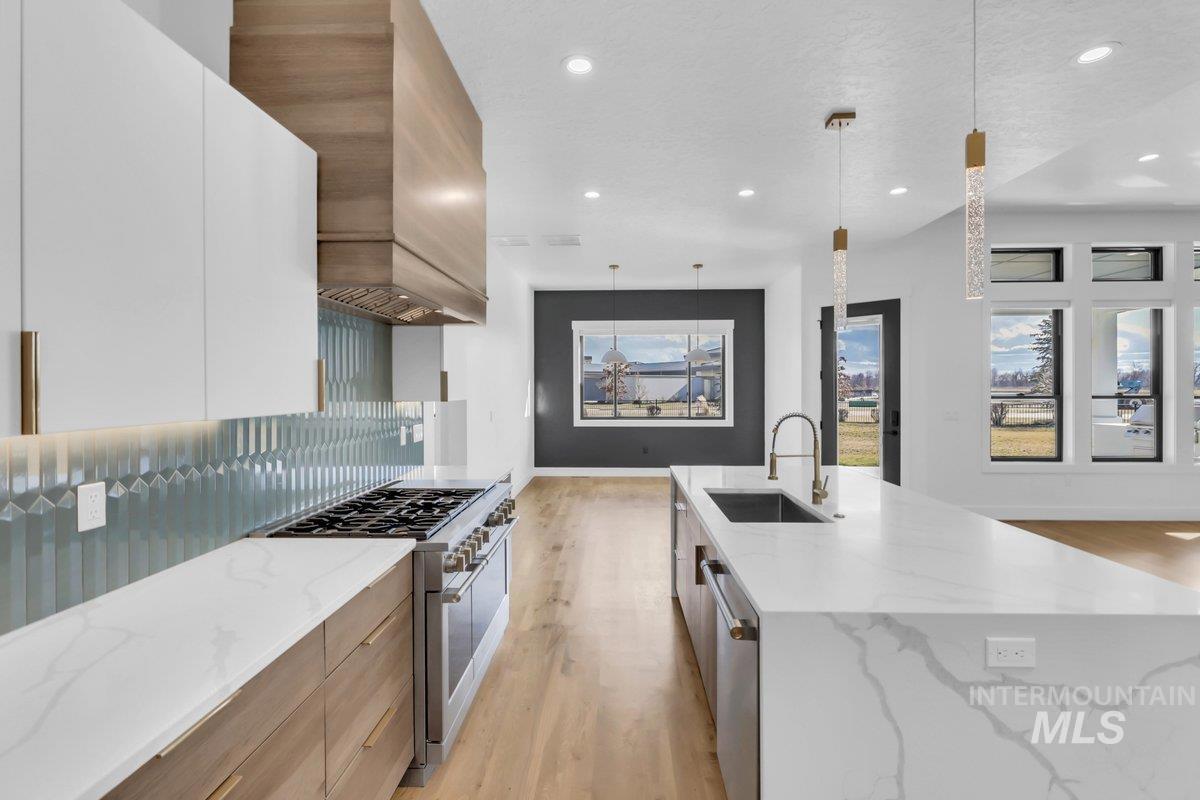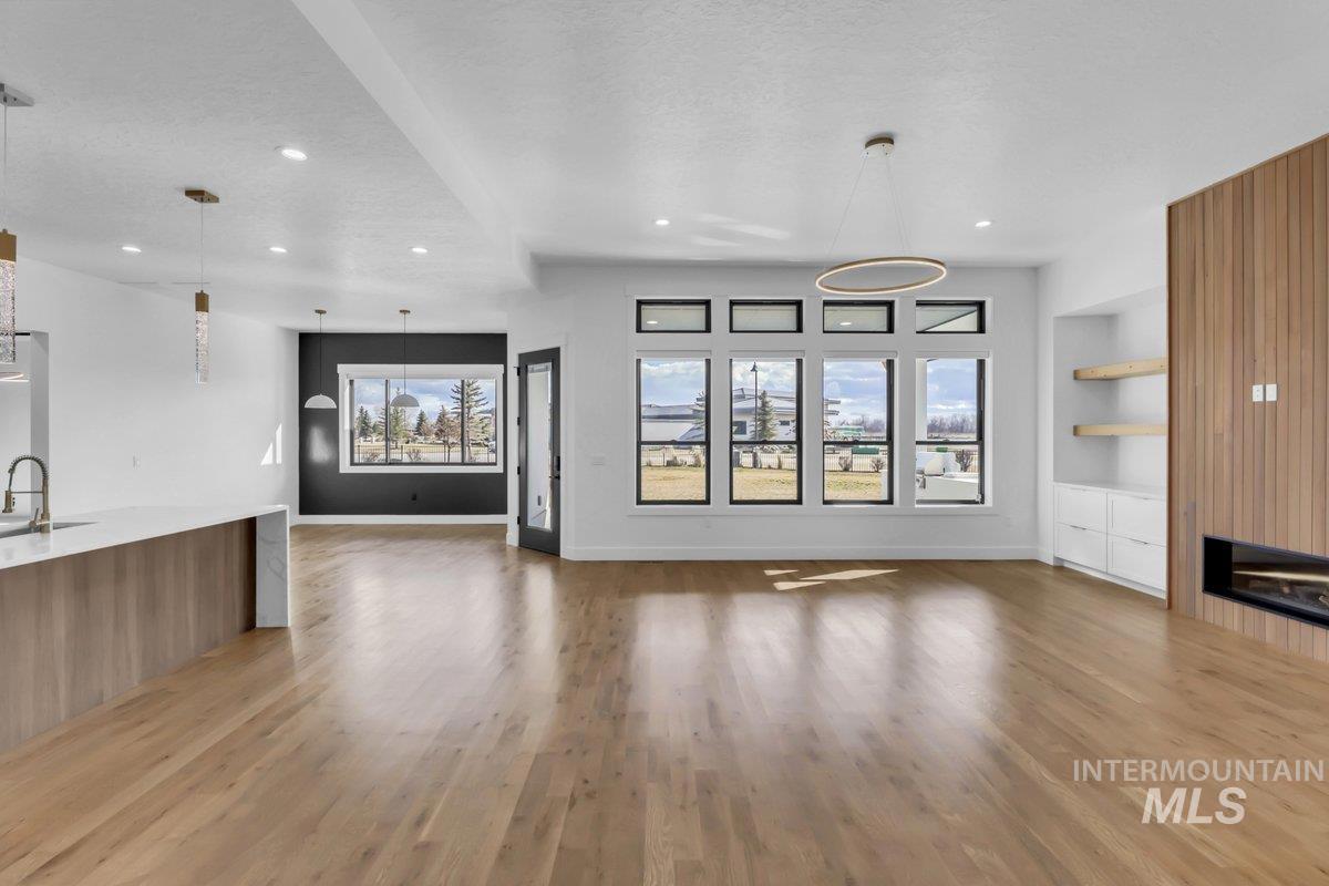 Exquisite custom masterpiece in the coveted Star River Ranch community! Situated in a cul-de-sac, this elevated home offers an impeccable blend of luxury & functionality. Natural light floods the interior through walls of windows, highlighting sprawling hardwood flooring & intricate craftsmanship throughout. Enjoy indoor-outdoor living w/ a large great room that flows out to the covered patio, built in grill & expansive backyard with views, ideal for entertaining! The gourmet chefs kitchen features a waterfall quartz island, custom cabs, tile backsplash & a generously sized walk-in pantry. The main-level owner’s suite boasts a massive en-suite complete w/ dual vanities, a freestanding soaking tub, floor-to-ceiling tile shower, & a walk-in closet. An additional bedroom, an office & full bath round out the main level. Upstairs Two additional guest beds & a large bonus room w/ a wet bar await, perfect for family movie night or entertaining. The 4+ car temp-cont garage provides ample storage w/ built-ins, while the .47-acre lot is a blank slate offering plenty of space to make it your own. Star River Ranch’s serene location along the Boise River & Greenbelt makes it a peaceful yet convenient retreat. With nearby highly rated schools, shopping, entertainment & access to all, come experience the perfect combination of elegance, space & community at this true shining Star!