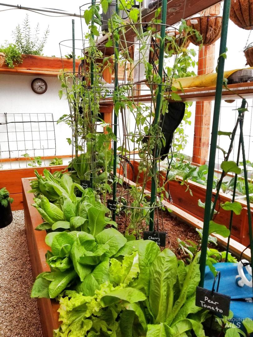 Open House! Sunday 11-1. A rare turnkey homestead estate in peaceful south Nampa, just 2.5 miles from Lake Lowell and within 5 miles of multiple wineries. This exceptional property blends luxury, functionality, and self-sufficient living. The estate includes a 40x50 (2,000 sq ft) shop with a half bath, RV bay and hookups, 10K lb lift, compressor, and 220-amp service. (Plus 3 car garage= enclosed parking for 8!) Homestead includes a barn, hay storage, electrified fenced pasture plumbed for community irrigation, greenhouse with GAHT system for year-round produce, high tunnels with raised beds and full drip irrigation, solar vole/gopher deterrent system, animal shelters, and more. Electric and panel are in place for an additional ADU. The custom home showcases rich stone and woodwork, walnut floors, cathedral and coffered ceilings, and custom molding, cabinetry, blinds and walk-in closets and connected bathrooms in all the bedrooms. 2024 updates include HVAC, carpet, interior paint, and refinished floors. The chef’s kitchen offers chiseled granite, Subzero fridge, Wolf 6-burner/griddle cooktop, double ovens, pot filler, island sink, and walk-in pantry. The main-level master retreat features a jetted tub, dual walk-in shower, granite vanity, and large closet. Paid-off engineered solar panels, security system, and central vac-ready complete this nearly self-sufficient stunning estate.