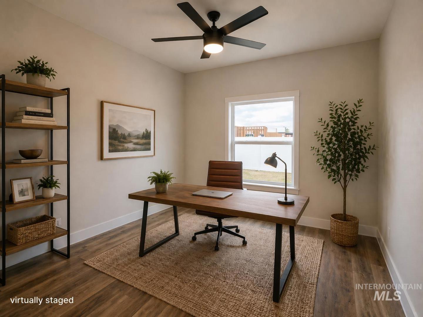 Welcome to this beautiful new construction featuring a fantastic 4-bedroom, 2-bath floor plan designed for comfort and functionality. Enjoy a spacious great room with 11 ft ceiling and a stunning kitchen with a large center island, quartz countertops, white cabinetry, dual work areas, an oversized pantry, and a generous dining space—perfect for everyday living and entertaining. The primary suite offers private access to the covered patio and includes an ensuite bath with an oversized shower and a large walk-in closet. The 4th bedroom is ideal for a home office, den, or flex space. You’ll also appreciate the builder-added cubby storage area conveniently located at the garage entry. In addition you’ll find a fully insulated 3-car garage. The covered patio overlooks a fully fenced backyard, and is including landscaping front and back, ready for pets, play, or relaxing evenings outdoors. All images are of a previously built home with the same floor plan. Finishes, materials, colors, and fixtures may differ from the home currently available. Some photos have virtual staging and outside landscaping.
