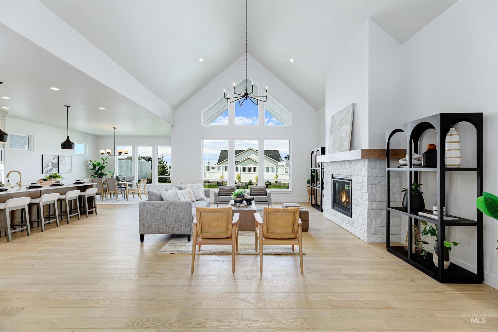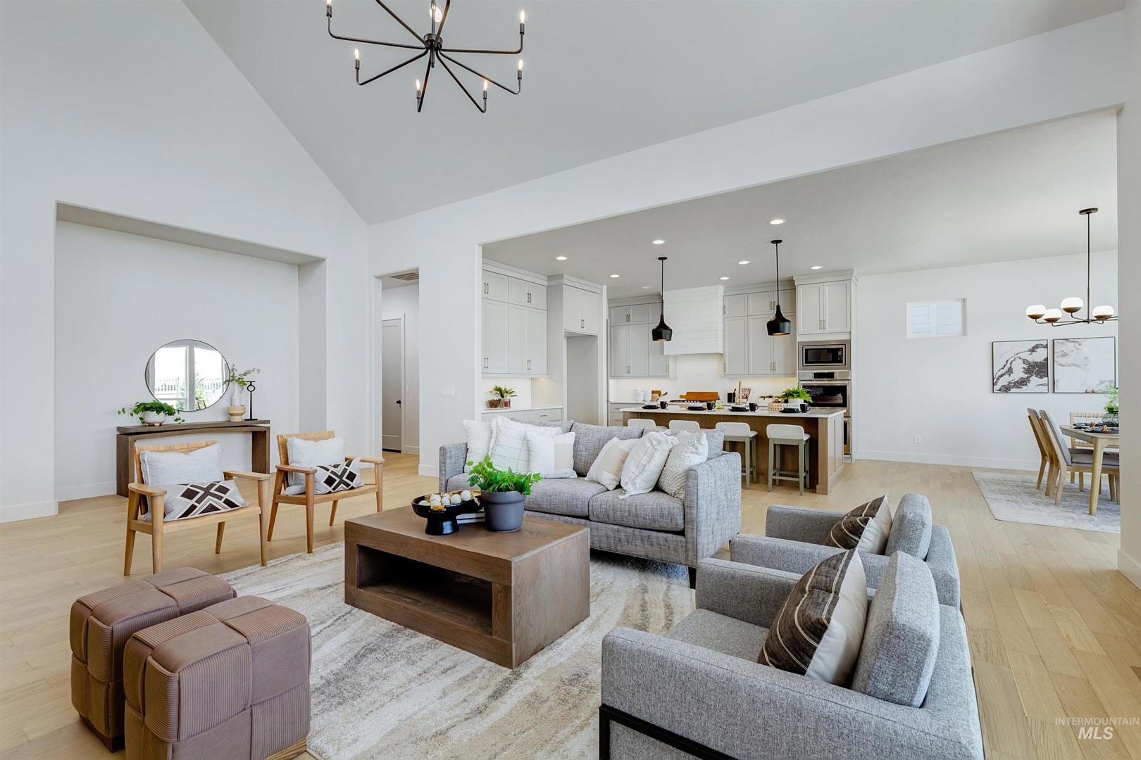 Don’t miss this stunning Sagewood home in the Eagle Foothills. Step inside the long entryway, which leads to a spacious great room where vaulted ceilings create a bright and inviting atmosphere. The open layout flows seamlessly into the dining area and a chef’s kitchen, complete with ample counter space, handsome cabinetry, and a walk-in pantry. A sliding glass door nearby opens to the covered patio, perfect for enjoying the beautiful Idaho weather. Down the hall, the expansive primary suite features oversized windows that bring in natural light, along with a luxurious bath that includes a free-standing tub and a generous walk-in closet. For added versatility, the office provides a quiet workspace and can easily convert into a fourth bedroom to suit your needs. Now open, the Dry Creek Ranch Community.