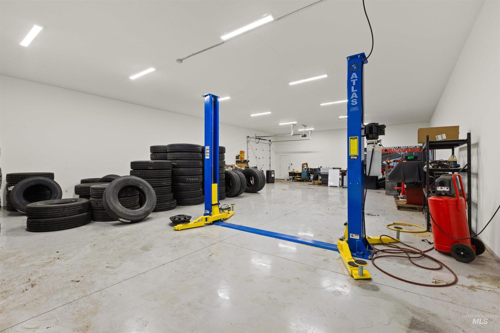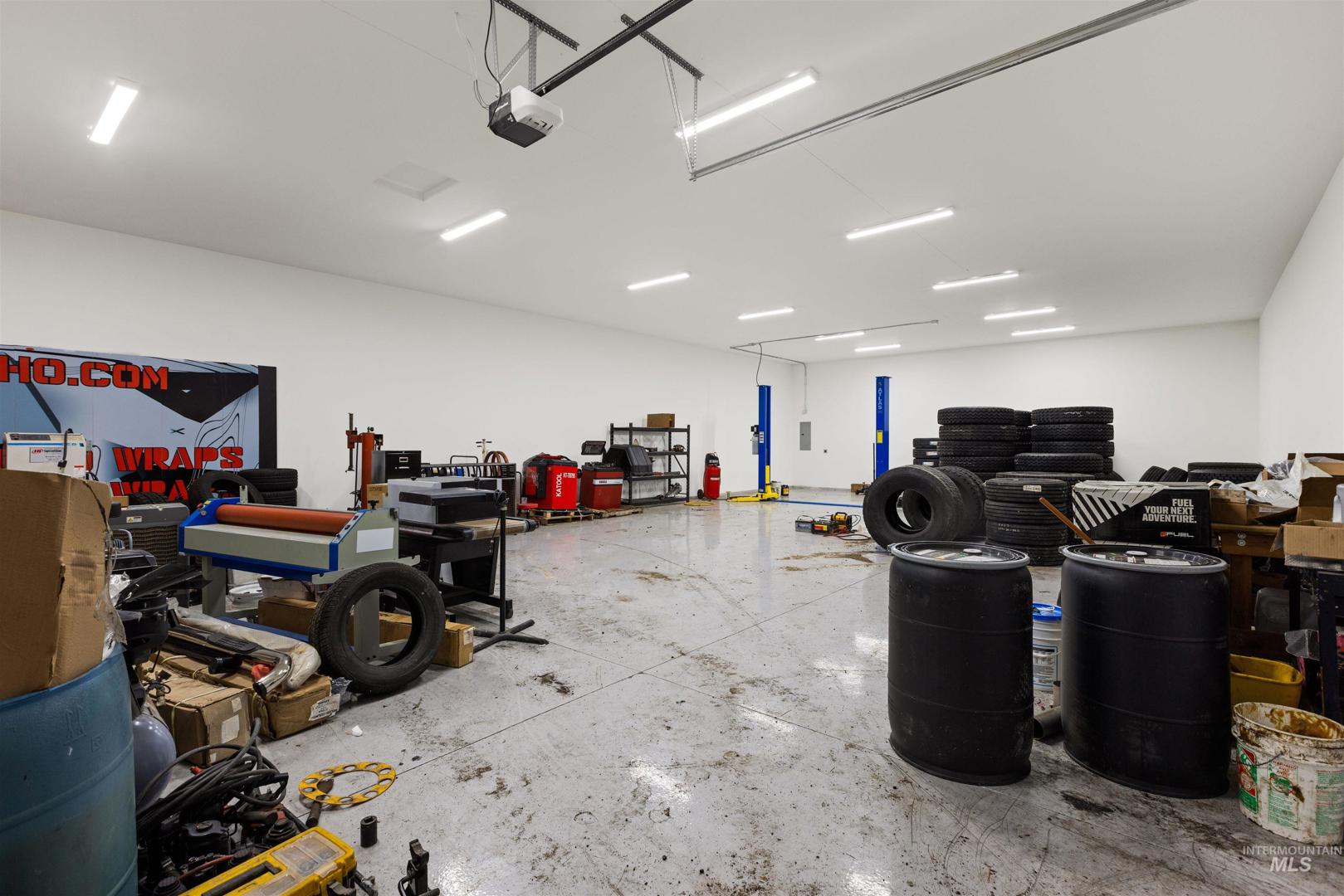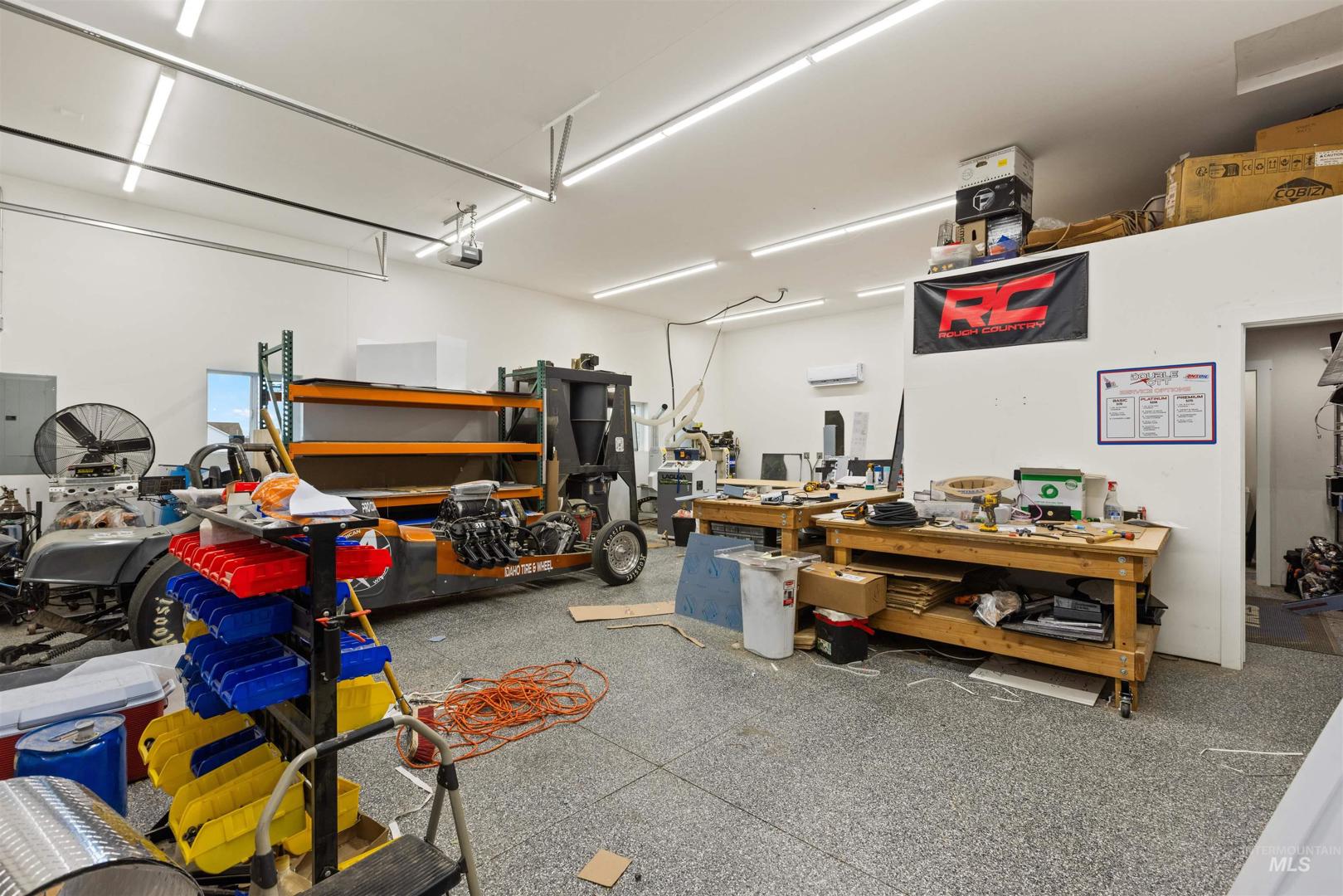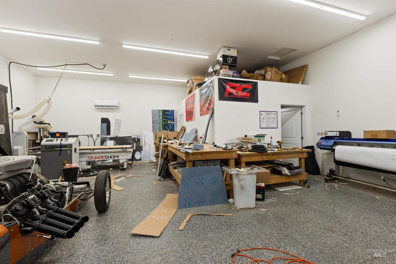 Rare opportunity to own a newly renovated home with income-producing shops, business flexibility, and space to live the rural lifestyle — all in one property. The open-concept design features an oversized primary suite with ensuite bath, dual closets, and a beautifully updated kitchen with custom cabinetry, quartz and wood countertops. A separate lower-level living area offers additional space for entertaining or multi-generational living. Set on county land with no HOA or CCRs, this property provides room to grow, farm, or keep animals, plus water rights along the western boundary. Three fully finished shops include a 24x60 with lift, 24x60 two-bay with bathroom, heat and AC, and a 30x40 heated/cooled shop — all with epoxied floors. Temporary commercial operating permit in place with approximately $7,500/month rental income potential. Circular driveway allows for semi and delivery access, with privacy fencing separating residential and business areas if desired.