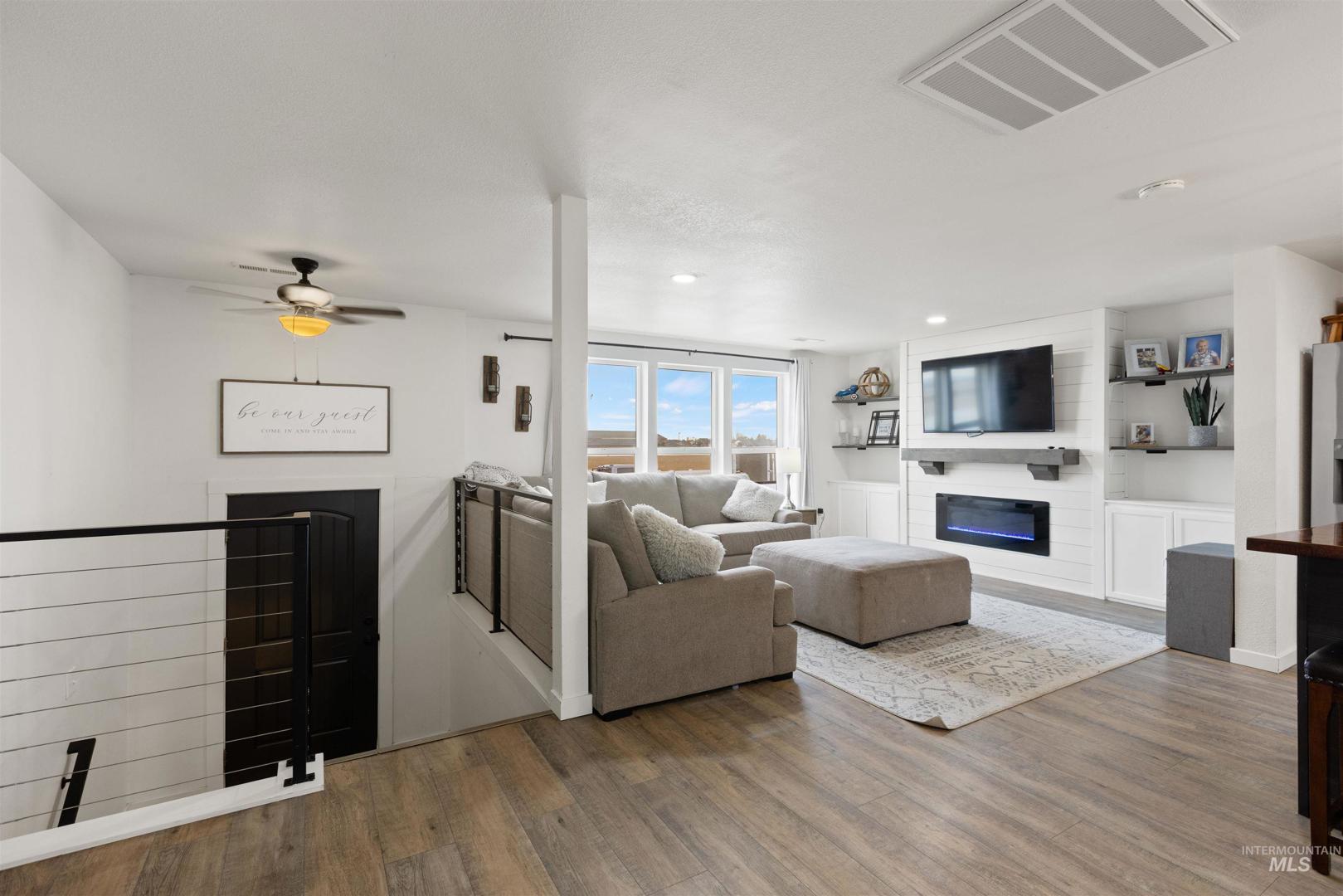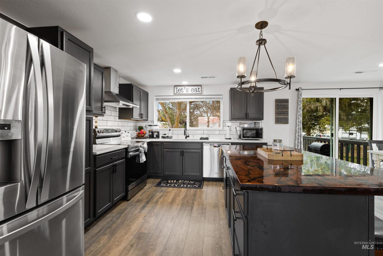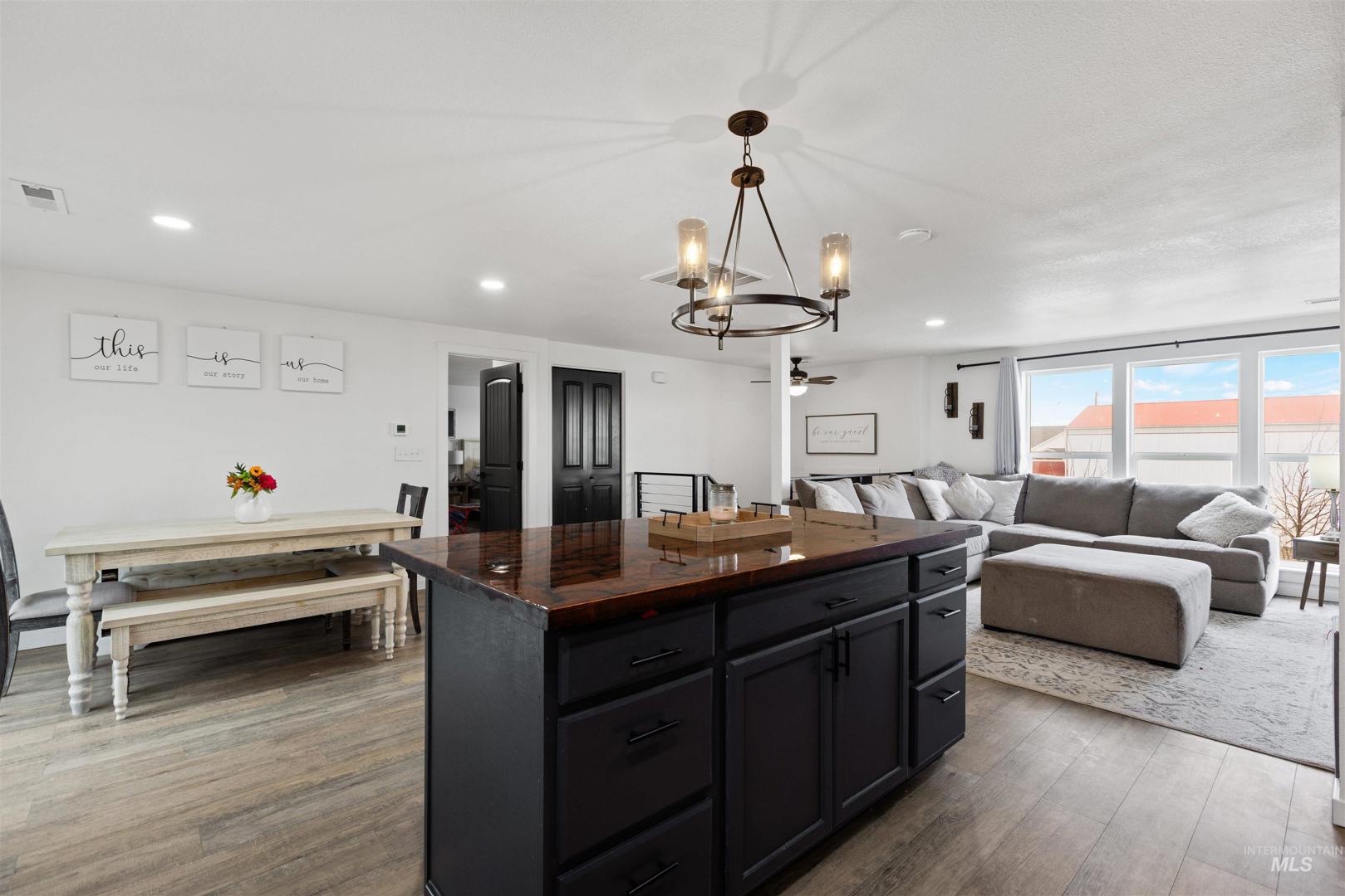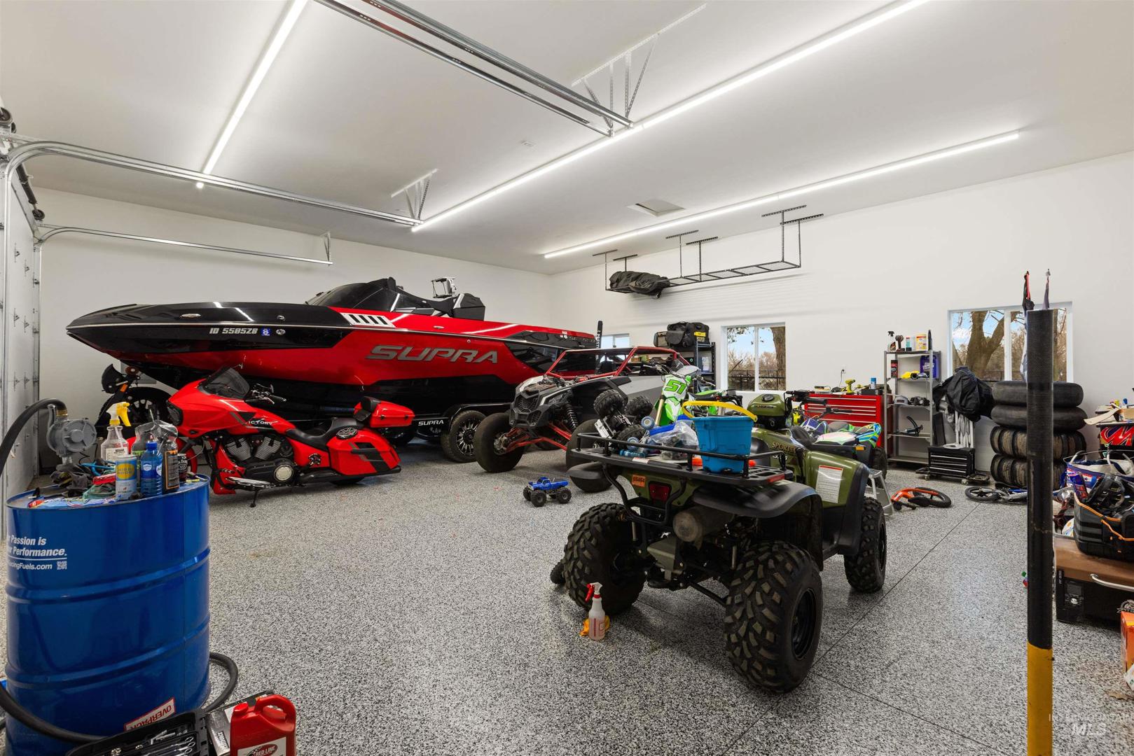 Rare opportunity to own a newly renovated home with income-producing shops, business flexibility, and space to live the rural lifestyle — all in one property. The open-concept design features an oversized primary suite with ensuite bath, dual closets, and a beautifully updated kitchen with custom cabinetry, quartz and wood countertops. A separate lower-level living area offers additional space for entertaining or multi-generational living. Set on county land with no HOA or CCRs, this property provides room to grow, farm, or keep animals, plus water rights along the western boundary. Three fully finished shops include a 24x60 with lift, 24x60 two-bay with bathroom, heat and AC, and a 30x40 heated/cooled shop — all with epoxied floors. Temporary commercial operating permit in place with approximately $7,500/month rental income potential. Circular driveway allows for semi and delivery access, with privacy fencing separating residential and business areas if desired.