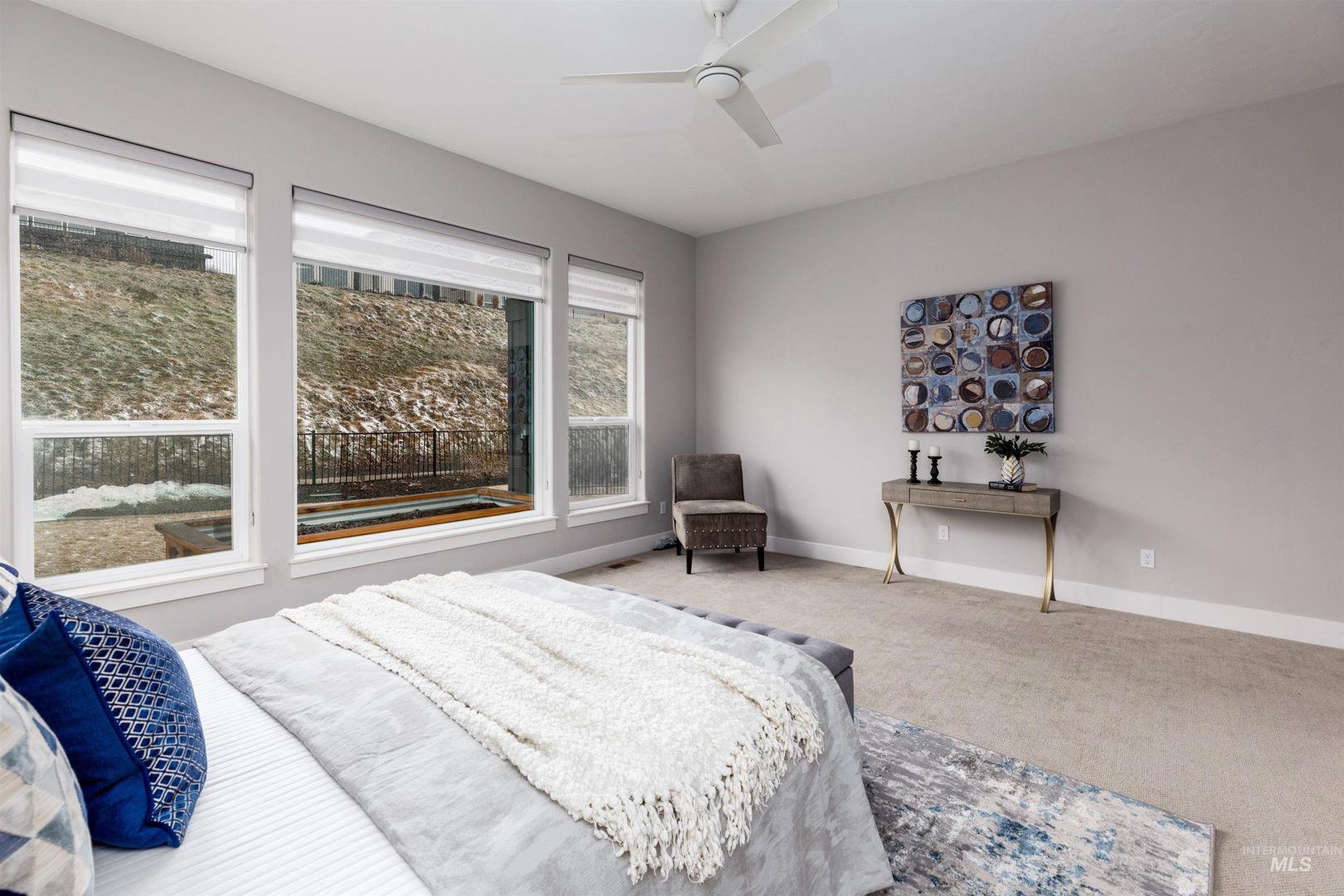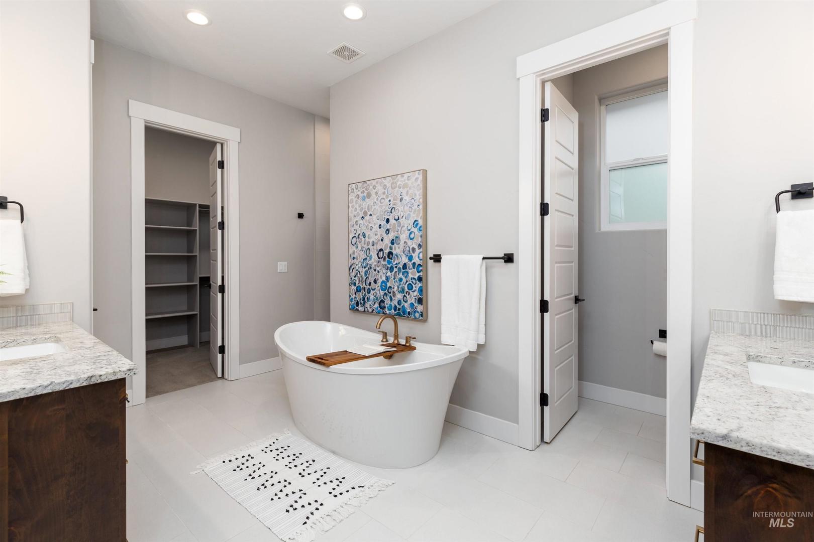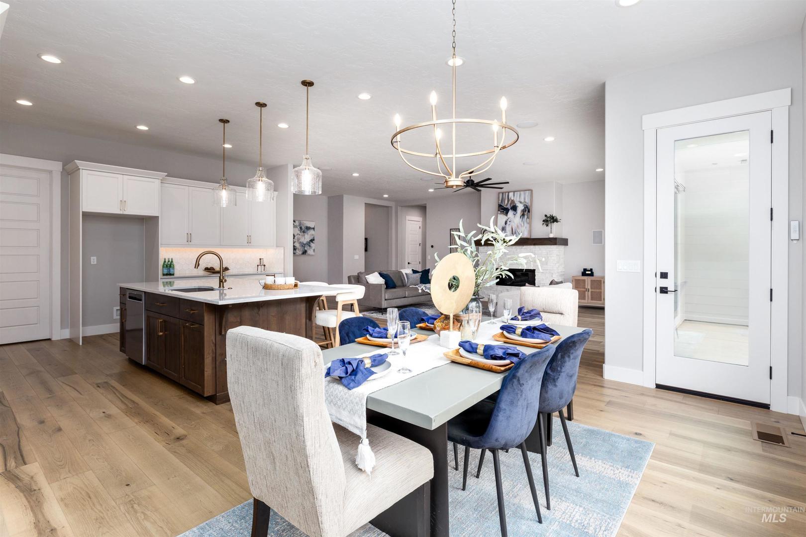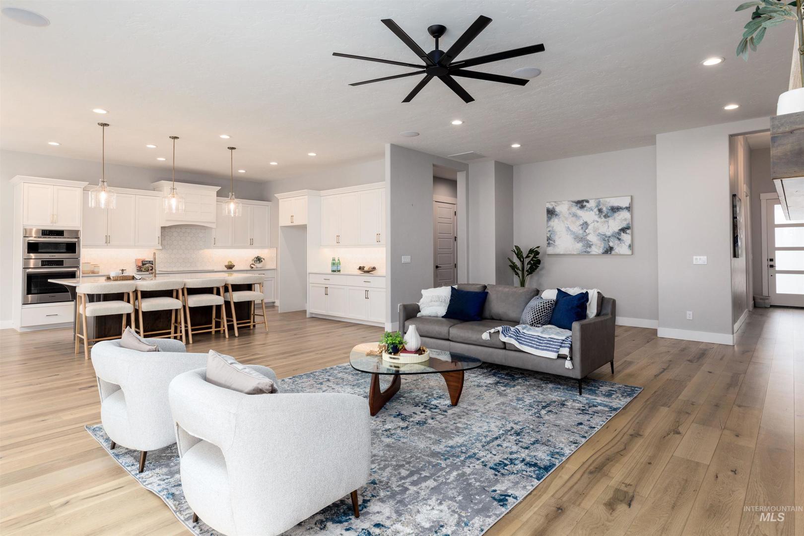 Thoughtfully designed, like new single level home in Sky Mesa. Inside find tons of natural light, elegant finishes, plenty of storage & perfect layout. Kitchen features quartz countertops, induction stovetop (plumbed for gas too!) double oven, granite composite sink, beautiful white cabinetry inc pull-out trash & soft close feature, HUGE island/breakfast bar & engineered hardwood. Great Rm w/cozy fireplace. Primary suite boasts LG walk-in closet, granite countertops, separate dual vanities, framed mirrors, step-in tile shower & freestanding Maxx Ariosa soaker tub. Bonus/Flex Rm could be a bedroom, second living space, etc. The extended covered patio offers a 12` wide patio door, motorized shade, 7.1 surround sound, and a HDMI outlet for TV. Backs to a hillside so no back neighbors! Extensive concrete curbing, garden box & shed. The finished 3-car tandem garage is upgraded w/polyaspartic concrete floors, sink & storage racks. Sky Mesa offers top-tier amenities inc two infinity pools, basketball & walking paths!