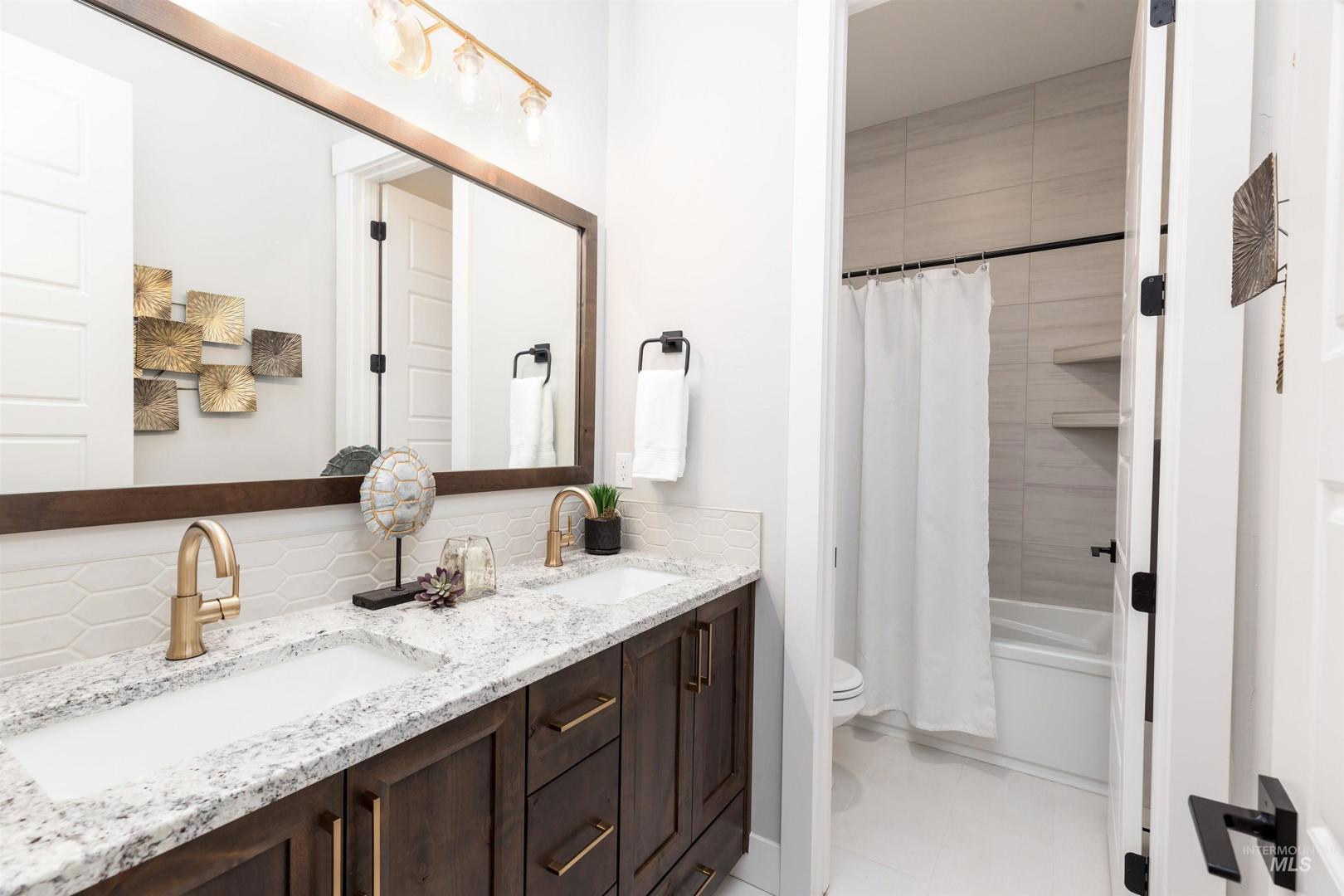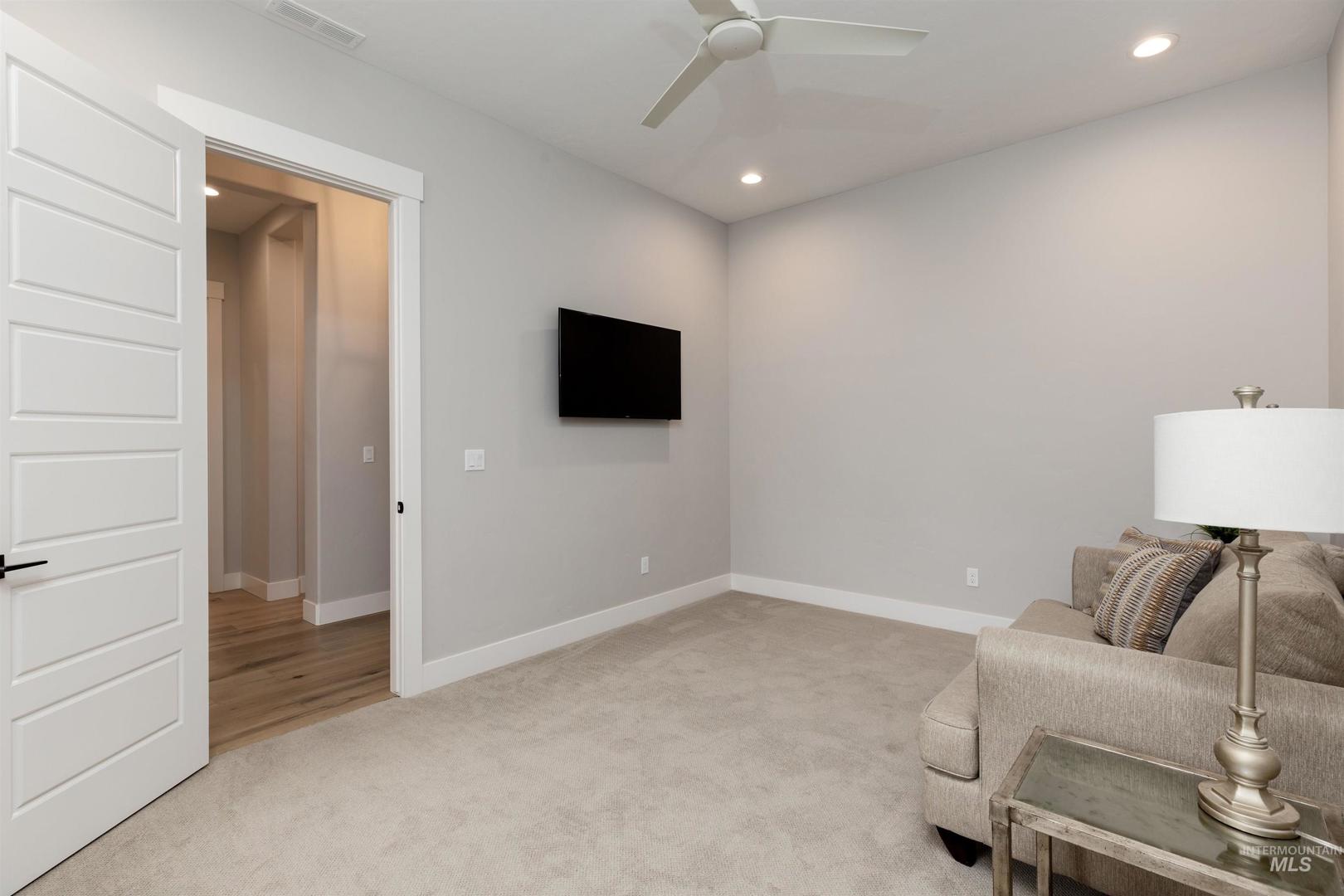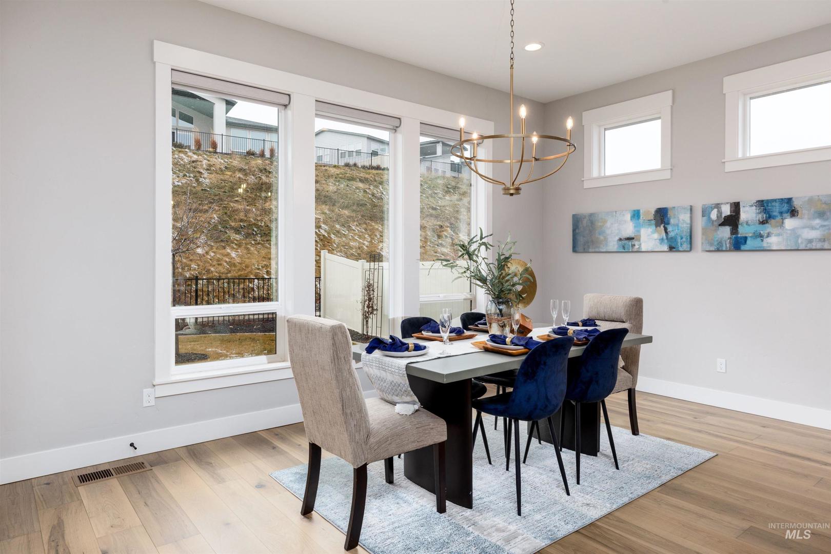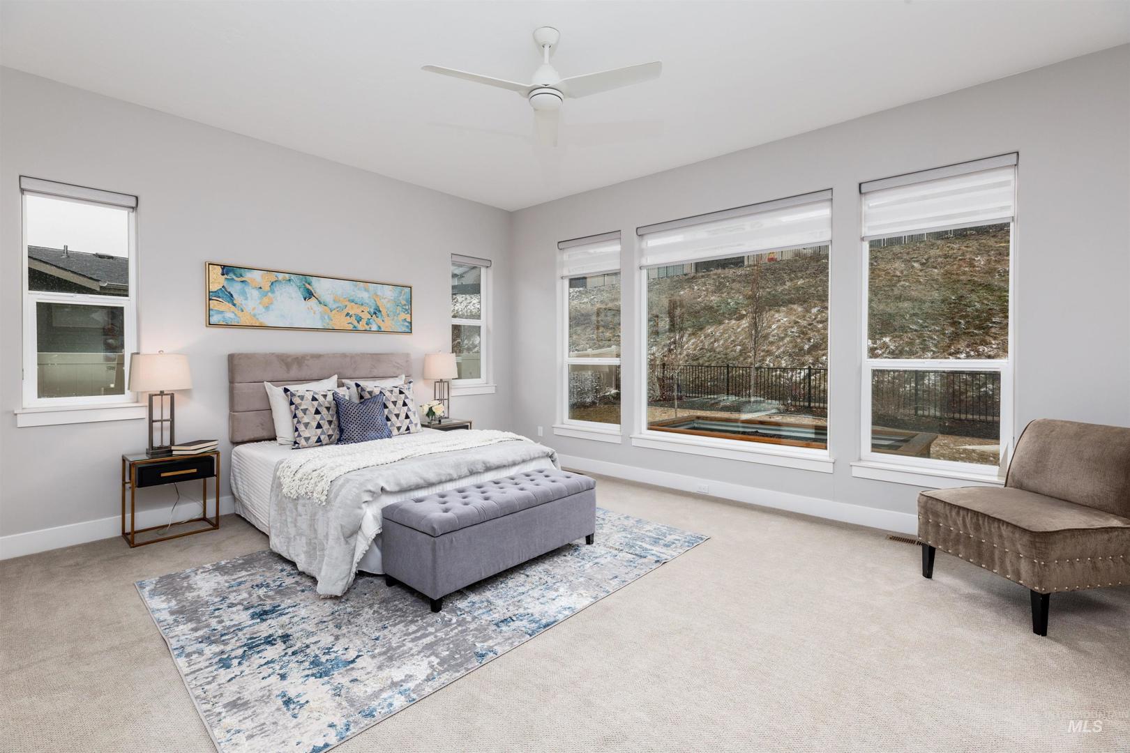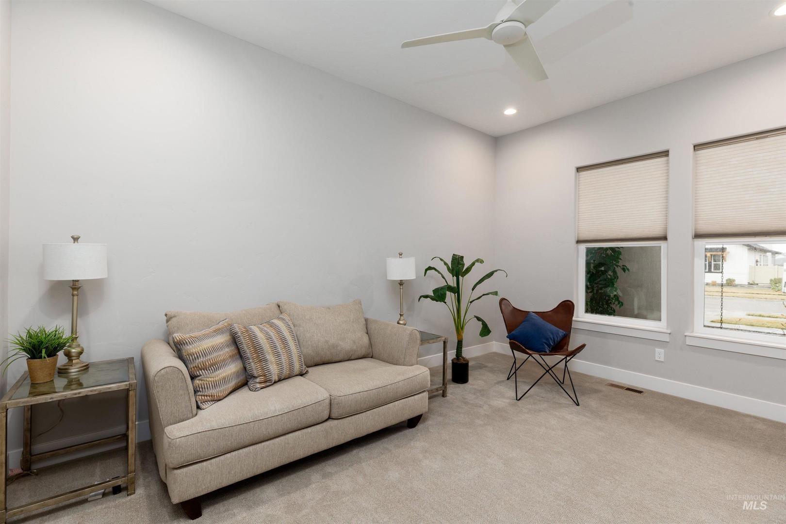Thoughtfully designed, like new single level home in Sky Mesa. Inside find tons of natural light, elegant finishes, plenty of storage & perfect layout. Kitchen features quartz countertops, induction stovetop (plumbed for gas too!) double oven, granite composite sink, beautiful white cabinetry inc pull-out trash & soft close feature, HUGE island/breakfast bar & engineered hardwood. Great Rm w/cozy fireplace. Primary suite boasts LG walk-in closet, granite countertops, separate dual vanities, framed mirrors, step-in tile shower & freestanding Maxx Ariosa soaker tub. Bonus/Flex Rm could be a bedroom, second living space, etc. The extended covered patio offers a 12` wide patio door, motorized shade, 7.1 surround sound, and a HDMI outlet for TV. Backs to a hillside so no back neighbors! Extensive concrete curbing, garden box & shed. The finished 3-car tandem garage is upgraded w/polyaspartic concrete floors, sink & storage racks. Sky Mesa offers top-tier amenities inc two infinity pools, basketball & walking paths!