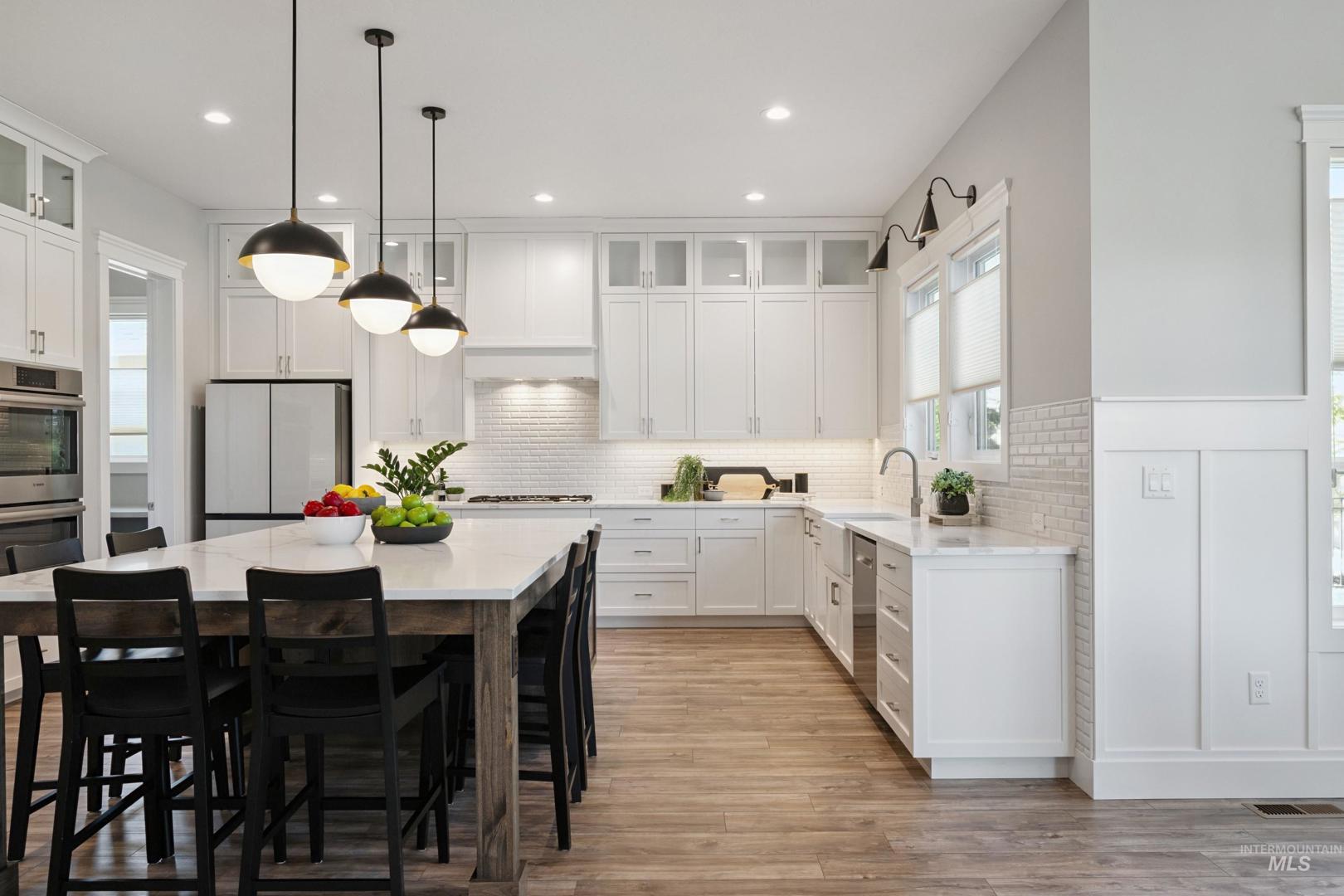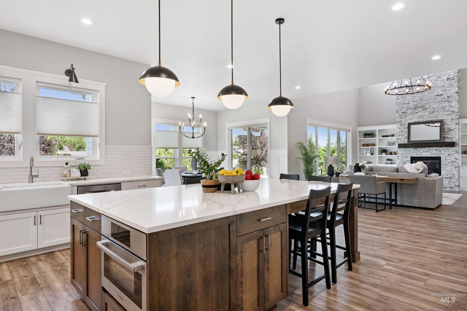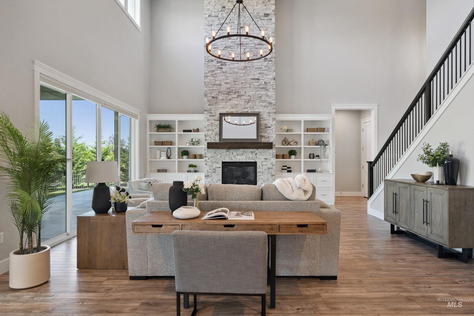 GORGEOUS TWO-STORY HOME IN EAGLE! IT OFFERS EVERYTHING - QUALITY, BEAUTY, COMFORT, AND STYLE! Built in 2022 by Oakmont Signature Homes, this impressive home features an open floor plan with beautiful floors, trim, and built-in cabinetry. The spacious Great Room has an amazing 20’ high beam ceiling and a floor-to-ceiling stone fireplace. The Gourmet Kitchen features a large center island/breakfast bar, slab quartz countertops, Bosch appliances, and a walk-in pantry. The spacious Primary Suite features a luxurious Primary Bathroom with a tile walk-in shower, soaking tub, and a walk-in closet. There is a large office near the entry. It features a huge Bonus Room that can be used for various purposes. Fabulous outdoor living space with an extended covered backyard patio, raised garden boxes, and a fully fenced backyard. It is an excellent location near schools, parks, and shopping!