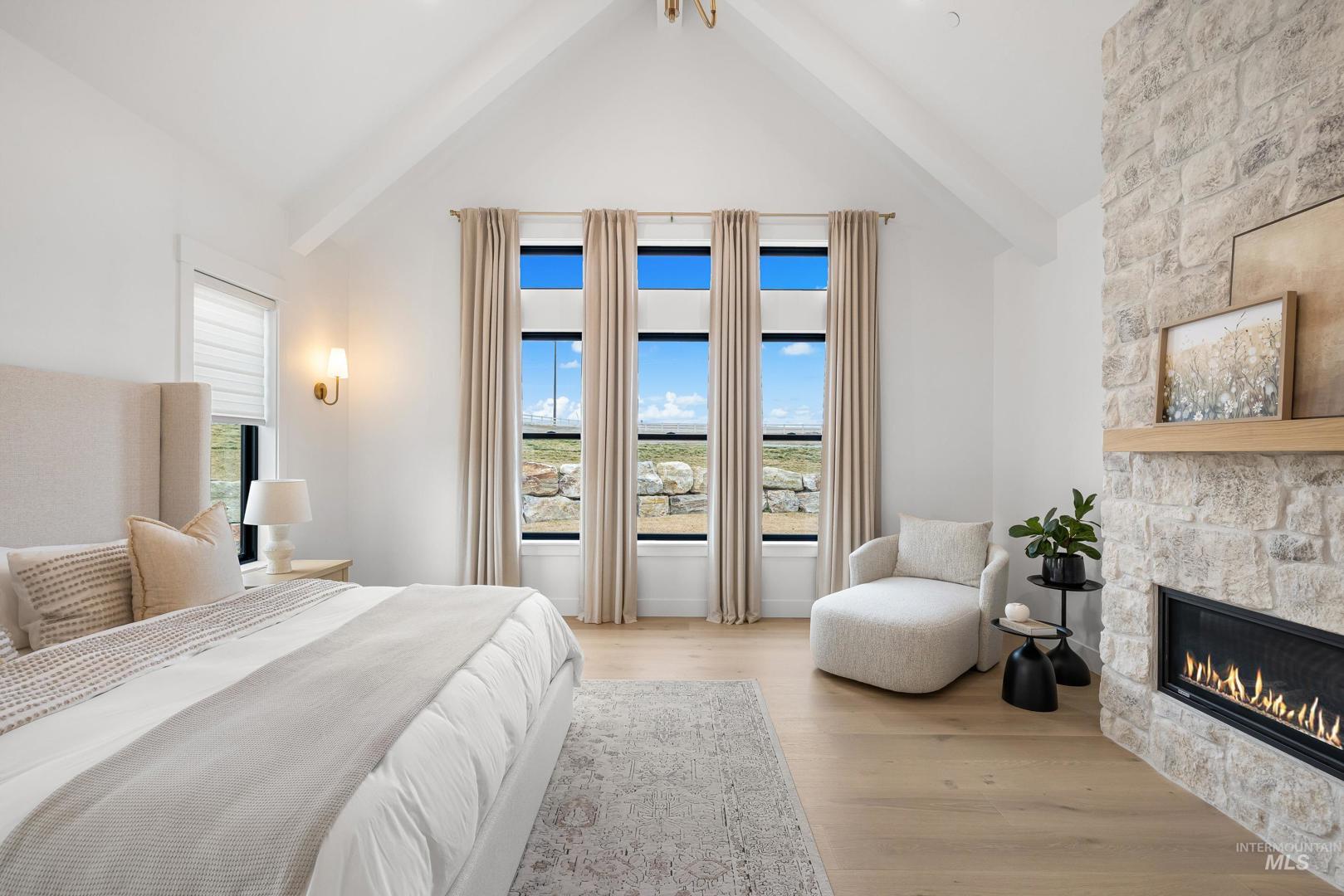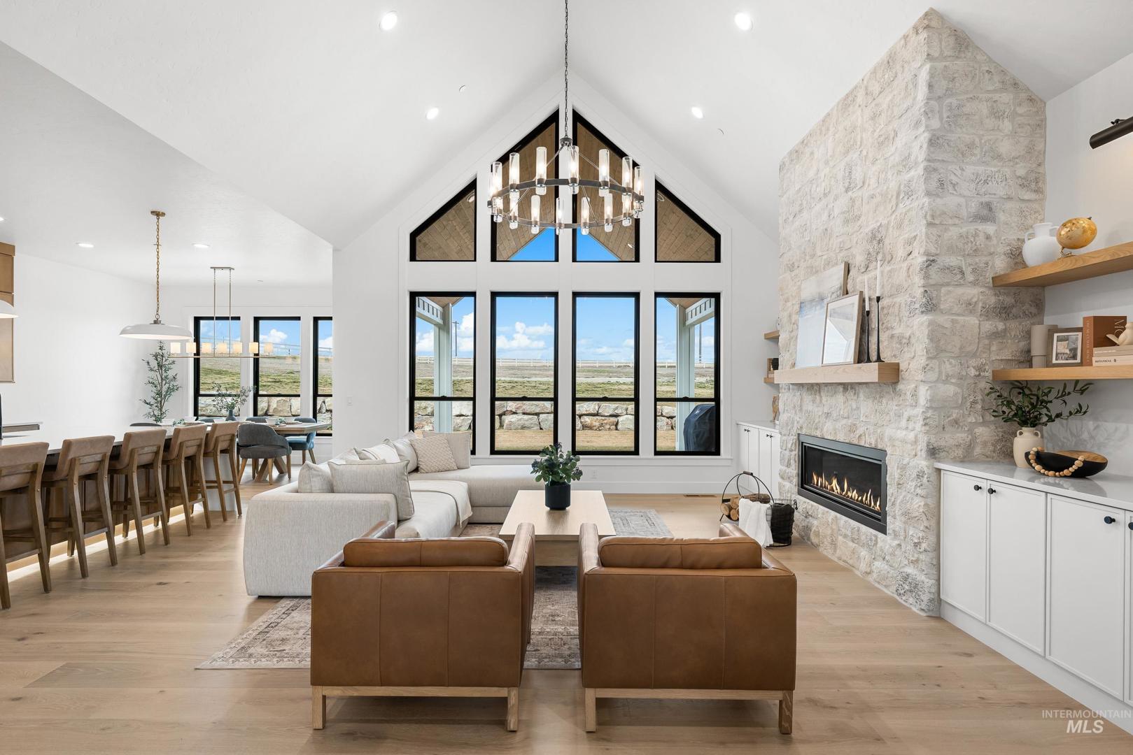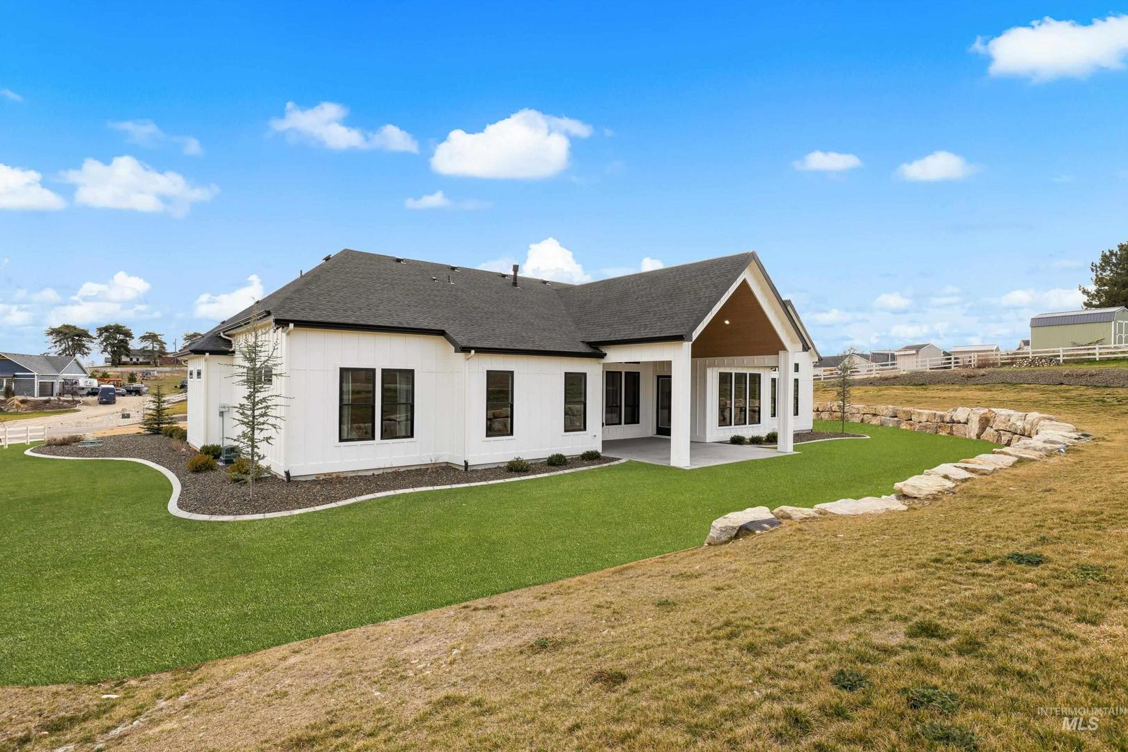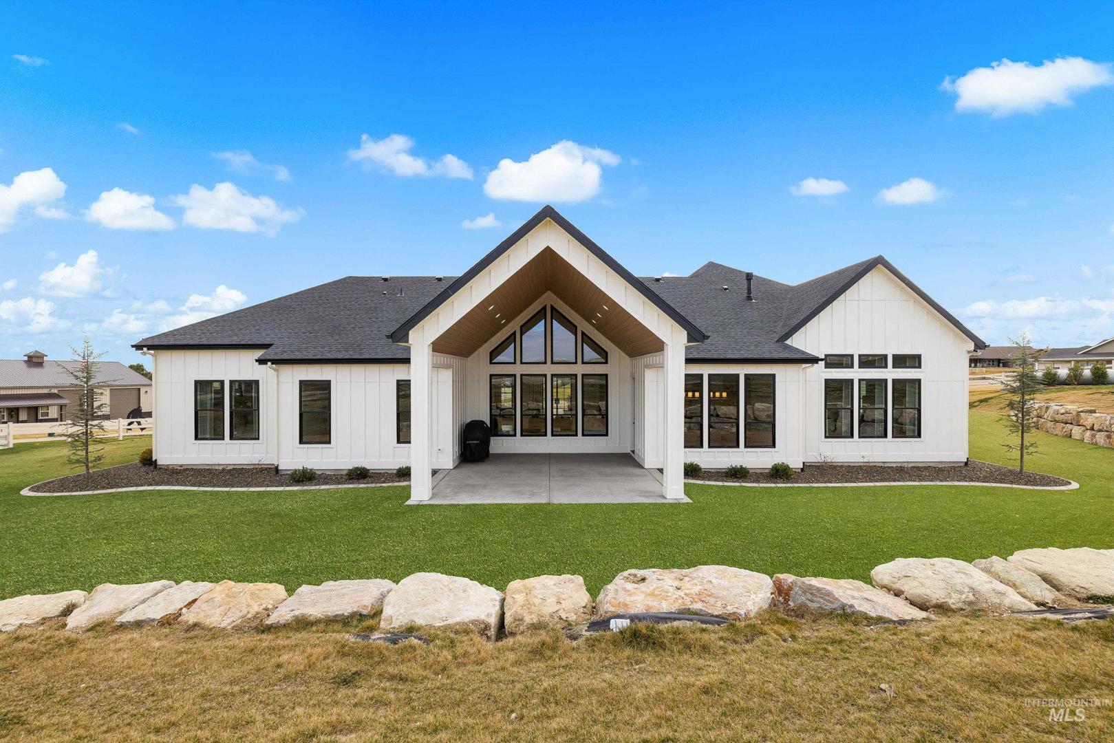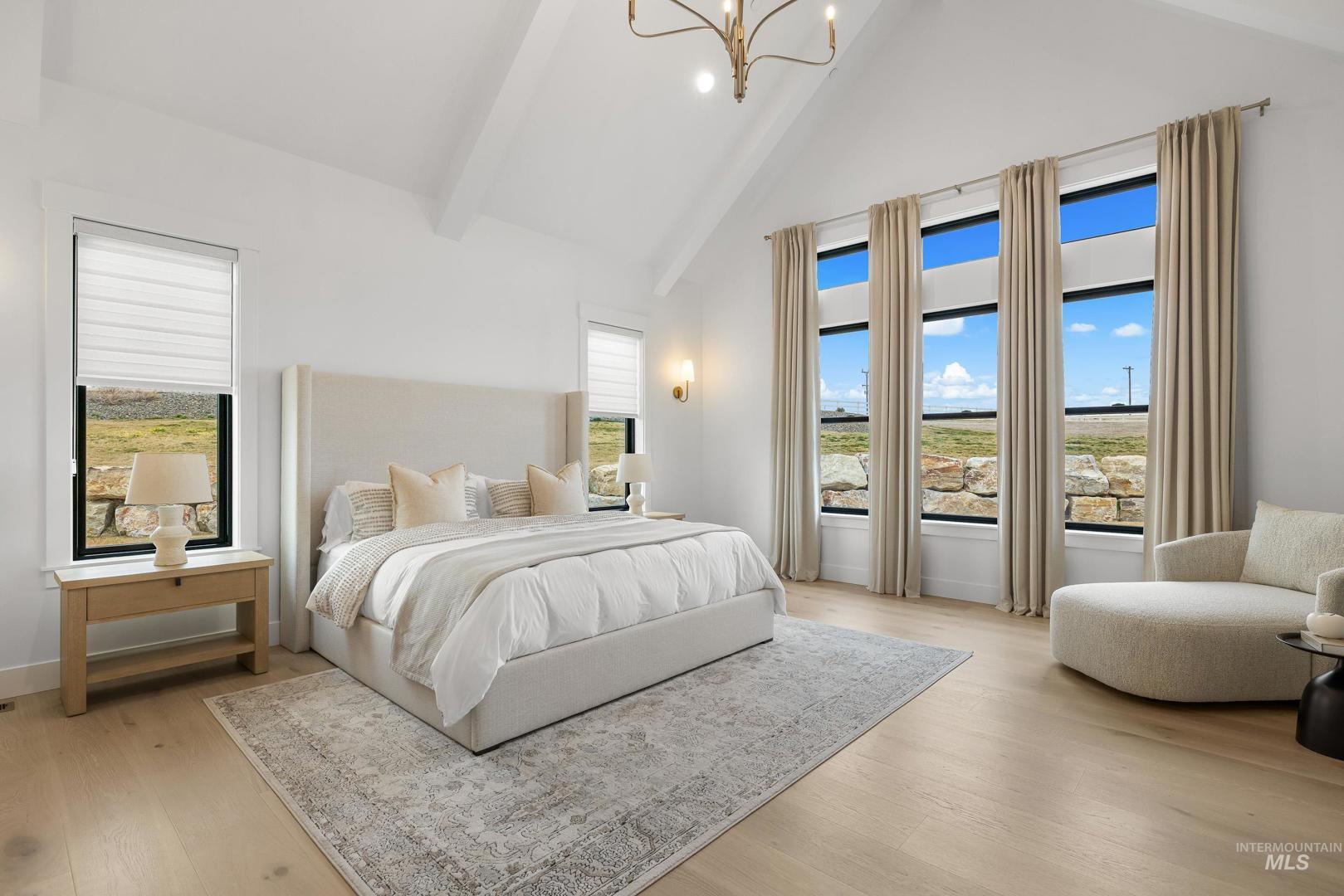 Custom built home situated on 2.08 acres overlooking Lake Lowell with views of the foothills. This single level home includes a 42` RV Bay plus an oversized 3-car garage w/ space for all your toys & recreational items. This home features a bright open floorplan showcasing extraordinary craftsmanship, & attention to detail. The great room boasts soaring ceilings w/ a serene backdrop. Premium finishes include a steel double entry door, engineered hardwood flooring throughout, quartz countertops, hardie siding, & more! Gourmet kitchen boasts an oversized waterfall island, custom double stacked cabinetry w/ under cabinet lighting, top-of-the-line Kitchenaid appliances, pot filler, & a spacious walk-through pantry. The private primary suite is a luxurious retreat w/ a beautifully crafted stone fireplace & a spa-inspired bath w/ a freestanding tub, curbless tile shower, & separate vanities. Relax & enjoy the tranquility & privacy that country living brings with the convenience of city living. Plenty of room for horses and outdoor enjoyment. This is Idaho living at its finest.