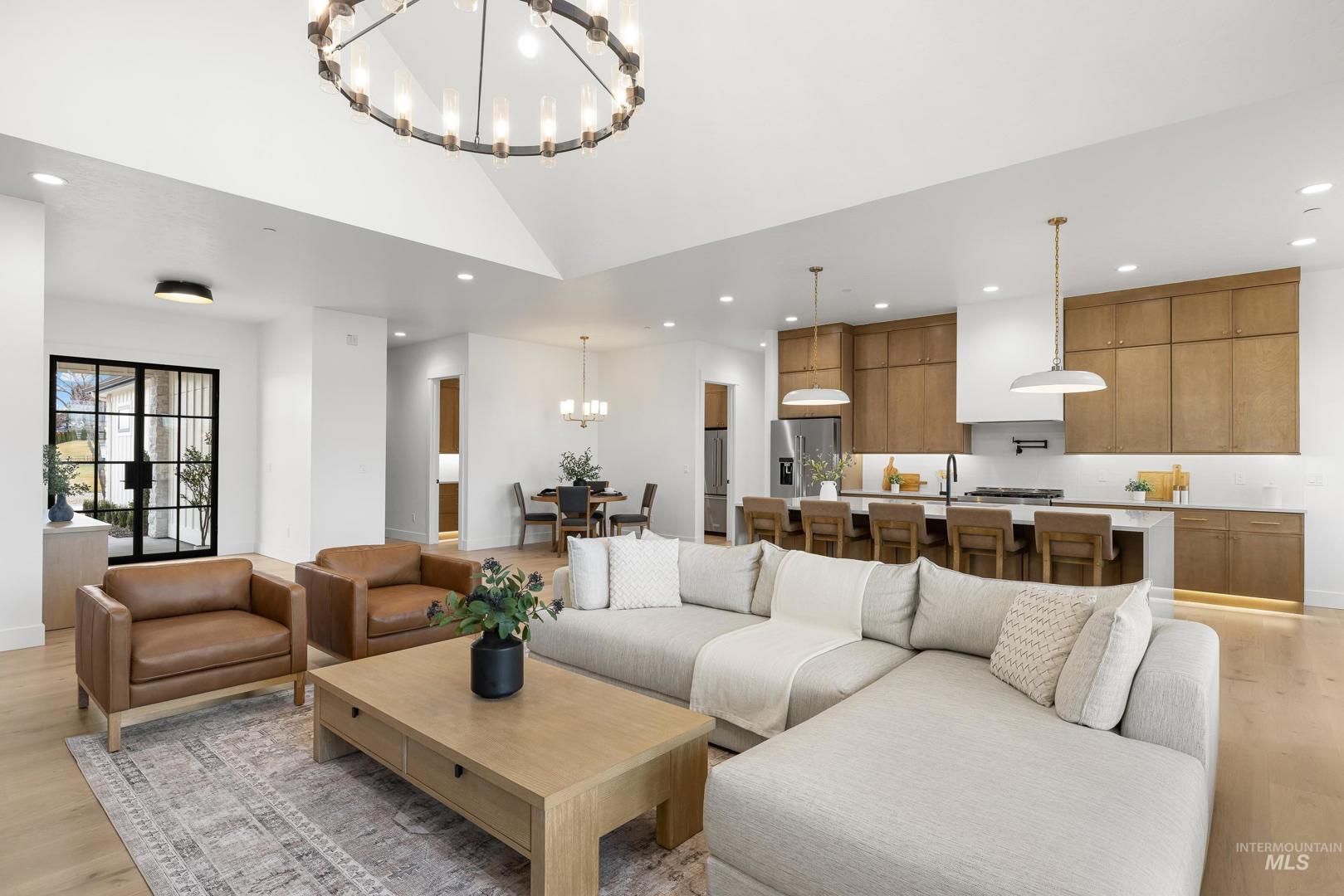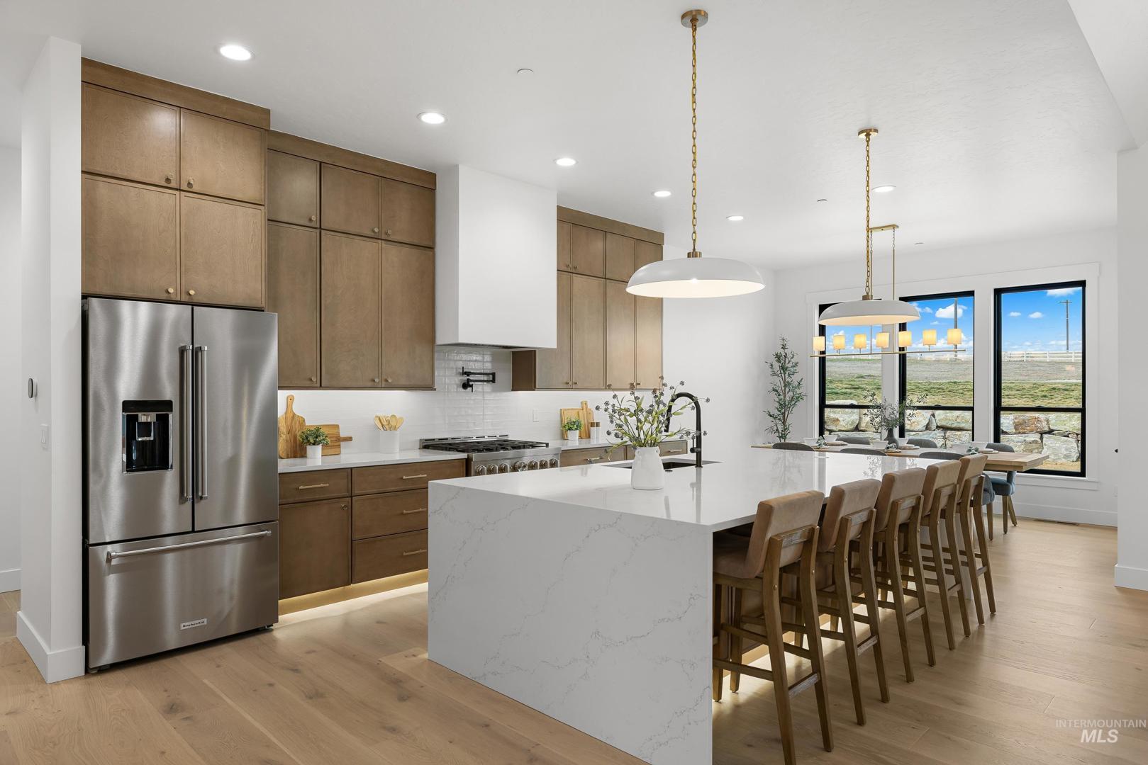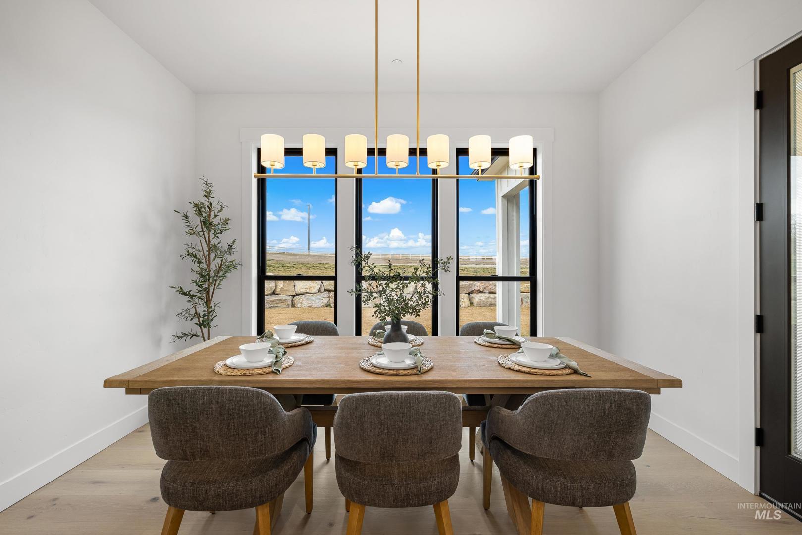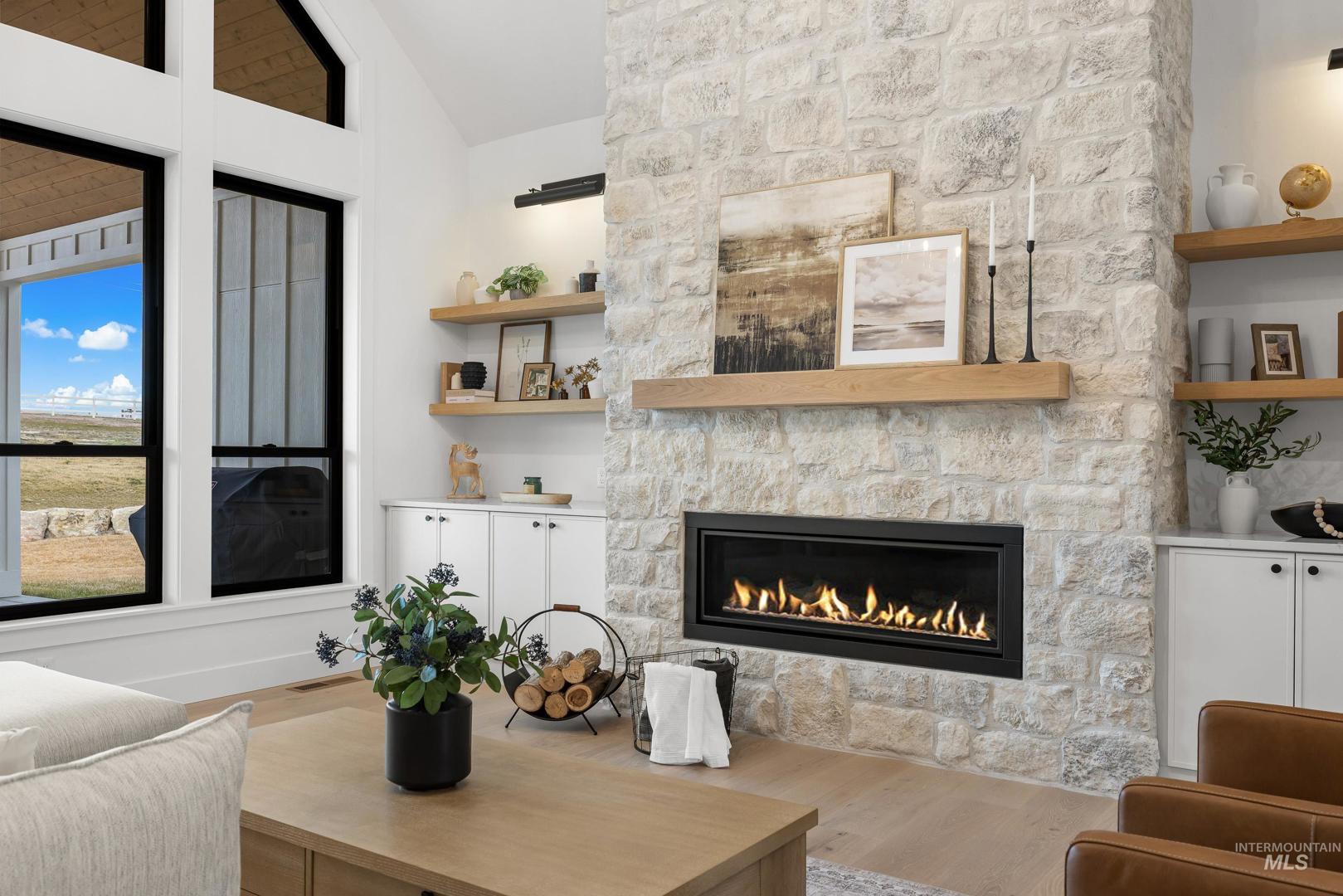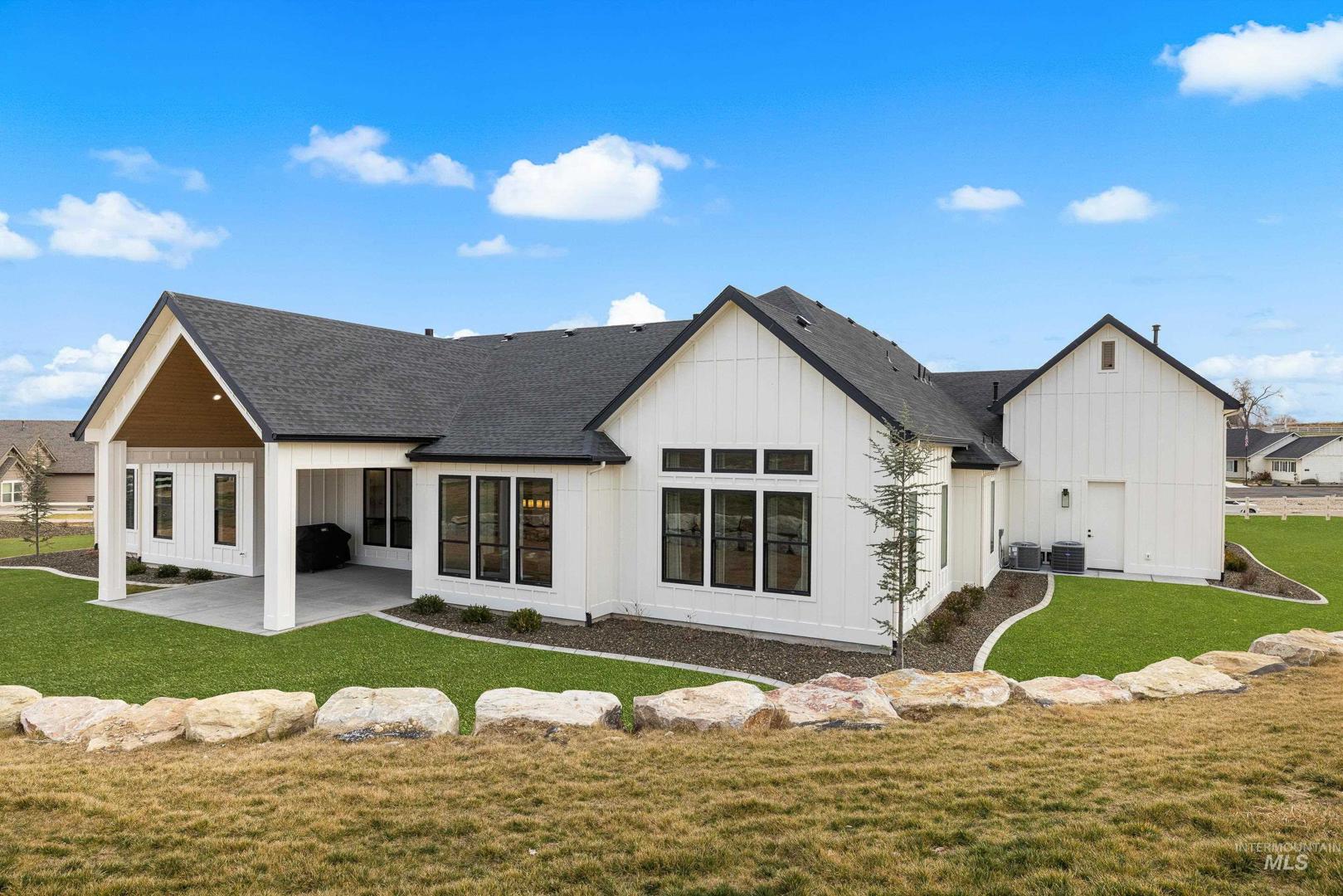 Custom built home situated on 2.08 acres overlooking Lake Lowell with views of the foothills. This single level home includes a 42` RV Bay plus an oversized 3-car garage w/ space for all your toys & recreational items. This home features a bright open floorplan showcasing extraordinary craftsmanship, & attention to detail. The great room boasts soaring ceilings w/ a serene backdrop. Premium finishes include a steel double entry door, engineered hardwood flooring throughout, quartz countertops, hardie siding, & more! Gourmet kitchen boasts an oversized waterfall island, custom double stacked cabinetry w/ under cabinet lighting, top-of-the-line Kitchenaid appliances, pot filler, & a spacious walk-through pantry. The private primary suite is a luxurious retreat w/ a beautifully crafted stone fireplace & a spa-inspired bath w/ a freestanding tub, curbless tile shower, & separate vanities. Relax & enjoy the tranquility & privacy that country living brings with the convenience of city living. Plenty of room for horses and outdoor enjoyment. This is Idaho living at its finest.