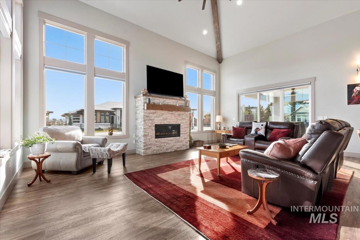 Located in the desirable Skybreak Estates Subdivision in South Meridian, this gated, custom 4 bedroom, 2.5 bathroom home offers 2807 square feet of thoughtfully designed space on a spacious .48-acre lot. The open layout blends comfort and functionality with quality finishes throughout. Car and RV enthusiasts will appreciate the oversized, fully finished 48` RV garage in addition to the attached 2 car garage. Providing storage and flexibility. The backyard was completely redesigned in Summer of 2025 with over 100k in upgrades, creating a stunning outdoor retreat for entertaining and enjoying Idaho evenings. A rare opportunity to own space, upgrades, and lifestyle in one of South Meridian`s premier communities. Kitchen includes Bosch appliances, refrigerator included and u/c beverage fridge. Washer and dryer included. 4th bedroom can be used as office or bonus.