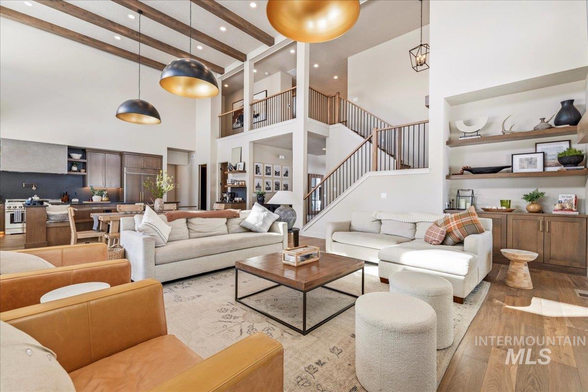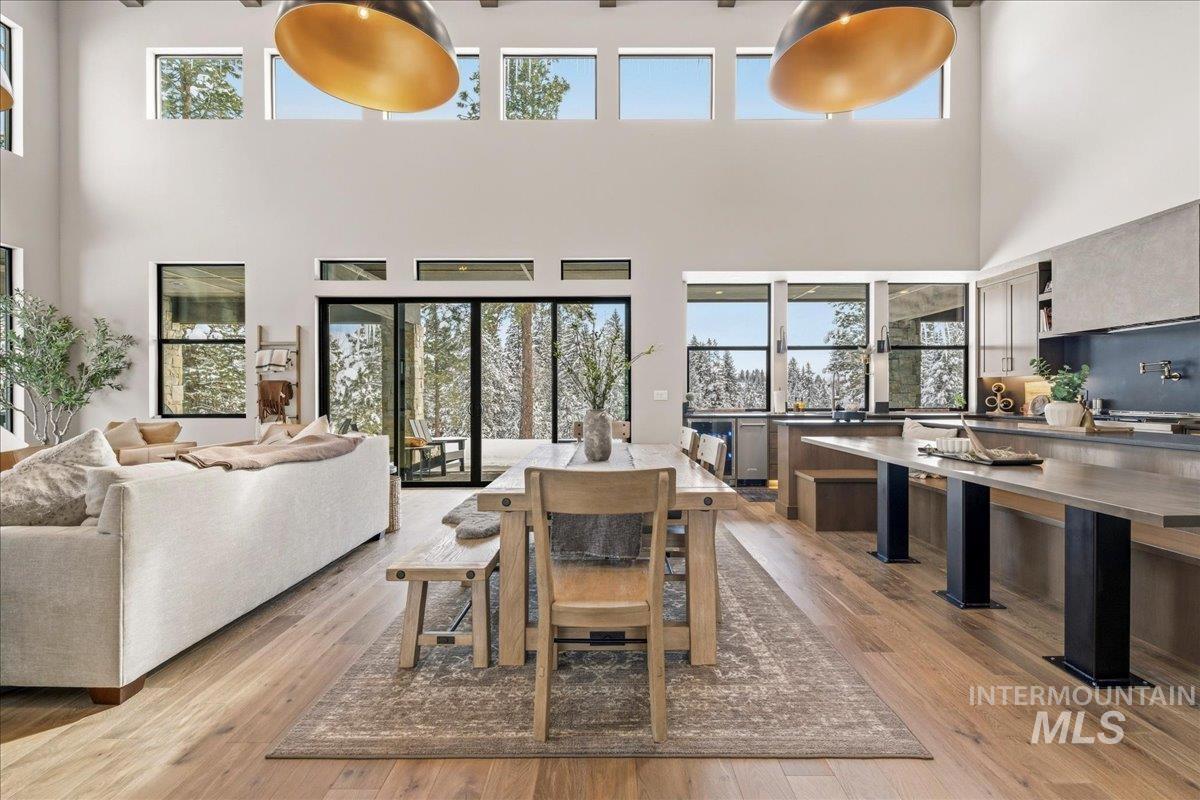 An opportunity to own a truly custom, luxury new-construction home in the highly desirable Blackhawk on the River community! An incredible resort-style community tucked into the mountains of McCall, Idaho! Step inside to curated high-end finishes from top to bottom. This home comes fully furnished & turn-key. A true chef’s kitchen with a paneled combo fridge/freezer & the ultra luxury KitchenAid 48” commercial style range. Quartz countertops, drink fridge, ice maker, pot filler & water bottle filler are a few of the added luxury items to round it out. The perfect open-concept layout is where you’ll host and entertain with ease while enjoying perfectly thought out window placements for the ultimate mountain views. The main-level primary suite will stun you with sliders, fireplace, and spa-inspired bathroom with a luxurious shower multi-head shower. The 3,800+ sq ft features 5 bedrooms, 5 baths, and a bonus room. Two bedrooms maximize space with built-in bunks creating space for 12 beds total. Oversized garage with a 38 1/2` RV bay (14x12 ft door) & overhead LED honeycomb lighting. Outside, your oasis begins with a custom outdoor kitchen, cozy outdoor fire pit, a hot tub. Enjoy resort-style community amenities including clubhouse, nature trails, pool & hot tub, gym & more. Short term rentals allowed + active permit in place.