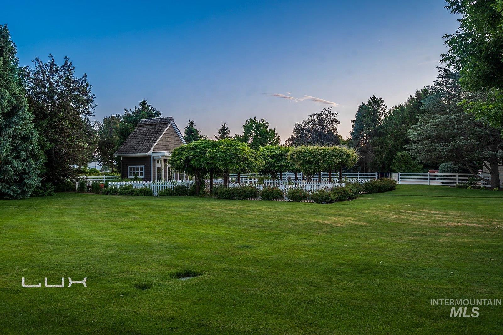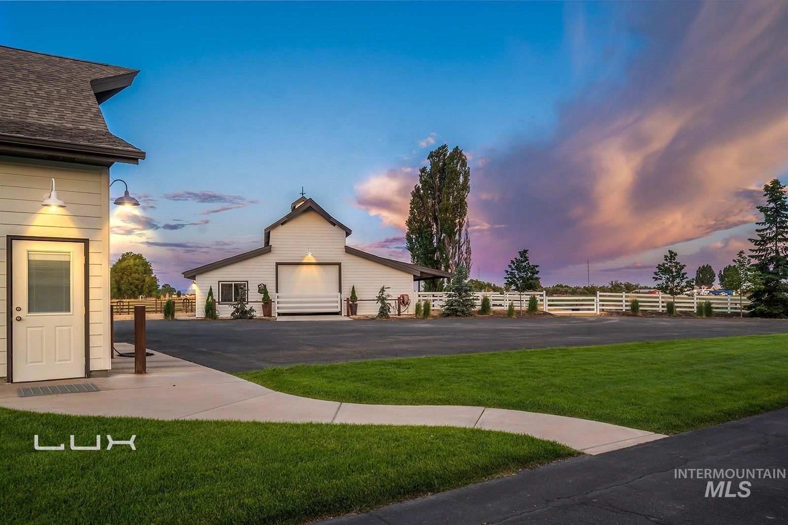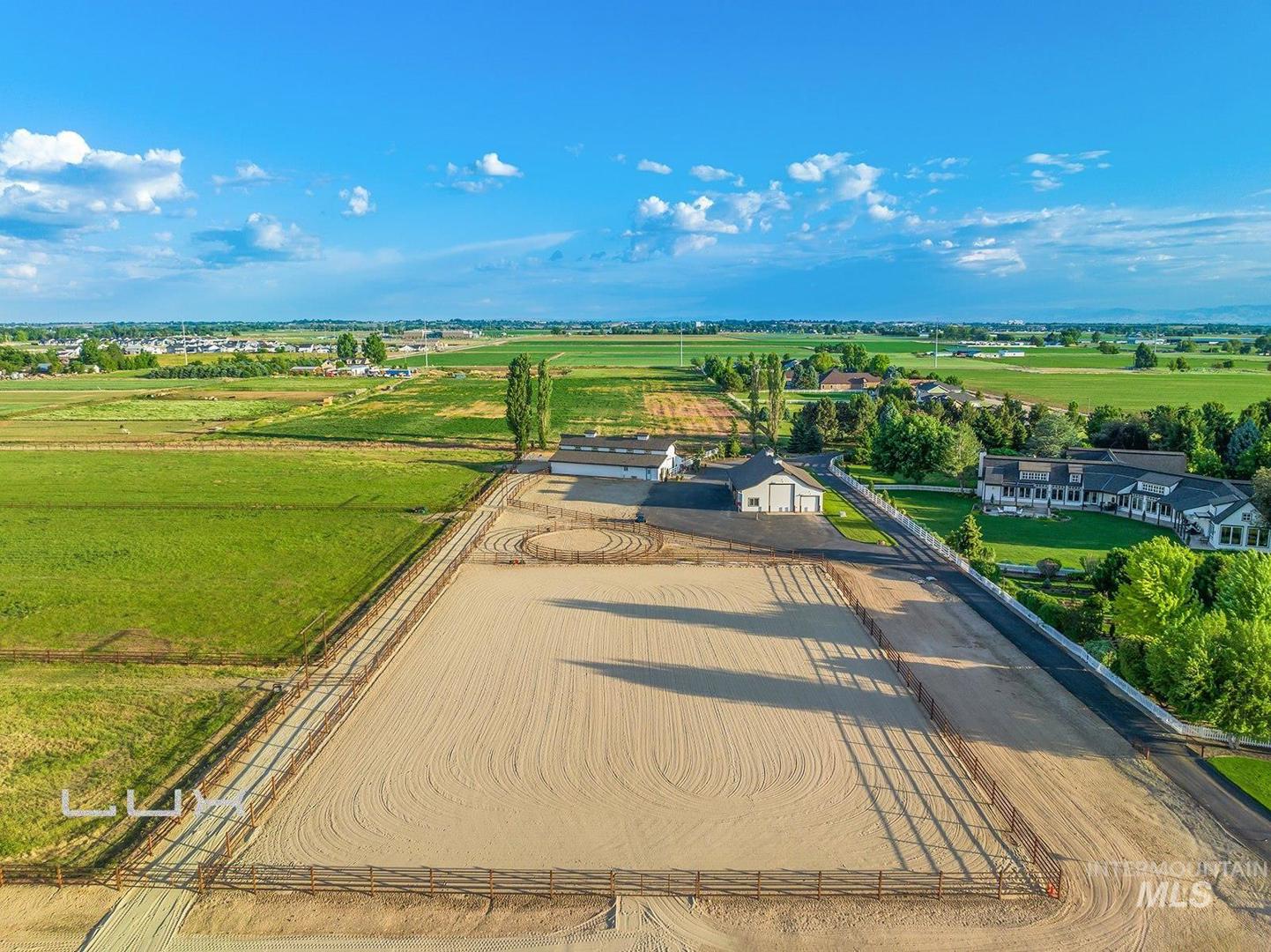 You will not find anything quite like this in the Valley! Option to split off a 5 acre parcel. This equestrian paradise spans over 15ac with 3 separate 3ac pastures with auto waterers for horses and an artesian well. Property has full irrigation rights. Every detail is designed for the discerning equine enthusiast where luxury meets functionality. The 6,451sf main house has been extensively remodeled in 2021 with new appliances, interior and exterior paint, cabinets, flooring, tile, bathrooms, roof, HVAC. Welcome visitors with elegant glass front door and windows displaying the views of the Boise front, which continues with large windows looking to the east. The kitchen is a culinary dream featuring exquisite granite counters, custom cabinetry, gourmet Fisher & Paykel appliances w/ double ovens and steam oven. Private owners suite is located in its own wing with sitting room, private patio and elegant bathroom offering a tranquil space to relax. Each guest room has its own ensuite. The 4,000sf silo building has so many possibilities, with an office, bathroom, full kitchen and a must-see cedar plank silo. Immaculate 6 stall barn with paddock area, tack room, 185x210 riding arena, 60ft round pen, RV/Equip building with a 65 ft pull through bay, Covered bay for hay, and extensive Buckley steel fencing. This estate offers unmatched amenities and a place where everyday is a dream.