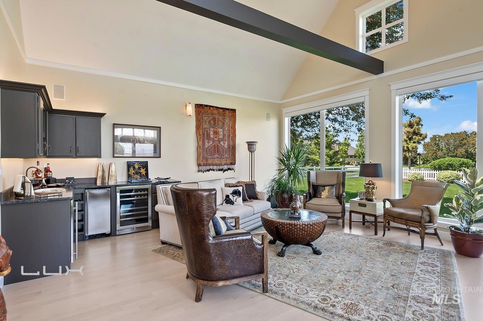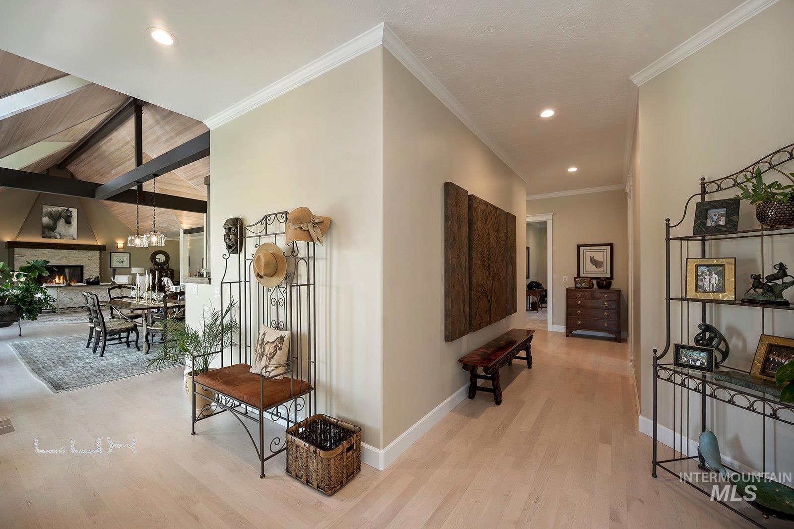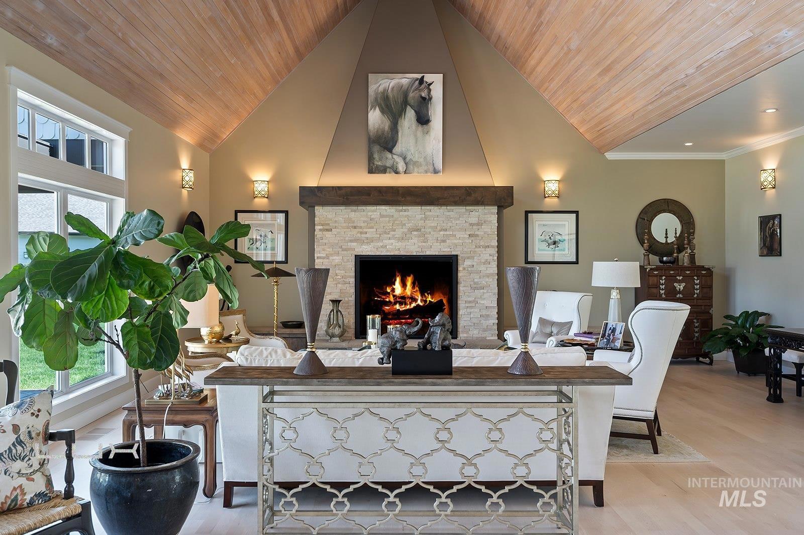 You will not find anything quite like this in the Valley! Option to split off a 5 acre parcel. This equestrian paradise spans over 15ac with 3 separate 3ac pastures with auto waterers for horses and an artesian well. Property has full irrigation rights. Every detail is designed for the discerning equine enthusiast where luxury meets functionality. The 6,451sf main house has been extensively remodeled in 2021 with new appliances, interior and exterior paint, cabinets, flooring, tile, bathrooms, roof, HVAC. Welcome visitors with elegant glass front door and windows displaying the views of the Boise front, which continues with large windows looking to the east. The kitchen is a culinary dream featuring exquisite granite counters, custom cabinetry, gourmet Fisher & Paykel appliances w/ double ovens and steam oven. Private owners suite is located in its own wing with sitting room, private patio and elegant bathroom offering a tranquil space to relax. Each guest room has its own ensuite. The 4,000sf silo building has so many possibilities, with an office, bathroom, full kitchen and a must-see cedar plank silo. Immaculate 6 stall barn with paddock area, tack room, 185x210 riding arena, 60ft round pen, RV/Equip building with a 65 ft pull through bay, Covered bay for hay, and extensive Buckley steel fencing. This estate offers unmatched amenities and a place where everyday is a dream.