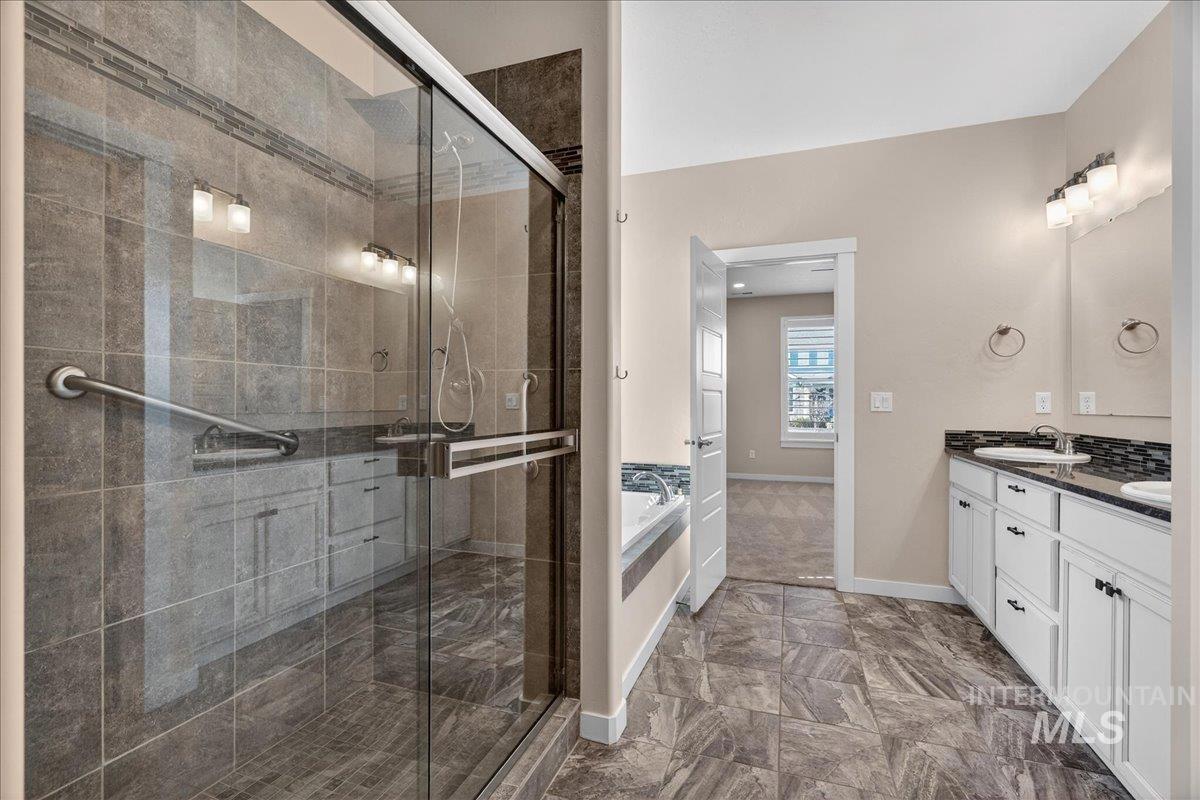 Enjoy the quintessential Eagle lifestyle in this truly turnkey, single-level home located in the highly sought-after Legacy subdivision—one of Eagle’s premier resort-style communities. Set on a beautifully landscaped 0.29-acre lot in a quiet, established neighborhood, this home offers privacy, space, and effortless living. The open floor plan centers around a beautiful stone fireplace, creating a warm and inviting space to gather with family and friends, complemented by granite countertops, new Bosch kitchen appliances, and plantation shutter window treatments throughout. New carpet in the primary bedroom and living room enhances the home’s like-new feel. Step outside to a large covered patio and custom paver and stone fire pit—ideal for relaxed outdoor entertaining and peaceful mornings at home. A rare climate-controlled 4-car garage with heating and air provides exceptional space for hobbies, toys, or storage and includes a high-end water softener and oversized basin sink. Legacy residents enjoy three community pools, miles of walking paths, ponds and water features, tennis and pickleball courts, expansive green spaces, year-round events, and a 26-acre, three-hole executive golf course. Morning walks along the ponds and quiet moments on the covered patio complete this perfect blend of luxury and resort-style living.