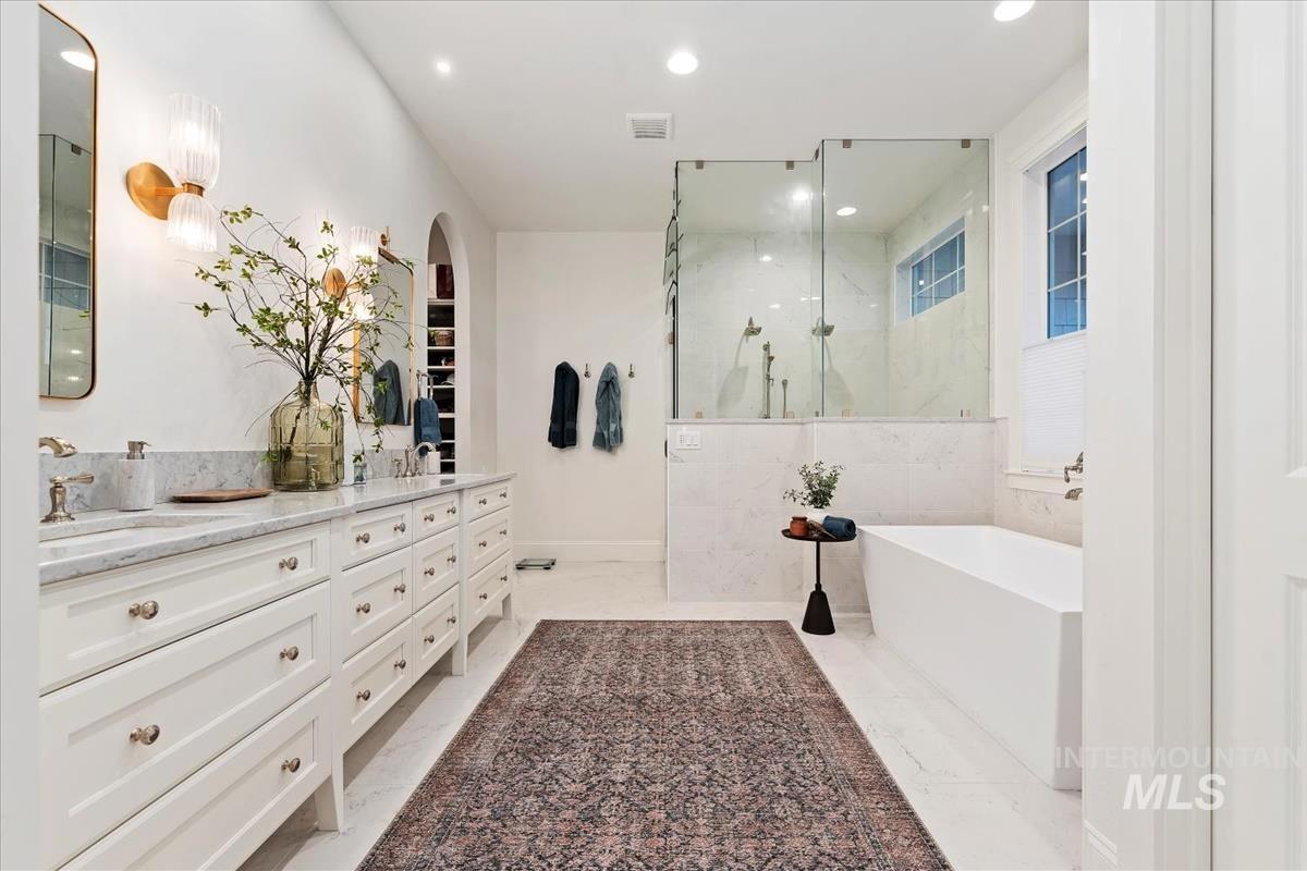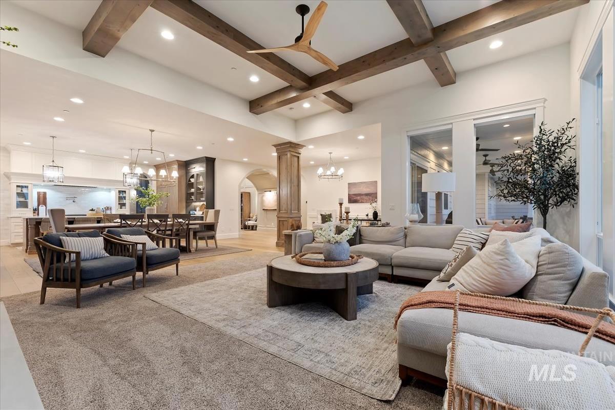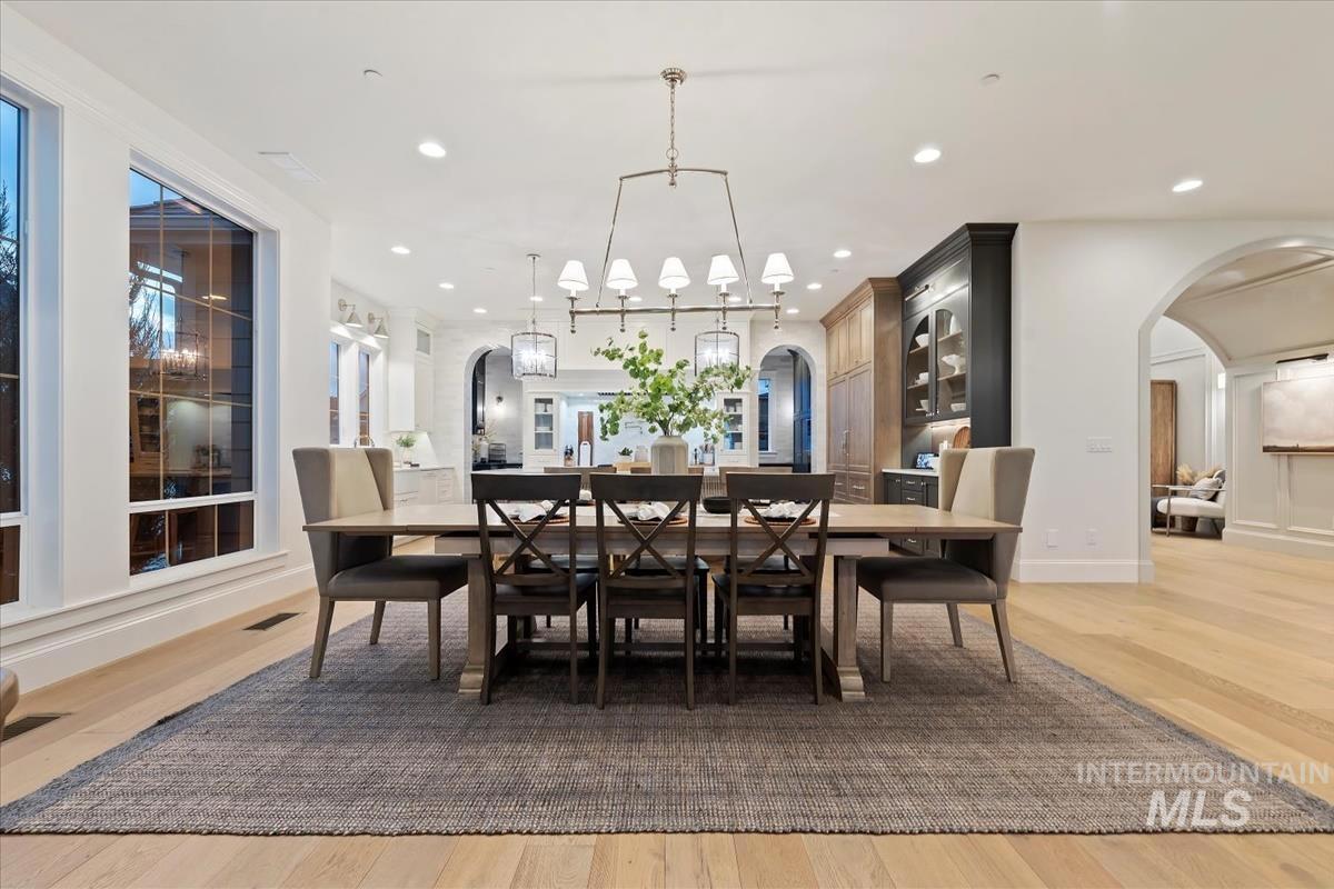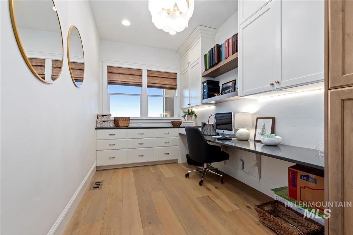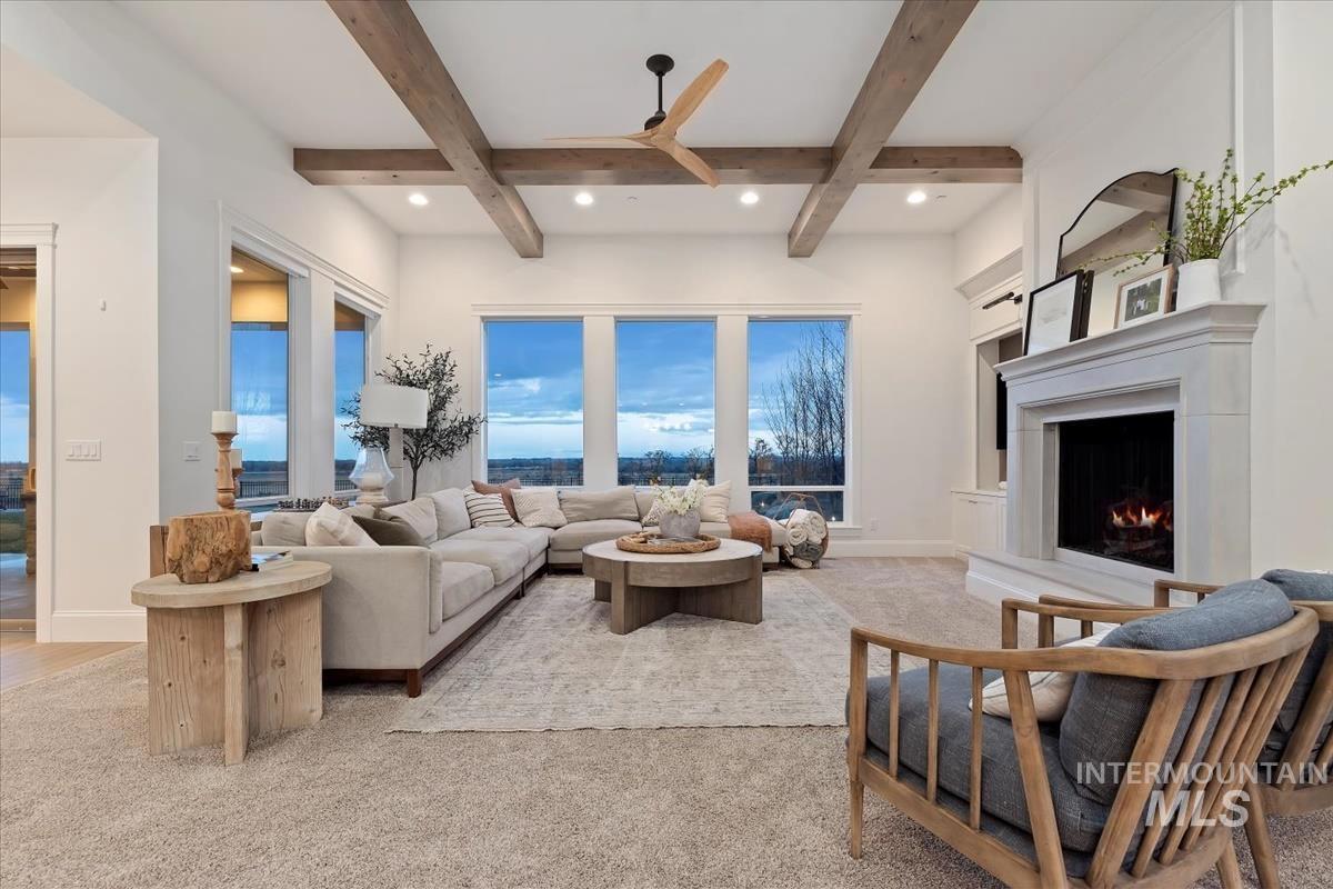 Discover refined elegance at 5032 Oakford Ave, Meridian, ID—a one-owner Biltmore Co. 2023 Parade Home in the prestigious Fairbourne community on the RIM. This coastal-inspired masterpiece blends light, space, and luxury with a grand arched entry, wide-plank hardwoods, and a stone-cast fireplace. The chef’s kitchen stuns with custom cabinetry, quartz countertops, pot filler, and a sunlit butler’s pantry. Relax in the spa-like primary suite with heated floors, golf simulator room, and bonus room with sweeping views. Entertain outdoors from the covered patio overlooking private open land. The 6-car garage with RV bay is a showstopper. Close to Costco, The Village at Meridian, dining, and SpurWing Golf Club. Within the West Ada School District. Luxury, lifestyle, and location—schedule your private showing today!