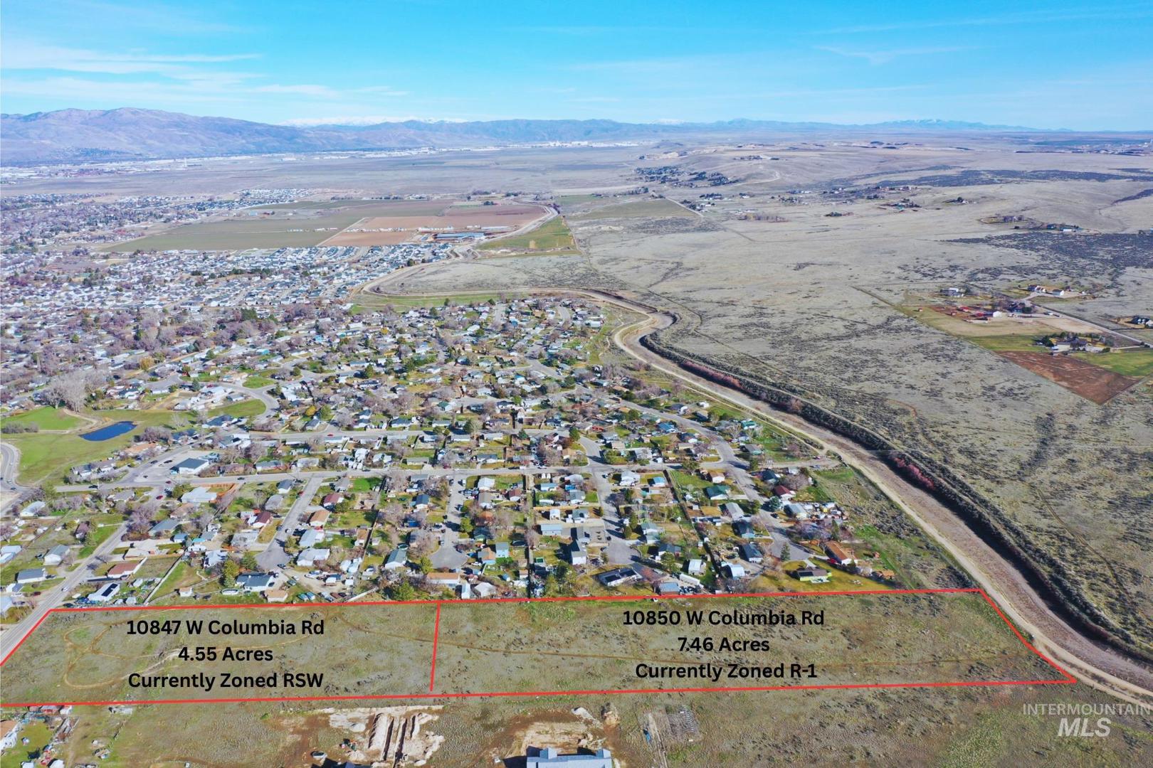 Discover a prime opportunity for residential development in southwest Ada County, one of the region’s fastest-growing corridors. This substantial 12.01 acre parcel is ideal for builders, investors or an end user to create a premium development with the potential for 1 and 2.5-acre minimum lot sizes, meeting strong demand for spacious, country-style living with city access. Surrounded by new communities and established neighborhoods, the site offers peace and space while remaining close to conveniences like Walgreens, Idaho Central Credit Union, Zamzows, Reed’s Dairy, and Jacksons. A 15-minute drive connects to I-84, the downtown connector, and major retail hubs including Walmart, Costco, and Home Depot. With nearby schools and major arteries, this property is a strategic acquisition for developers and builders aiming to deliver a standout community in Boise’s growth corridor. Property lines shown in pictures are approximate. Currently divided into two separate parcels, 4.55 & 7.46 acres each.
