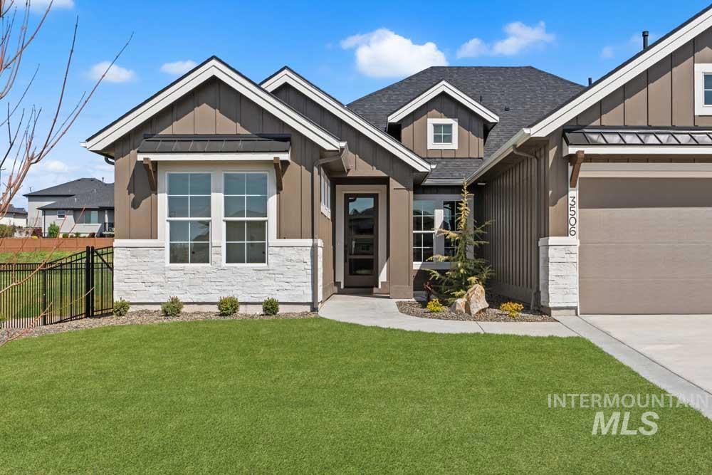 Introducing the Cassia RV by Todd Campbell Custom Homes, the builder’s most sought-after floor plan, featuring a dedicated RV bay. The interior showcases wide-plank flooring, soaring cathedral ceilings, expansive windows, and a spacious open-concept design. The gourmet kitchen is beautifully appointed with Wolf stainless steel appliances, ceiling-height cabinetry, a touchless faucet, and designer tile, perfect for the modern chef. Custom millwork and crown molding enhance all common areas, complemented by 8-foot interior doors and energy-efficient windows that fill the home with natural light and refined elegance. The primary suite is a true retreat, offering a spa-like en suite bath with a wall-to-wall walk-in glass shower, freestanding soaking tub, and dual vanities. An impressively sized walk-in closet provides exceptional storage and organization. Additional highlights include epoxy garage flooring, a generous 45-foot RV bay, and a covered patio ideal for outdoor relaxation. Energy efficiency is maximized with a Force Energy Star furnace and hot water heater. Located in the desirable Centerra community, residents enjoy access to a community pool and a prime location just minutes from downtown Eagle.