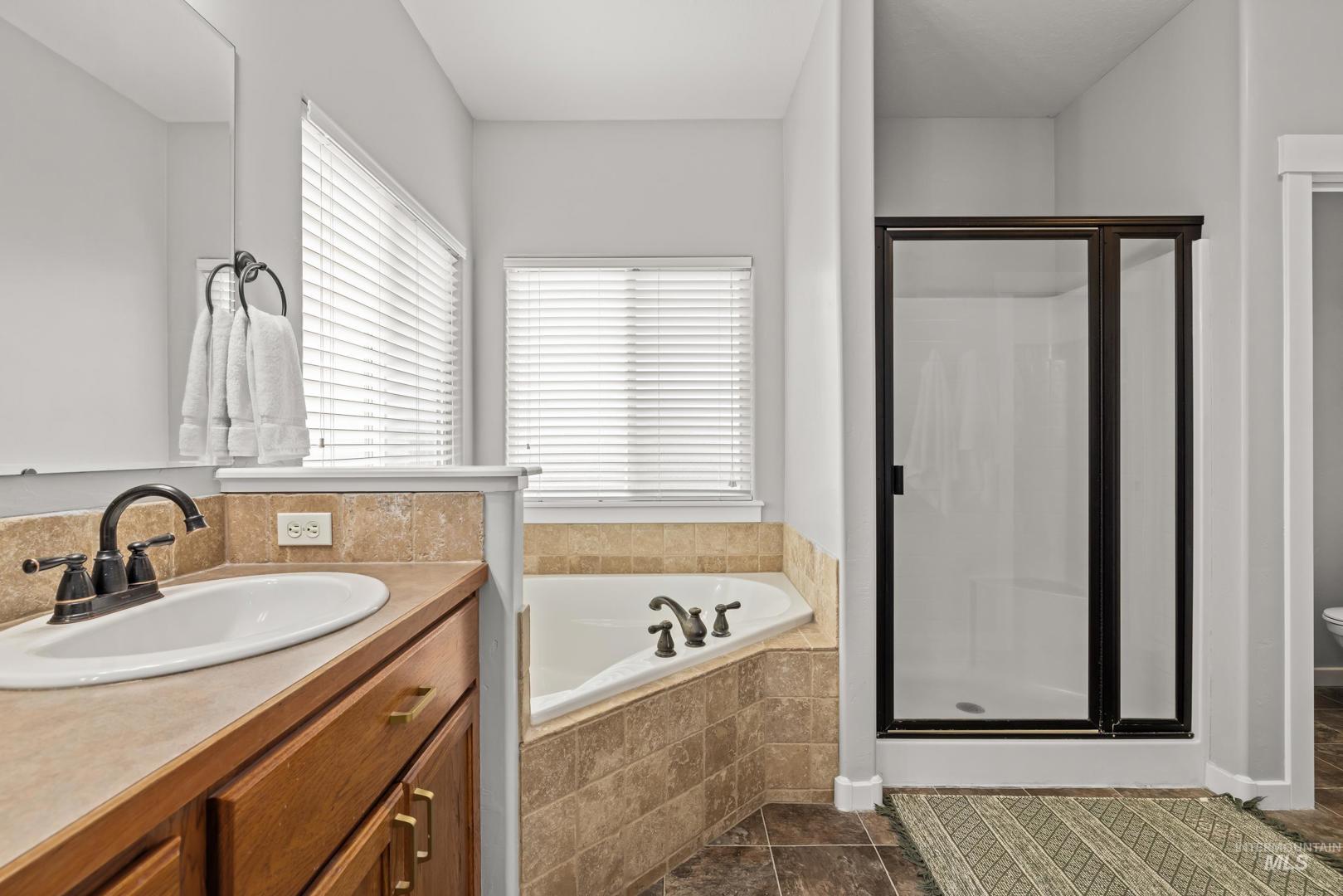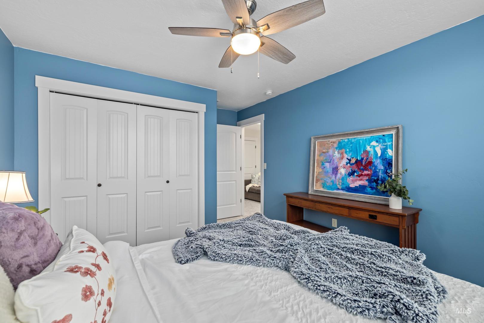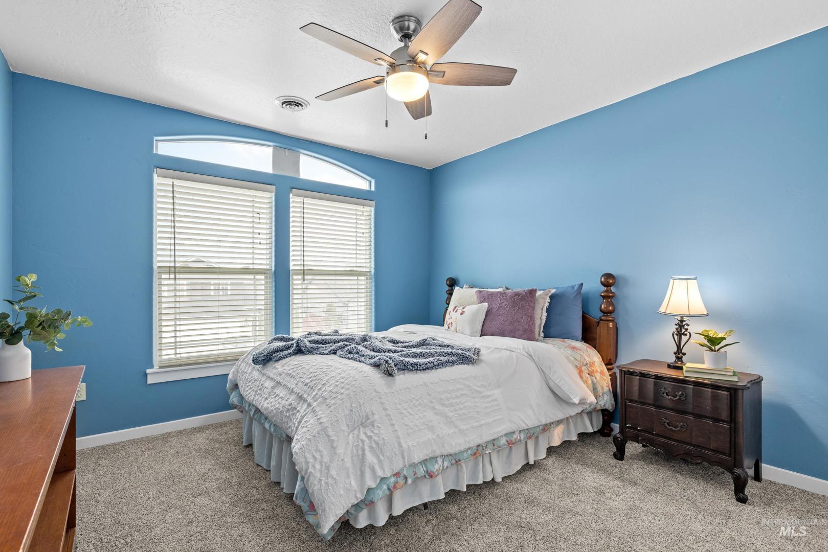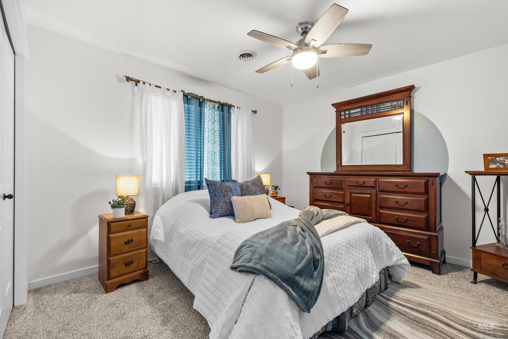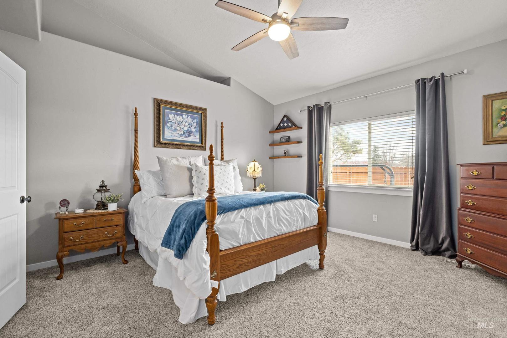 Welcome to this beautiful home offering a functional, inviting layout designed for both privacy and togetherness. The spacious family room flows into a separate dining area and a large kitchen featuring a gas stove, refrigerator, pantry, and abundant storage—perfect for everyday living and entertaining. The main level includes a convenient utility room, two full bathrooms, and two bedrooms, including the primary suite. Upstairs are two additional bedrooms, a full bath, and a versatile office space—ideal for working from home or a study area. All toilets have been upgraded to comfort-height and are ADA compliant. Enjoy peace of mind with major updates completed in 2024, including a new AC, furnace, and water heater. Situated on a quiet corner lot with a west-facing driveway, the property also offers potential for an additional parking area suitable for an RV, trailer, or boat. The backyard provides space for a dog run, garden, or your dream outdoor retreat. A covered patio with added electrical and a concrete extension spanning the width of the home creates the perfect setting for relaxing or entertaining. Owned solar panels add efficiency and value, and with no direct rear neighbors you’ll appreciate the added privacy. Conveniently located just minutes from I-84, shopping, dining, recreation, schools, the YMCA, and Boise Ranch Golf Course.