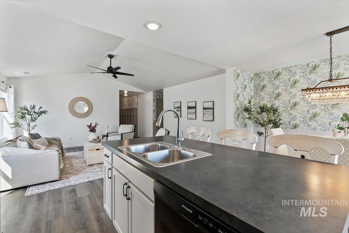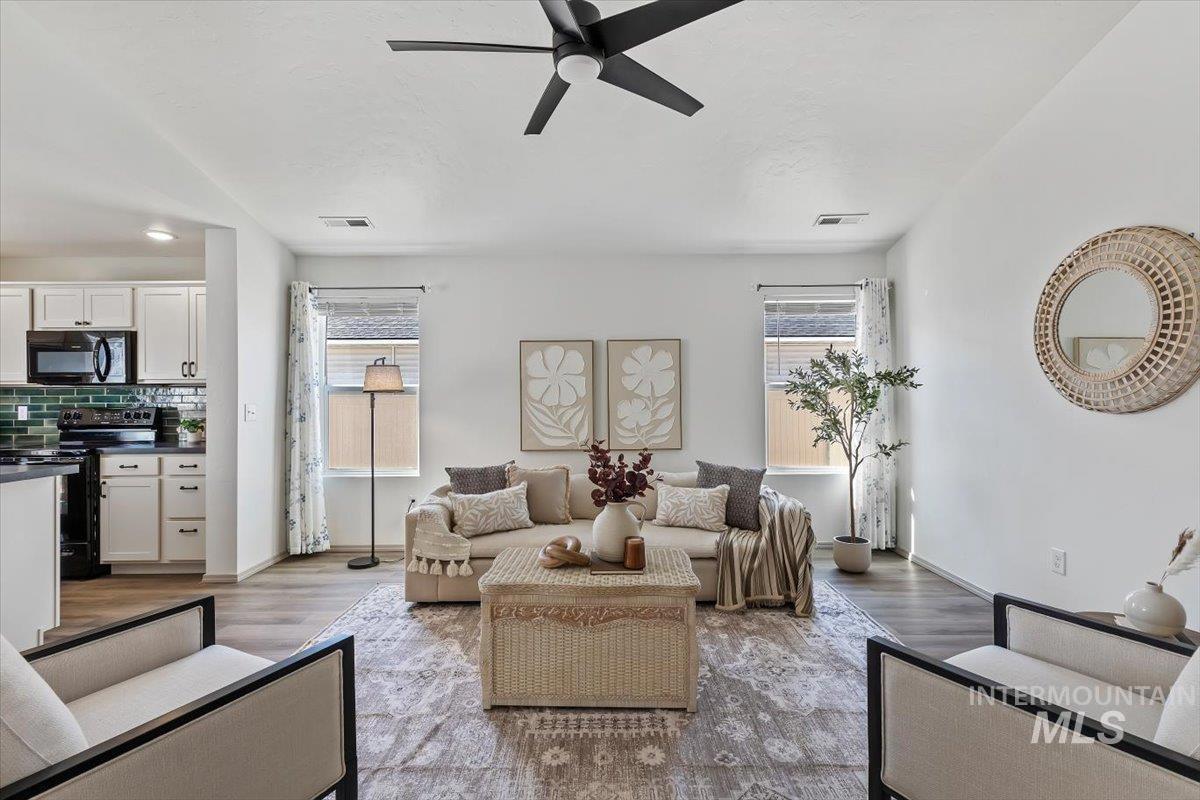 STOP the scroll... this isn’t your typical CBH, it’s a fully re-imagined, designer-inspired retreat that instantly captures your heart! From the moment you walk in, you’re welcomed by a stunning board and batten entry, floral wallpaper, designer paint palette, and curated lighting that sets the tone for the entire home. The vaulted living space feels bright, open, and inviting—perfect for entertaining or cozy nights in. The kitchen is equal parts functional and beautiful, featuring a stylish backsplash, updated hardware, abundant cabinetry, and an island made for morning coffee or casual meals. The dining space shines with a statement chandelier that brings warmth and elegance. Enjoy a flexible and functional layout offering 3 bedrooms and 2 bathrooms in a seamlessly flowing single level home. The primary suite is a peaceful escape with dramatic floor-to-ceiling drapes, stunning color palette, private en-suite bath, and a thoughtfully designed walk-in closet. Even the laundry room is a standout—bursting with color, storage, and functionality. Durable LVP flooring runs throughout the main living areas for both style and ease. Ideally located with quick freeway access and just minutes to shopping, dining, and entertainment. Situated within the desirable Vallivue School District. If you’ve been waiting for something with character, style, and soul... this is the one!