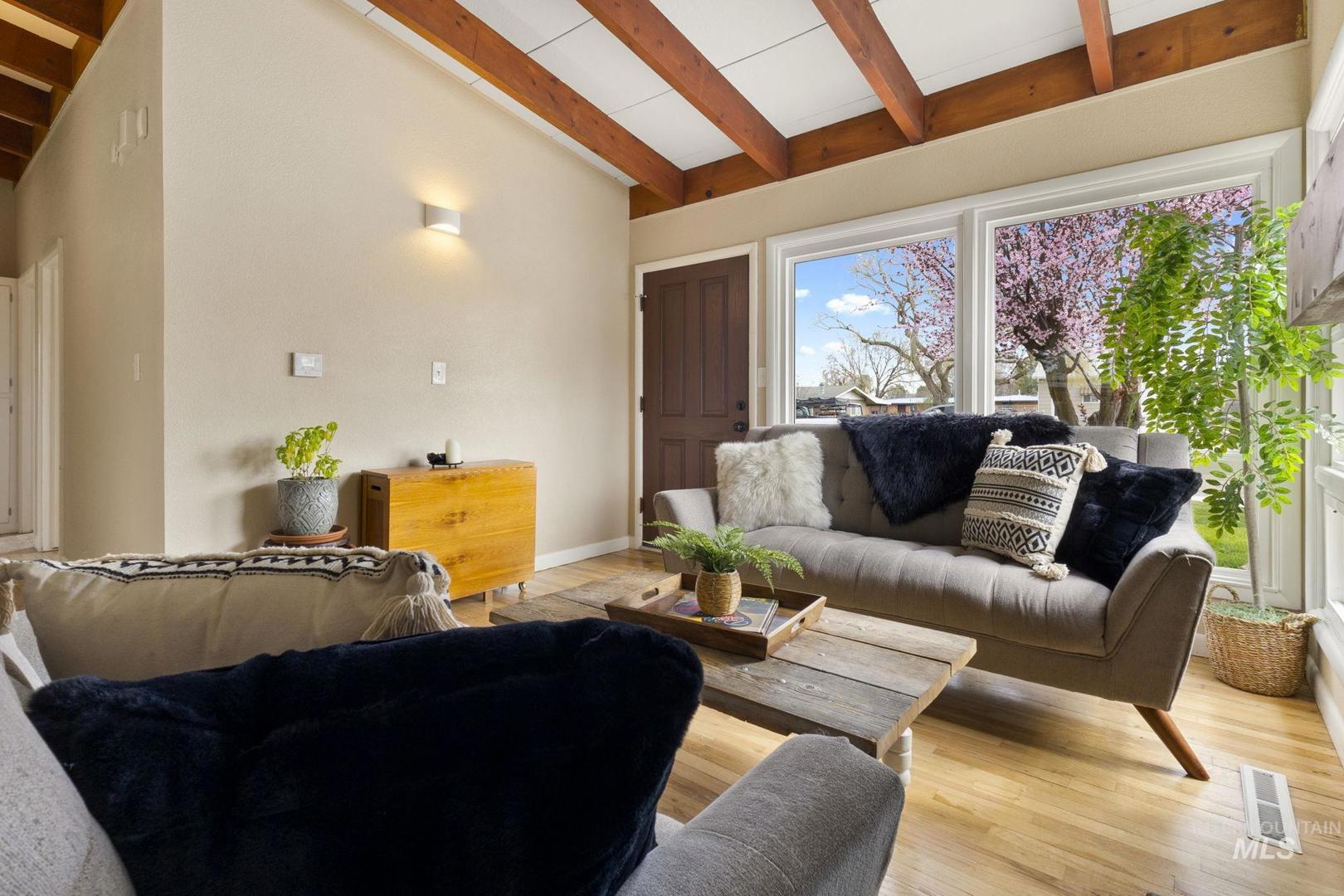 Step into timeless charm with modern comfort in this beautifully remodeled Caldwell home! Originally built in 1956, this character-filled property blends vintage appeal with thoughtful updates throughout. From the moment you walk in, you’ll notice the stunning original hardwood floors, warm wood beam accents, and inviting vaulted ceilings that create a bright, open feel. The main level features three spacious bedrooms and a welcoming layout perfect for everyday living and entertaining. Downstairs, the fully finished basement offers a private master suite retreat complete with a large, beautifully designed shower—your own personal escape at the end of the day. This home was completely remodeled in 2019, including updated appliances, HVAC system, and windows, giving you peace of mind while preserving its unique charm. Outside, you’ll find convenient RV parking and room to enjoy Idaho living. Located just minutes from the heart of downtown Caldwell, you’ll love being close to the area’s growing dining, shopping, and community events.