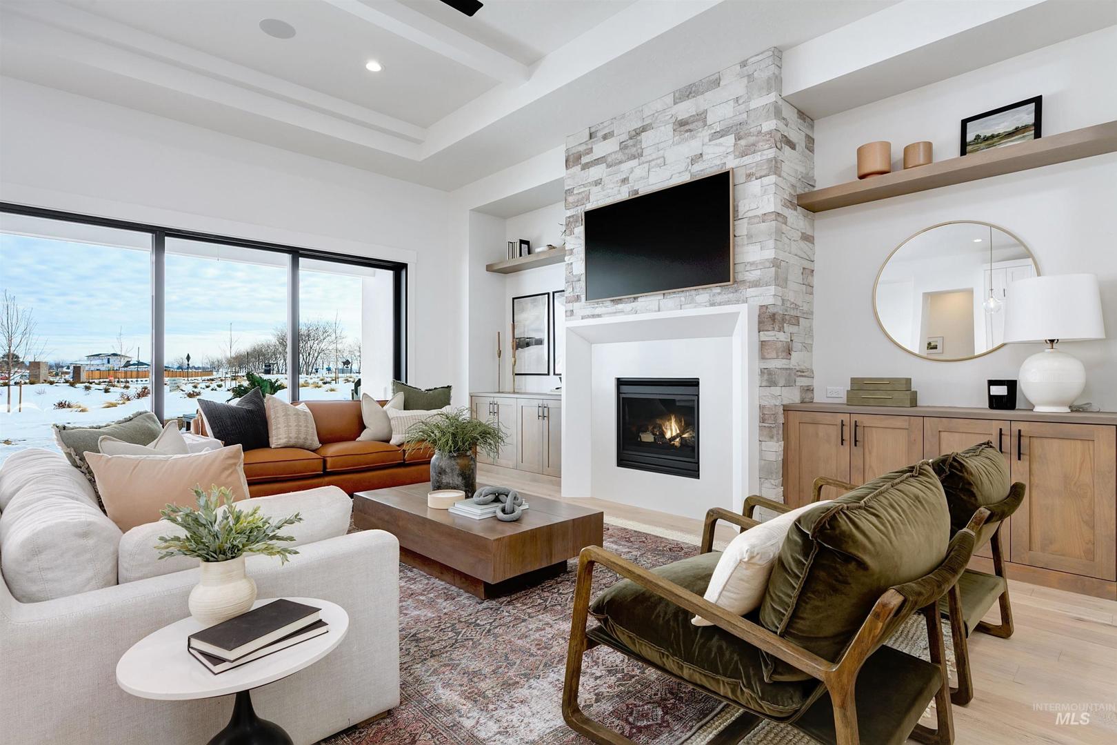 The incomparable Vista by Tresidio Homes. Our stunning Vista model home in Valor is finally available! This highly enhanced and customized example of one of our most loved plans can now be yours. The setting couldn`t be much better! Located on a traffic free loop with park space in front, landscaped open space to the side a golf course view behind, and an east facing back yard and covered patio for shady, cool enjoyment. The unique open air courtyard entry greets you and allows for a private front, door, lots of natural light and direct entry into the office / 4th bedroom. Once inside you will find extra tall ceilings measuring 10` in the bedroom areas, 11` in the kitchen and dining and 12` over the living space! All of the doors are 8` tall and contrast painted to give it a bold, stylish look. The living room has been enhanced with a floor to ceiling stone fireplace with a 3 sided mantle and slab quartz to finish it off. There are floating shelves and built in cabinetry on both sides of the fireplace and a huge 12`x8` multi panel sliding door to open the greatroom to the patio and golf course view. The kitchen is enhanced with premium KitchenAid appliances with built in 6 burner range, dual convection ovens and a matching fridge. The cabinets are extra tall and all of the lowers are drawers for easy and ample storage. Many more custom features throughout! Call to see it today!