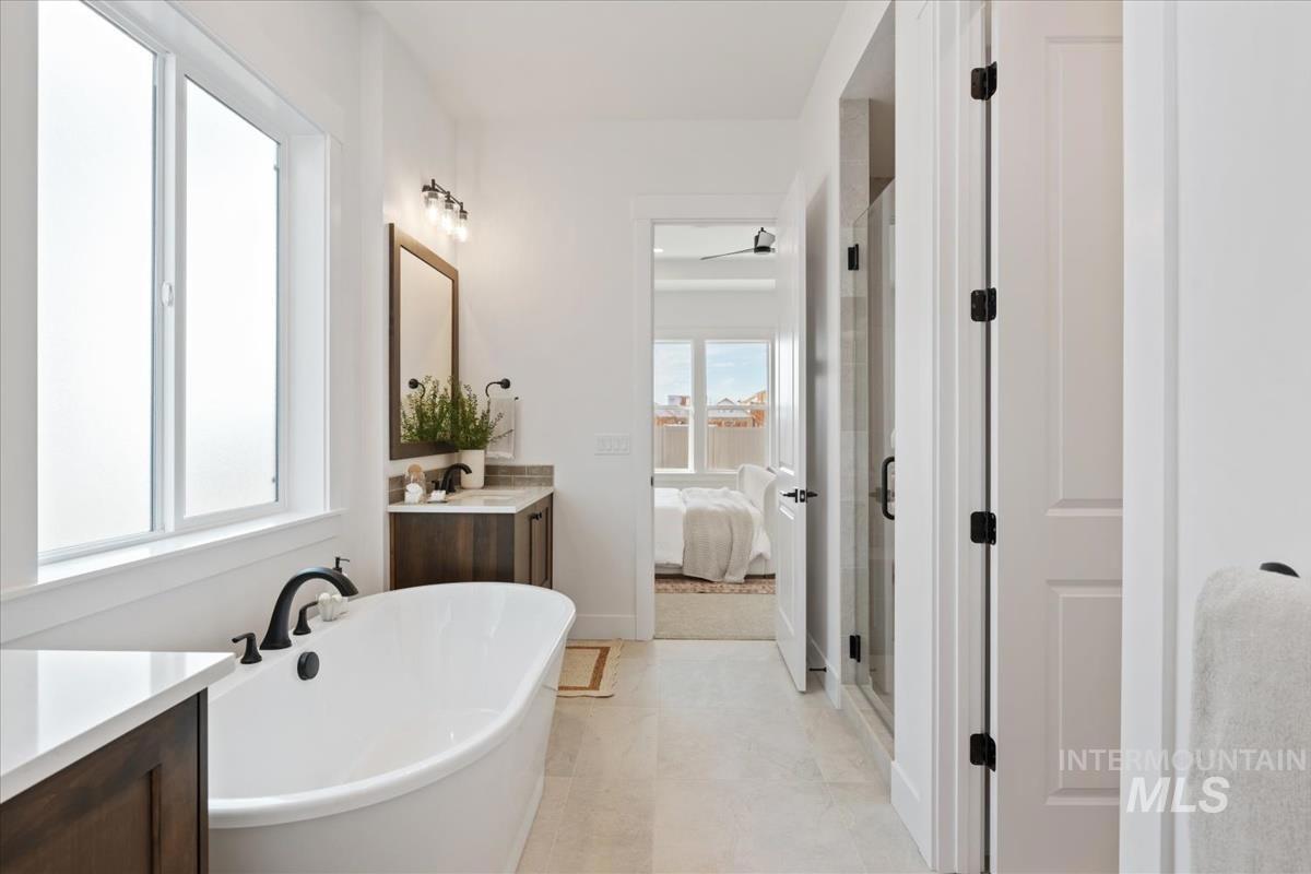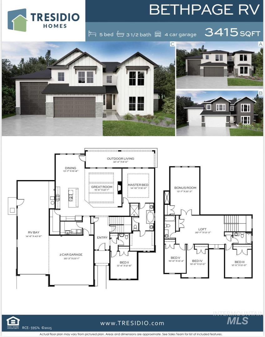 Welcome spring in style with Tresidio Homes’ newest 5-bedroom RV home, The Bethpage RV-perfectly situated on a slightly larger than a quarter acre lot in one of our fastest-selling communities. This thoughtfully designed home blends functionality and luxury, featuring soaring 10’ ceilings and elegant 8’ doors on the main level, creating an open, airy feel filled with natural light. The MAIN-LEVELl primary suite offers a private retreat with comfort and convenience in mind, while an additional guest bedroom on the main floor provides flexibility for visitors, multi-generational living, or a home office. The inviting great room is anchored by a beautiful fireplace, perfect for cozy evenings and gathering with loved ones. The kitchen shines with sleek stainless steel appliances, combining style and performance for everyday living and entertaining. Step outside to enjoy the extended rear covered patio—ideal for spring evenings, outdoor dining, and relaxing in your fully landscaped backyard. Upstairs, you’ll find three additional spacious bedrooms, two full bathrooms, a bonus room, plus loft. Complete with full front and back landscaping, fencing, and Tresidio’s highly sought-after builder-included features, this home delivers exceptional value. The RV garage adds versatility for storage, toys, and more. Don’t miss The Bethpage RV-available 11/2026. *Photo Similar*Under construction