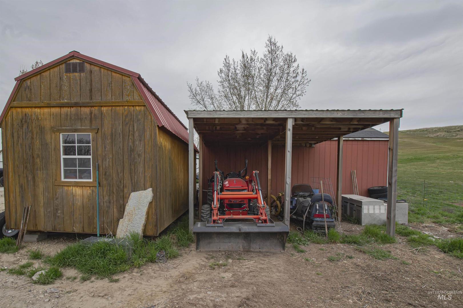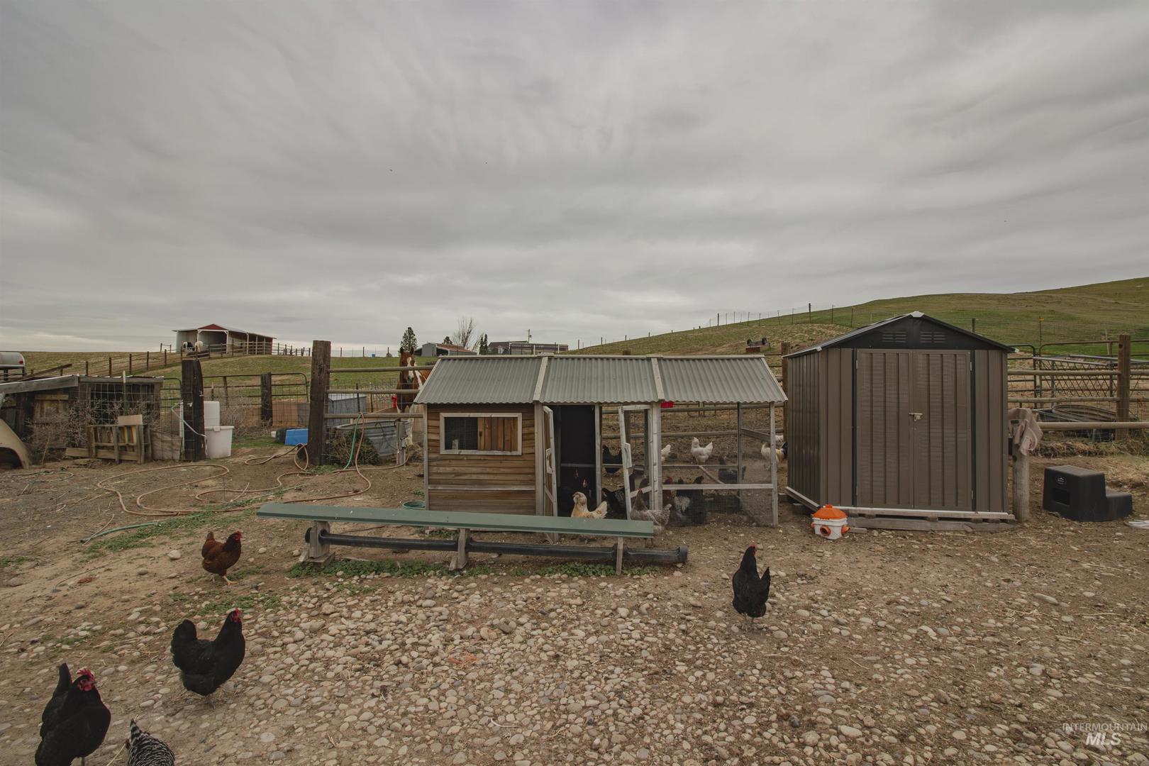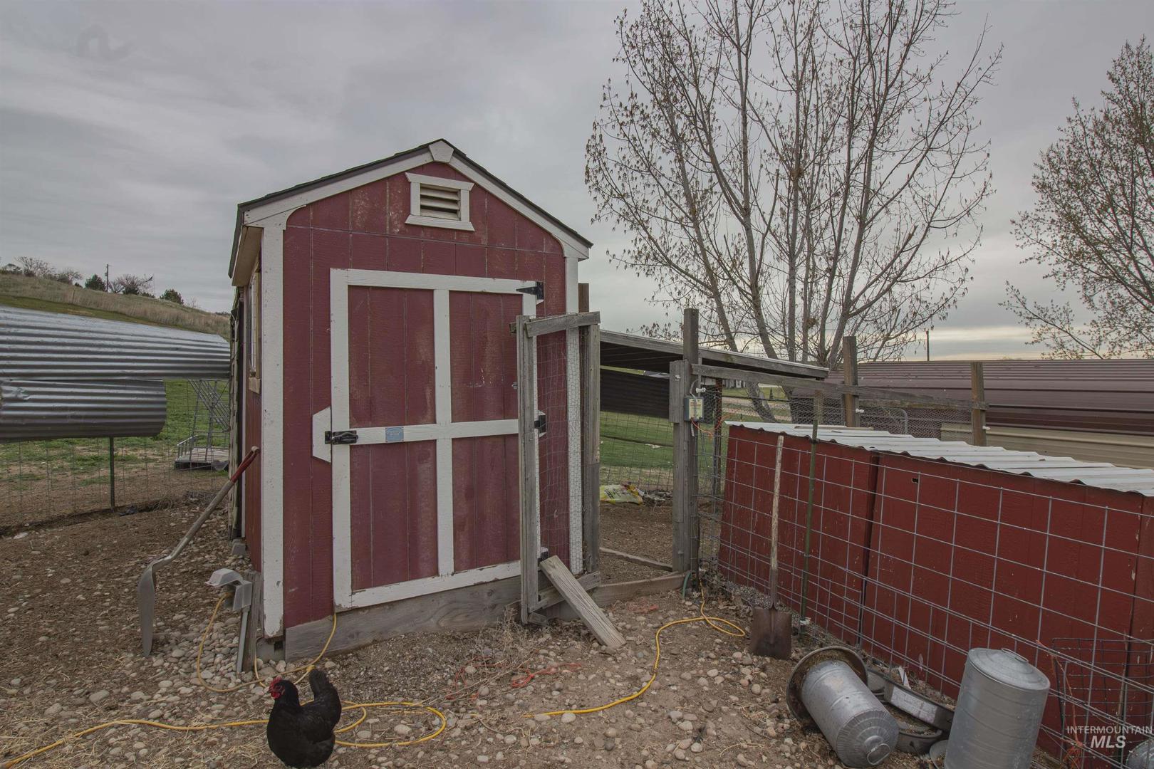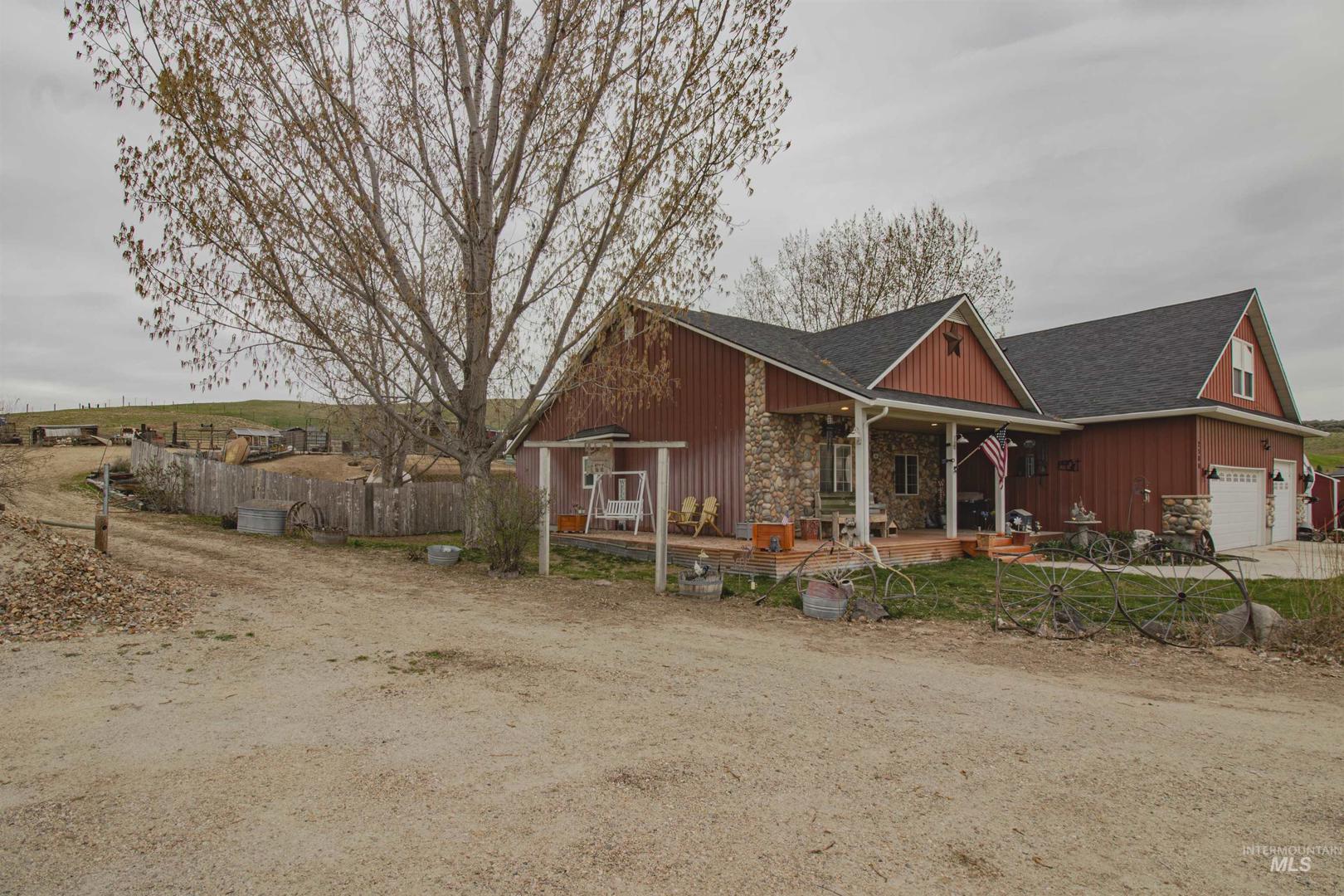 Enjoy country living at its finest w/ no HOA or CC&Rs and endless possibilities on two separate parcels. This property is set up for your hobby farm lifestyle w/ room for horses, cows, goats, and chickens. Includes a hay barn, 2 additional large red storage sheds, tractor shelter, and two chicken coops w/ enclosed yards. Inside, the home features a spacious kitchen w/ Corian countertops and custom hickory cabinets. Updated LVP flooring in main areas, a blue pine tongue & groove accent wall, and a blue pine live-edge mantle, perfect for everyday living and entertaining. Guest bedrooms are generously sized w/ walk-in closets. The primary suite offers a private retreat w/ a double-head walk-in shower, jetted tub, dual vanities, & a large walk-in closet plus additional under-stair storage. Large bonus room with a half bath. A portion of the carpet was removed. Seller had planned to add a closet, but it was never completed. Additional highlights include a lighted 4-foot crawl space with two access points, a full RV hookup, and a garage equipped w/ two 220 outlets and two freezer outlets. The property is stubbed for a future shop and wired for a hot tub on the primary patio. Second well head perfect for irrigation. Seller is offering a $2,500 flooring allowance for the primary bedroom, stairs, & bonus room. A great opportunity to enjoy rural living with room to grow & easy access to I84.
