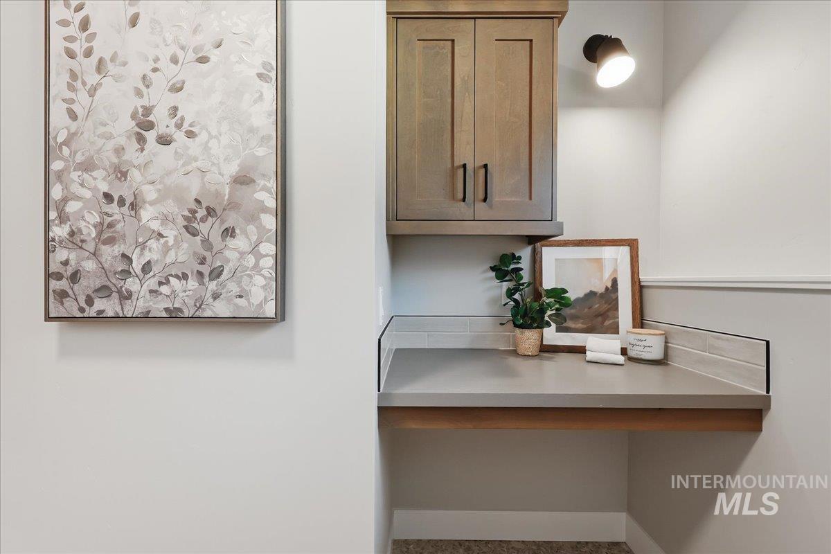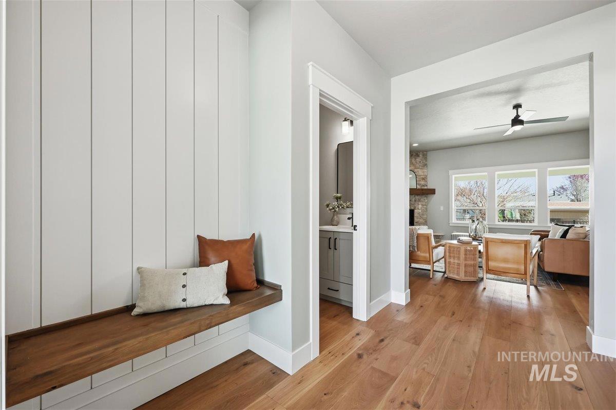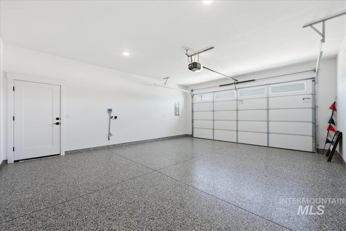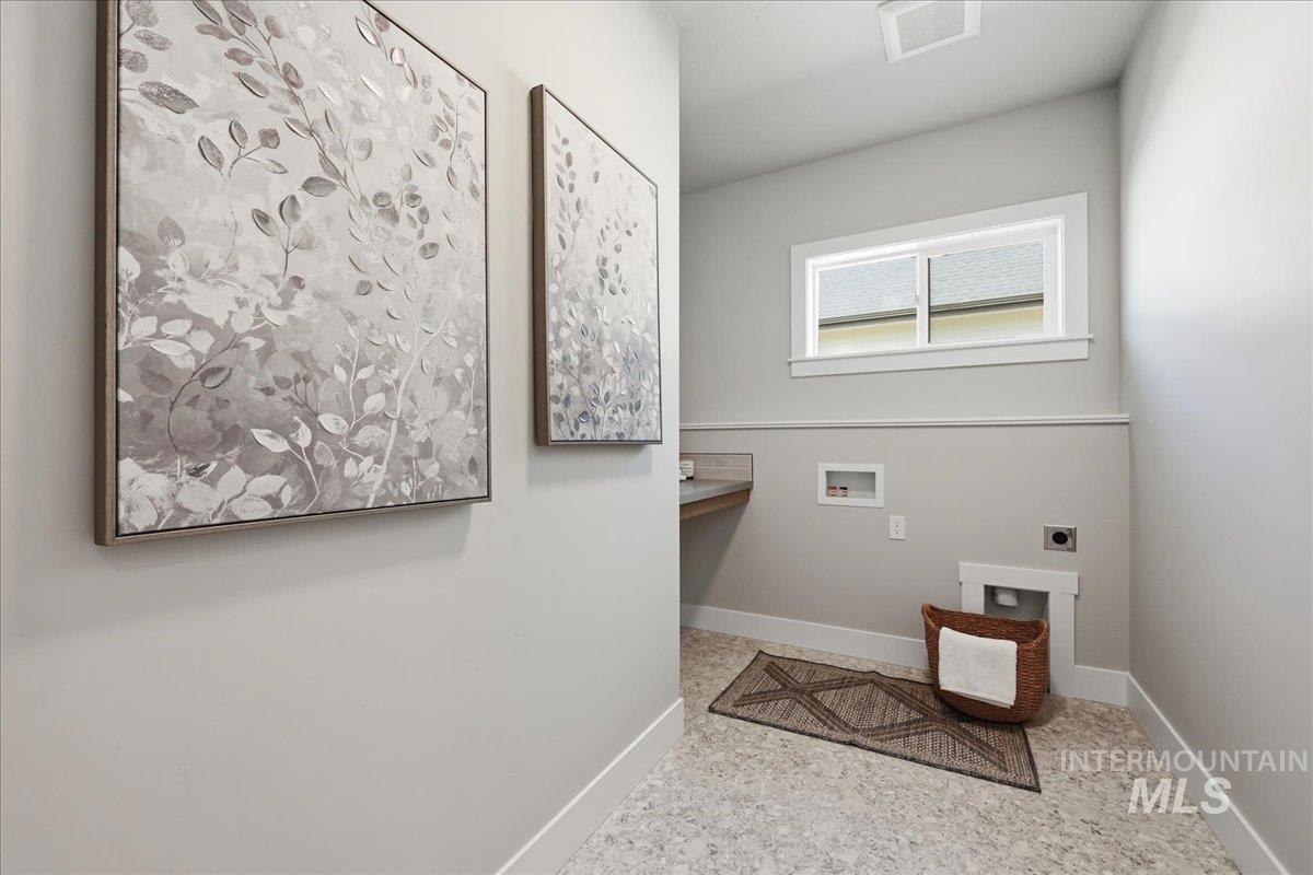 Single-level living meets upscale comfort in the desirable new community of The Mill. This thoughtfully designed 3-bedroom, 2.5-bath home offers the perfect blend of country charm and modern finishes. A welcoming front elevation features a spacious covered patio, setting the tone for the warmth found throughout. Step inside to a wide entry accented with wainscoting and a convenient built-in bench. The open-concept great room is filled with large windows and anchored by a beautiful stone fireplace—ideal for both relaxing and entertaining. The stylish kitchen is a standout, complete with quartz countertops, a double oven/gas cooktop, and KitchenAid appliances. The oversized pantry is a must-see, featuring abundant storage, a dedicated coffee bar, and direct access to the mudroom and garage. The private primary suite offers direct patio access and a spa-like bathroom with dual vanities, a soaker tub, and a walk-in shower. Secondary spaces are equally well-appointed, including a guest bath with a walk-in shower and a generously sized laundry room. The covered back patio provides plenty of room for outdoor gatherings, while the epoxy-coated garage floors add durability and polish. Enjoy life in The Mill at Middleton with access to a greenbelt pathway, nearby parks, the Boise River/Greenbelt, shopping, and nearby freeway access. Experience elevated living in Middleton’s newest community.