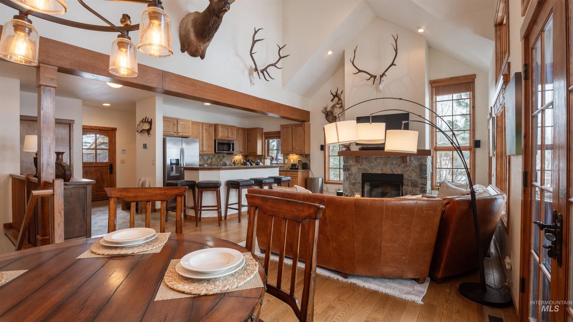 Seize this rare chance to own a true slope-side ski-in/ski-out home in the heart of Tamarack Resort. This 3-bedroom, 3-bath, 1,640 SF townhome delivers unbeatable access with direct skiing to the Tamarack Express Chairlift and commanding, front-row views of The Village at Tamarack—where the energy, events, and après scene come alive. Inside, soaring vaulted ceilings and expansive picture windows drench the main living area in warm southern light while framing breathtaking mountain vistas. This turnkey mountain escape is primed for immediate enjoyment—whether as your personal alpine basecamp or a high-demand investment property. Built for all-season adventure, the home features an attached garage, a private hot tub with open-rail fencing, a covered deck for snowy sunsets, and a lower-level patio made for après-ski gatherings. Stop watching from the sidelines—clip in from your door and claim FIRST CHAIR every powder day.