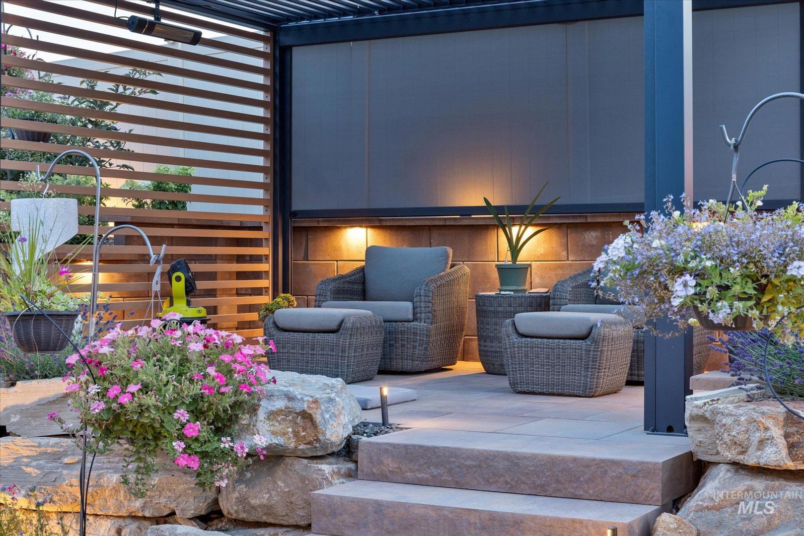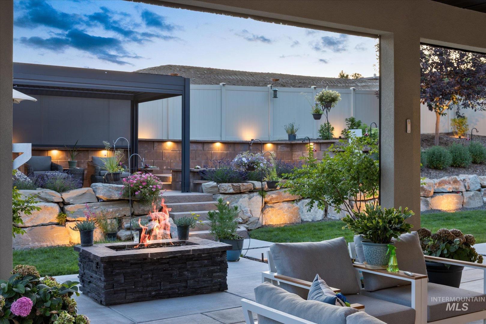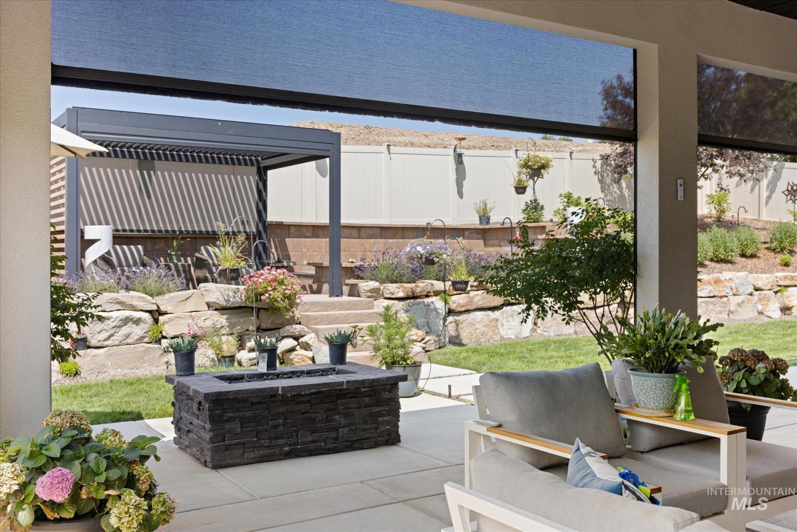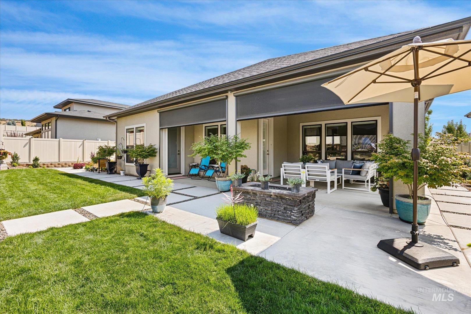 DON`T MISS OUT on this beautifully upgraded home in the coveted neighborhood Colina Vista in Star Idaho! This property is loaded with premium features inside and out. Inside, the home features a full home theater system with surround sound and built-in speakers throughout, including outdoor audio. The kitchen is equipped with high-end appliances, and the home includes motorized window coverings, custom storage throughout, and screened security doors. Upstairs can be used as a jr suite with it`s own bathroom and closet. Outside includes a pergola and back patio with motorized screens, gas fire pit, and permanent exterior lighting (EverLights). Enjoy low-maintenance outdoor living with concrete surrounds, drip irrigation to all planters, and extensive hardscape throughout. Energy-efficient upgrades include fully paid-off solar panels with battery backup, high-efficiency furnace, tankless water heater, whole-home humidifier, water softener, and water filtration system. Additional features include heated bathroom floors, hardwired landscape lighting, epoxy garage floors, built-in garage storage, garage heater, ceiling fans, dog wash station, and EV charger. The spacious 4-car garage and thoughtful upgrades throughout make this home truly move-in ready and better than new.