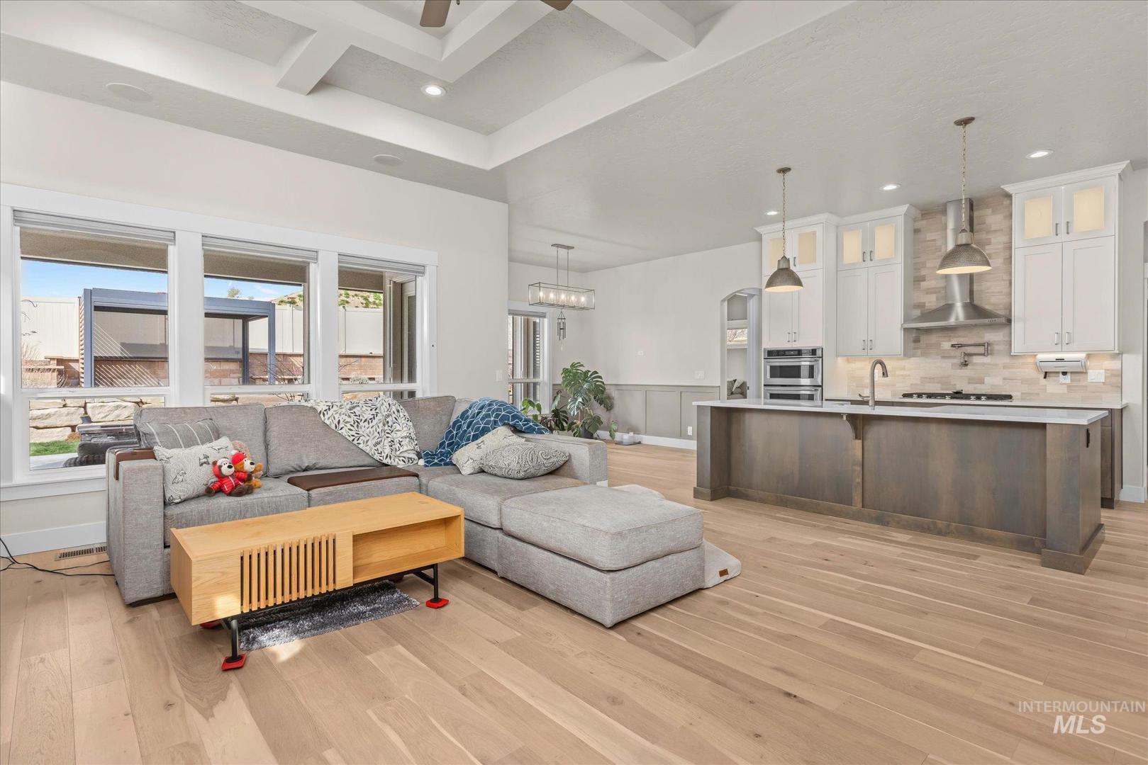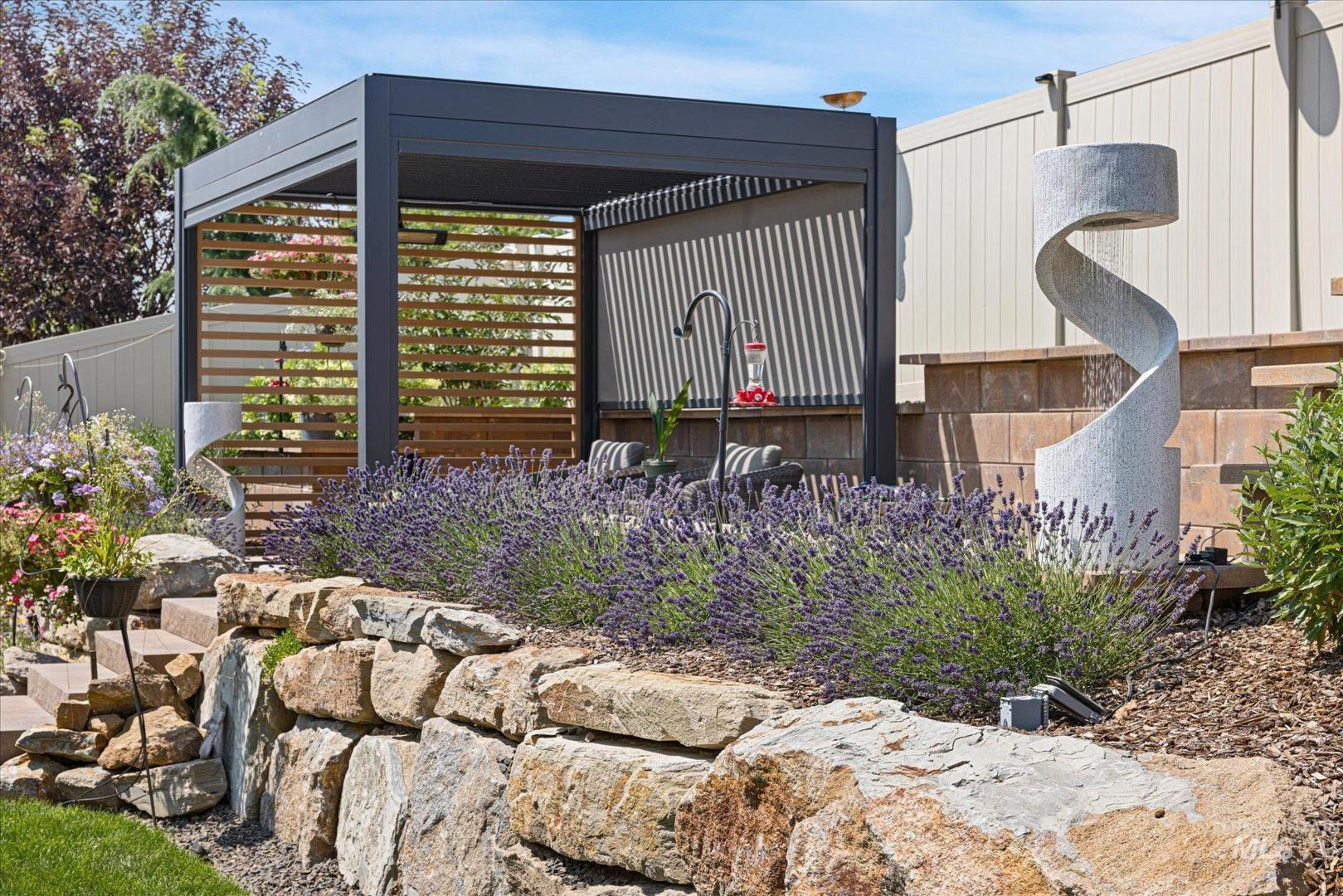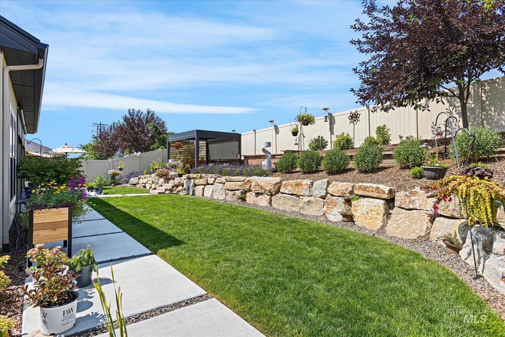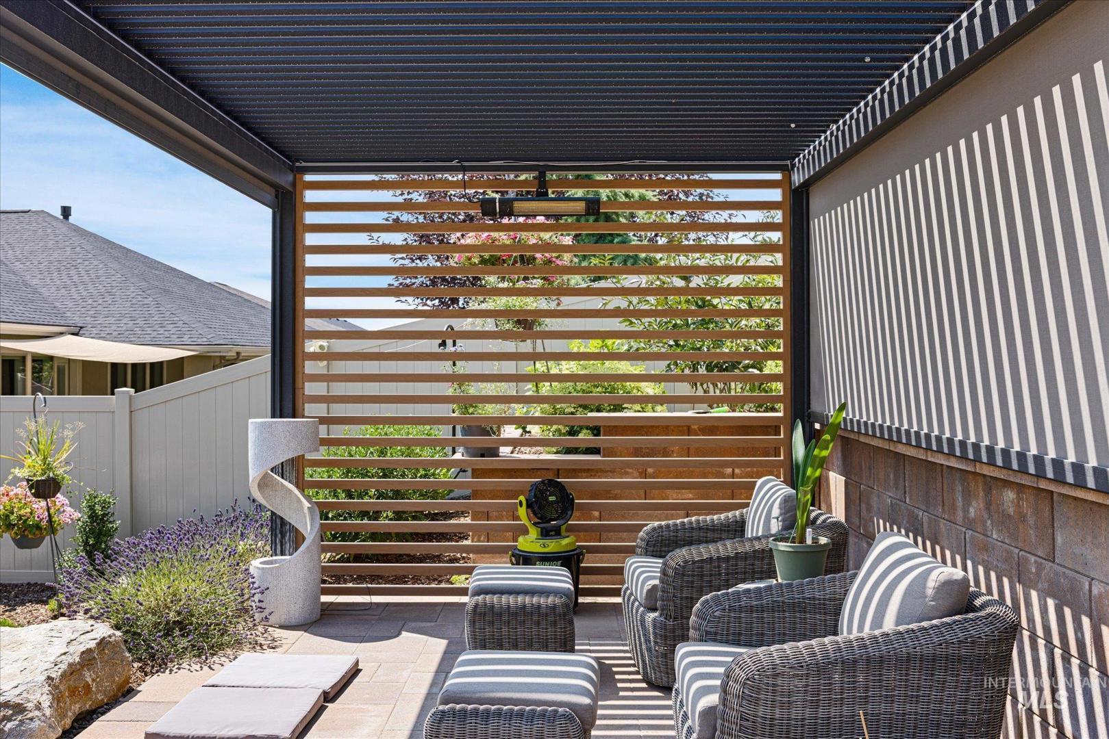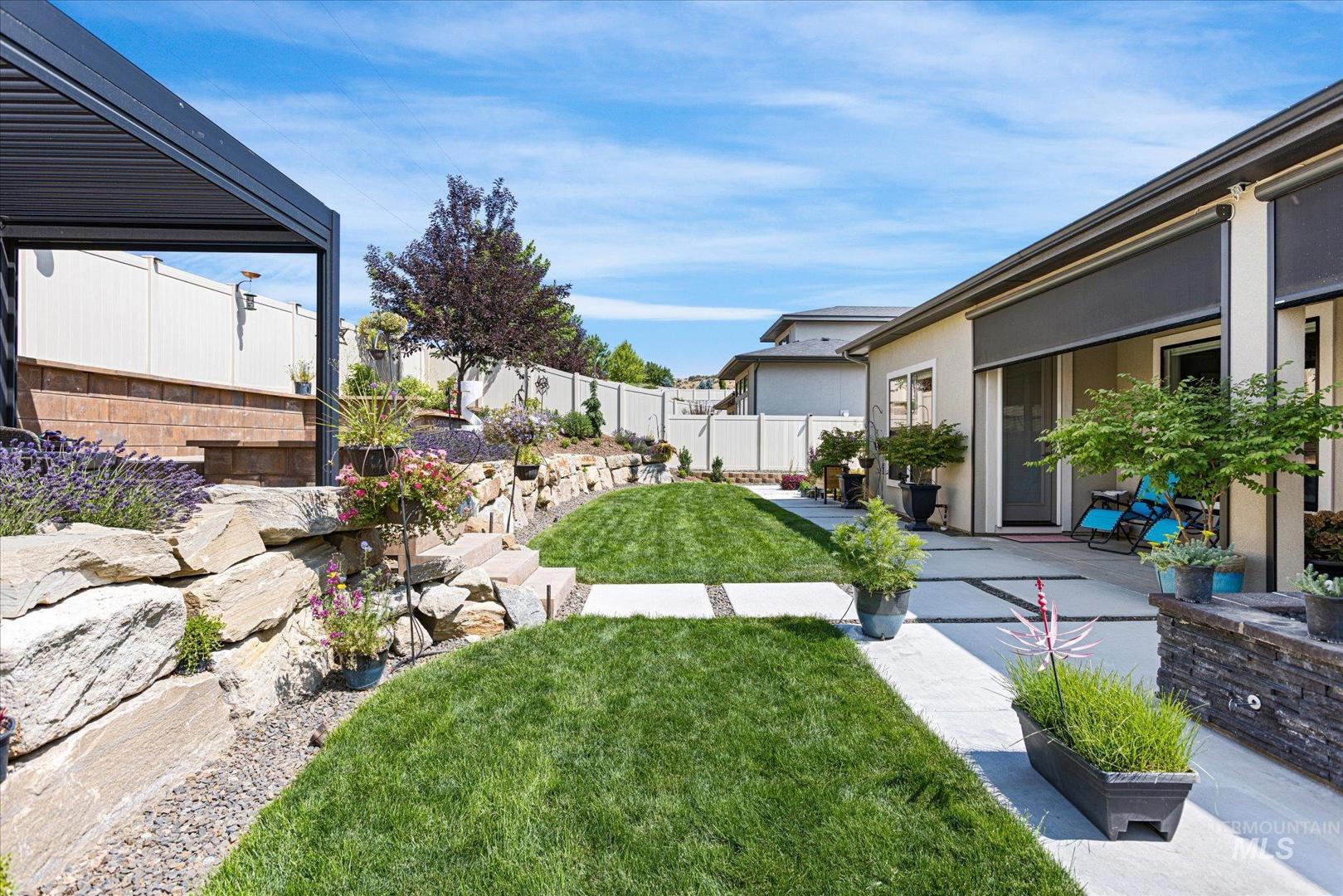 DON`T MISS OUT on this beautifully upgraded home in the coveted neighborhood Colina Vista in Star Idaho! This property is loaded with premium features inside and out. Inside, the home features a full home theater system with surround sound and built-in speakers throughout, including outdoor audio. The kitchen is equipped with high-end appliances, and the home includes motorized window coverings, custom storage throughout, and screened security doors. Upstairs can be used as a jr suite with it`s own bathroom and closet. Outside includes a pergola and back patio with motorized screens, gas fire pit, and permanent exterior lighting (EverLights). Enjoy low-maintenance outdoor living with concrete surrounds, drip irrigation to all planters, and extensive hardscape throughout. Energy-efficient upgrades include fully paid-off solar panels with battery backup, high-efficiency furnace, tankless water heater, whole-home humidifier, water softener, and water filtration system. Additional features include heated bathroom floors, hardwired landscape lighting, epoxy garage floors, built-in garage storage, garage heater, ceiling fans, dog wash station, and EV charger. The spacious 4-car garage and thoughtful upgrades throughout make this home truly move-in ready and better than new.
