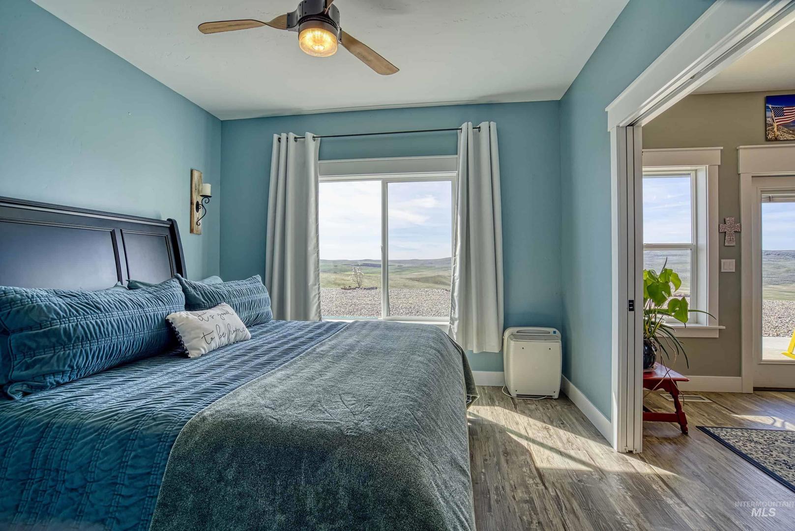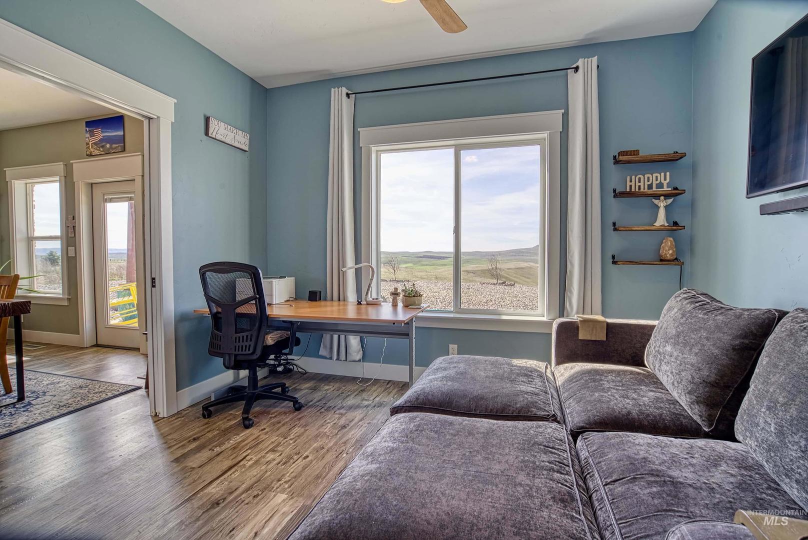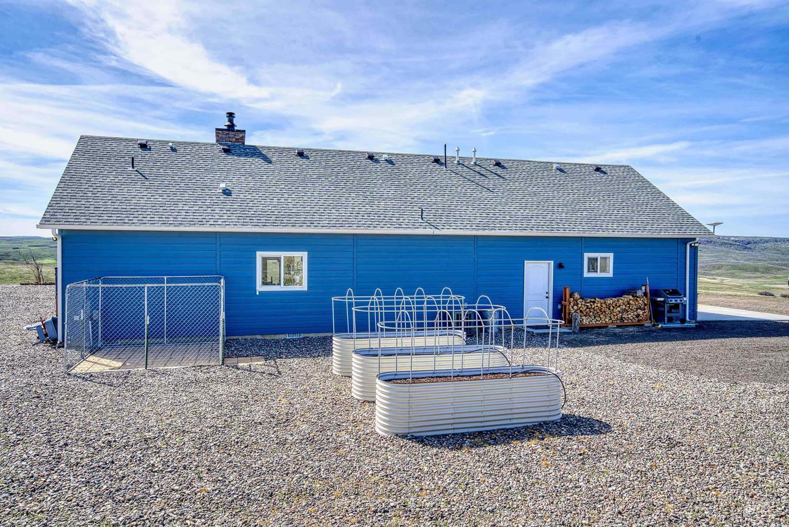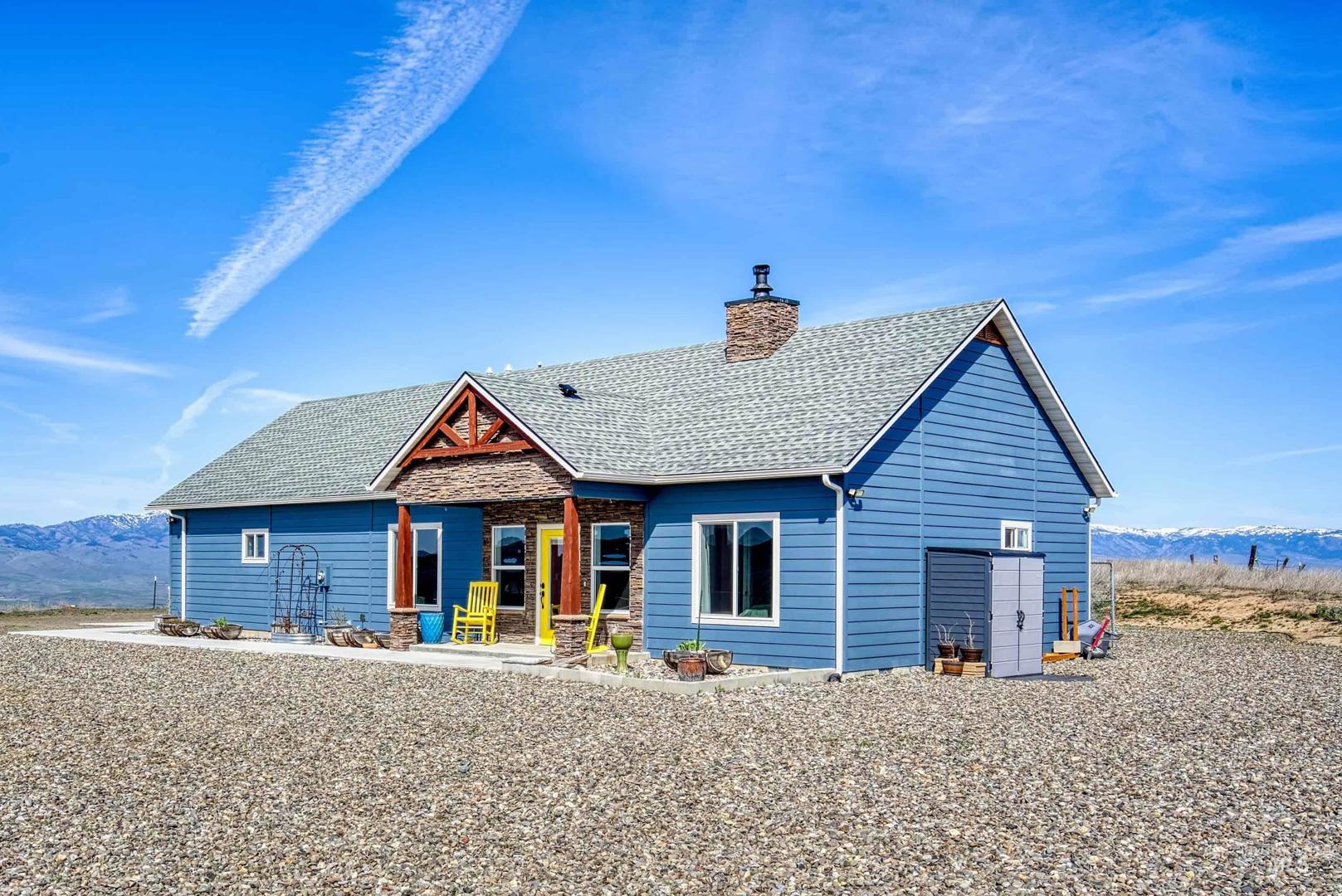 Turn-Key Property with the privacy and tranquility you crave! Built in 2022, this thoughtfully designed home has 2 bedrooms, 2 bathrooms, and 988 square feet of custom features. Located on 100 acres of rolling hills/rangeland grazing ground just 10 minutes from Midvale. Inside find quartz countertops, stainless steel appliances, and gas range with 2 ovens. Custom cabinetry with lazy susan, pull-out drawers, soft close cabinet doors and drawers, spice rack, paper towel dispenser, kick drawers, and adjustable shelving. Plus walk-in pantry. Primary bedroom/bathroom ensuite with walk-in tiled shower with bench seat, dual vanities, and walk-in closet. Soaking tub in second bathroom for spa-like relaxation. And don`t forget the INFRARED SAUNA in the garage! Fully finished garage with custom flooring. Need more space? Just add on to the existing home or build a detached garage/shop. Private well produces 12 gallons per minute, providing ample water to the home, grounds, and stock tank for 50+ head of cattle. Includes RV septic dump with 30-amp RV hookup. Perimeter fencing around entire property, plus separate fencing and gate around the home. Screened in gazebo with power in conduit to corner for future hot tub. NO CCRs, NO HOA, NO easements! Only 30 minutes to Weiser for groceries, hardware store. Less than an hour to Ontario for sales tax free shopping -Walmart, Home Depot, D &B, etc.
