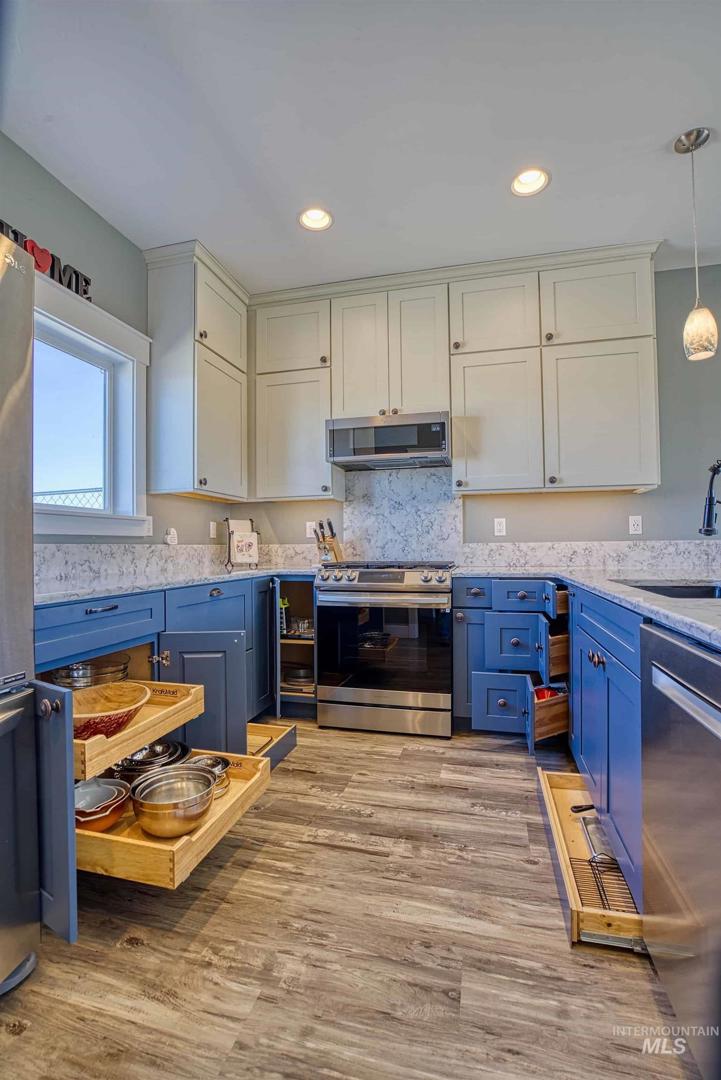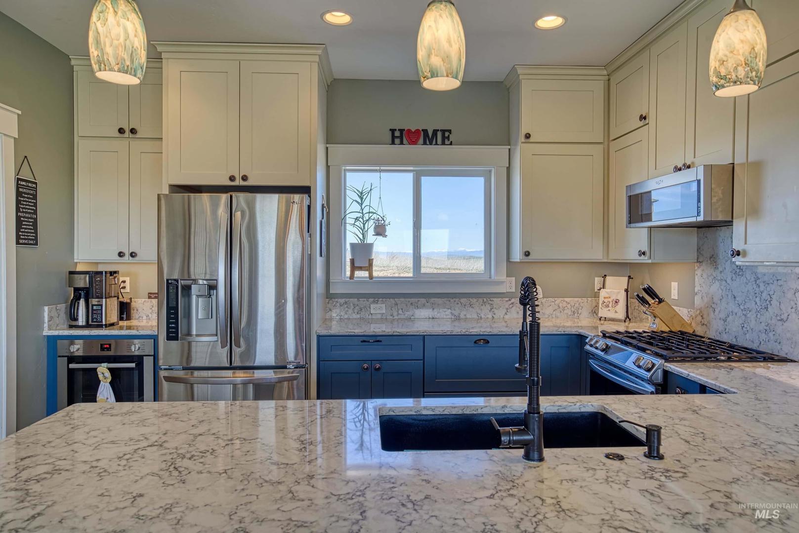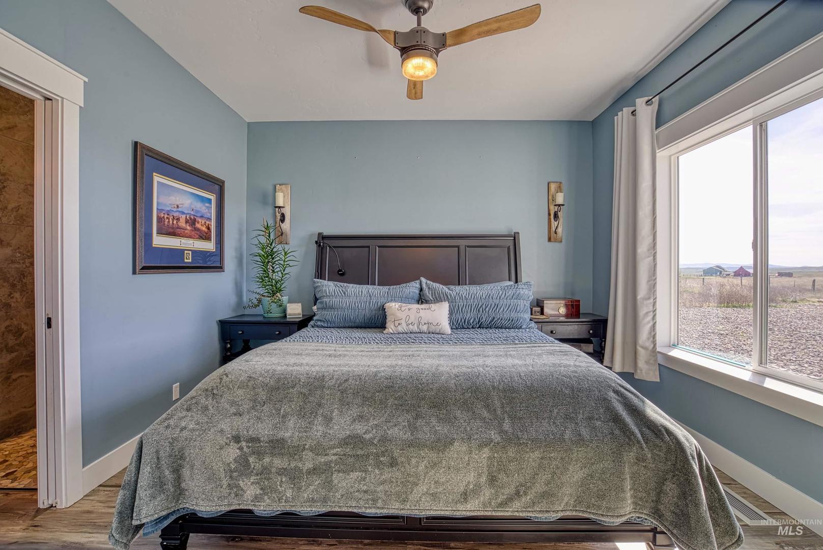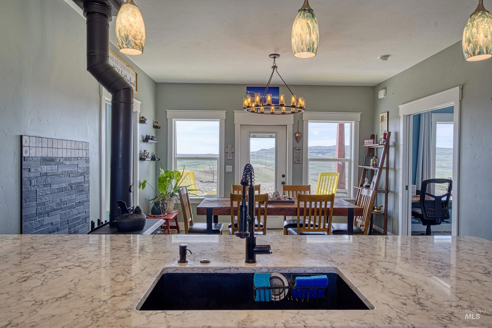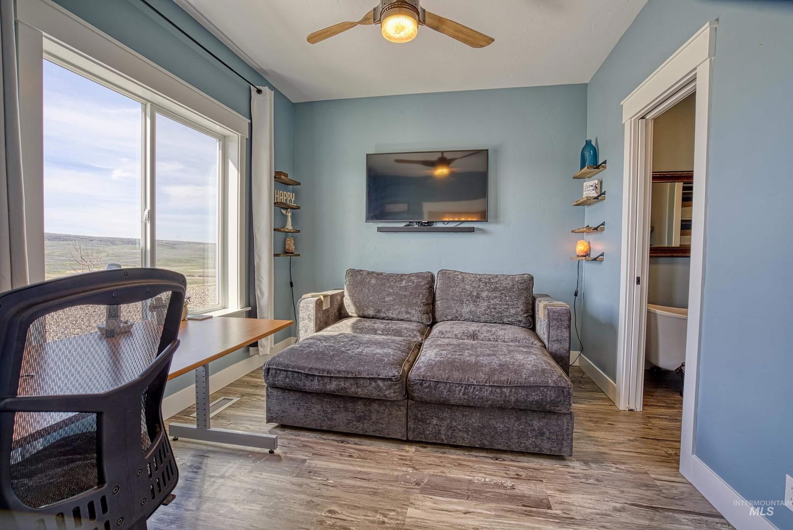 Turn-Key Property with the privacy and tranquility you crave! Built in 2022, this thoughtfully designed home has 2 bedrooms, 2 bathrooms, and 988 square feet of custom features. Located on 100 acres of rolling hills/rangeland grazing ground just 10 minutes from Midvale. Inside find quartz countertops, stainless steel appliances, and gas range with 2 ovens. Custom cabinetry with lazy susan, pull-out drawers, soft close cabinet doors and drawers, spice rack, paper towel dispenser, kick drawers, and adjustable shelving. Plus walk-in pantry. Primary bedroom/bathroom ensuite with walk-in tiled shower with bench seat, dual vanities, and walk-in closet. Soaking tub in second bathroom for spa-like relaxation. And don`t forget the INFRARED SAUNA in the garage! Fully finished garage with custom flooring. Need more space? Just add on to the existing home or build a detached garage/shop. Private well produces 12 gallons per minute, providing ample water to the home, grounds, and stock tank for 50+ head of cattle. Includes RV septic dump with 30-amp RV hookup. Perimeter fencing around entire property, plus separate fencing and gate around the home. Screened in gazebo with power in conduit to corner for future hot tub. NO CCRs, NO HOA, NO easements! Only 30 minutes to Weiser for groceries, hardware store. Less than an hour to Ontario for sales tax free shopping -Walmart, Home Depot, D &B, etc.