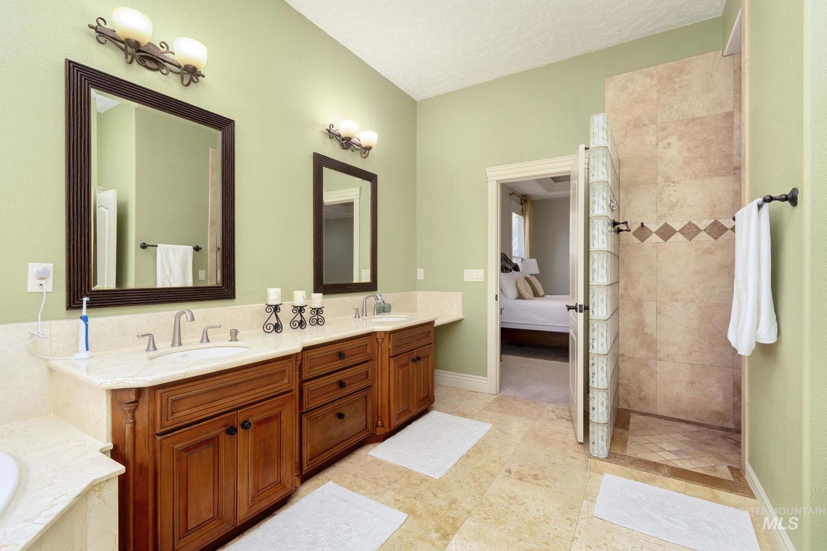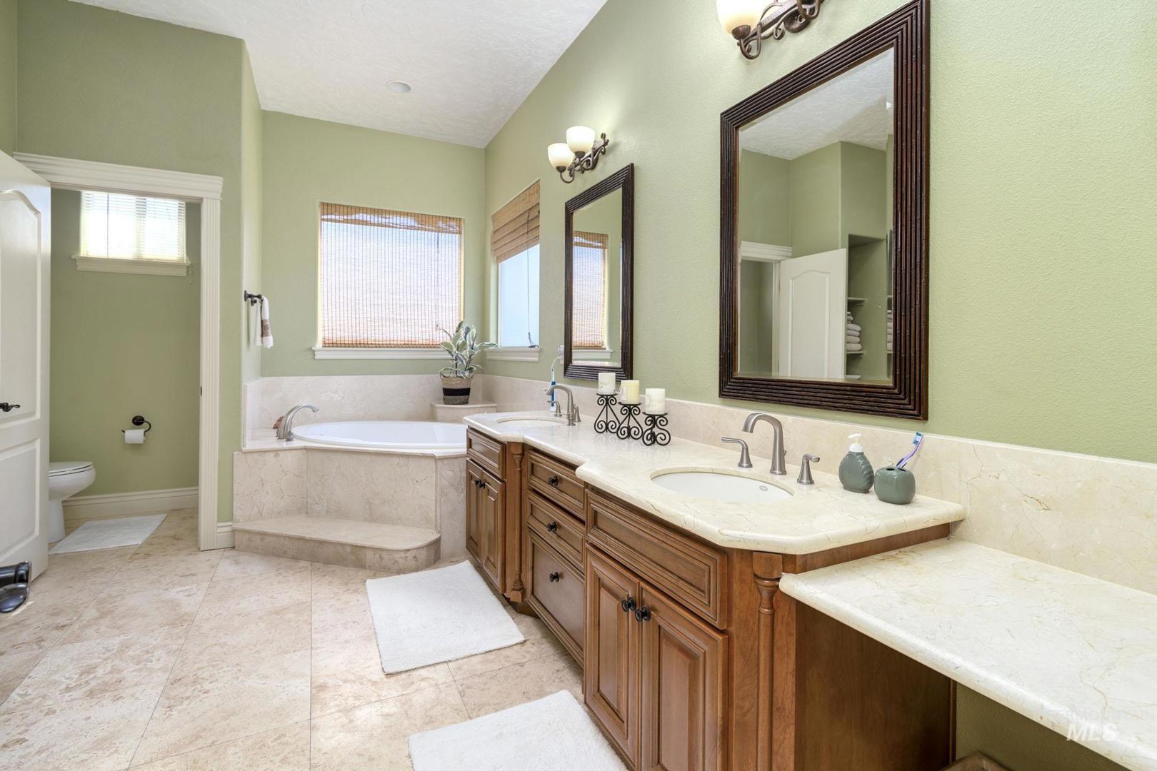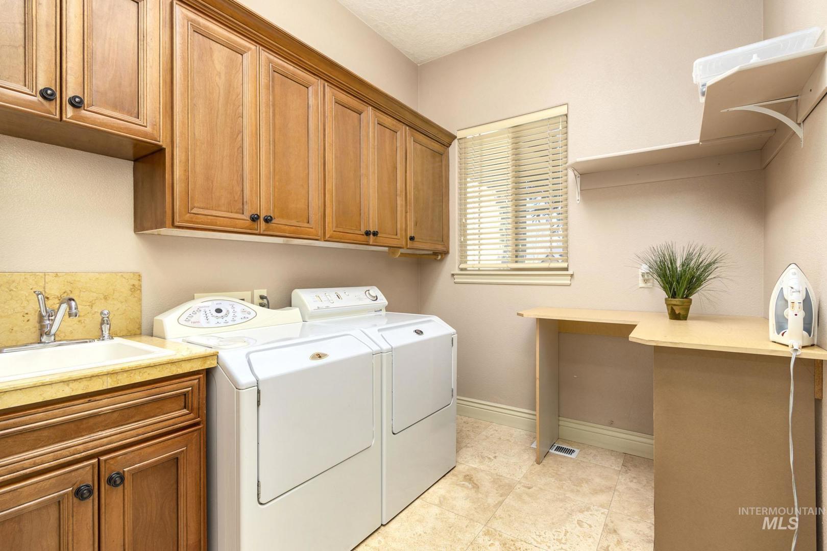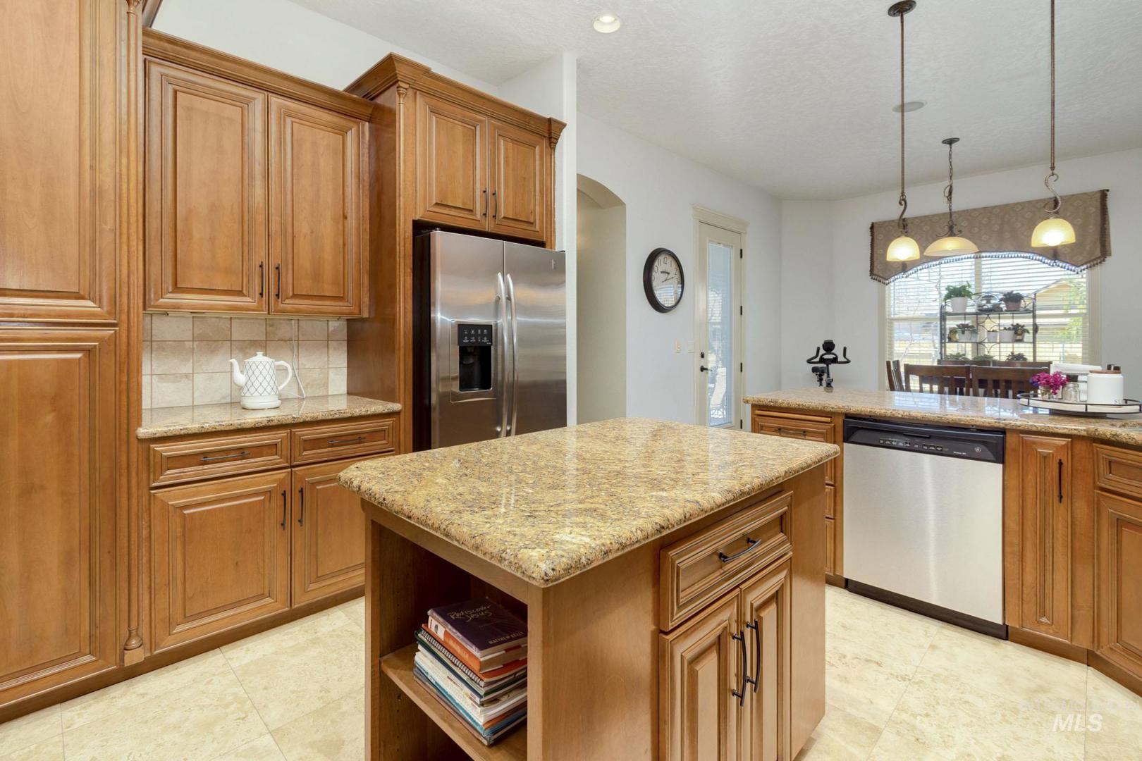 Beautiful 4,372 sq ft custom home located in a highly desirable area at the intersection of Boise, Meridian, and Eagle. Tucked away on a quiet cul-de-sac, this home offers the perfect blend of comfort and functionality. The main level features a spacious layout with an inviting living room, gourmet kitchen, and cozy dining area—ideal for everyday living and entertaining. The property includes a pull-through 3-car garage with an RV bay, providing ample space for vehicles and storage. The basement is thoughtfully designed as a private in-law suite with high ceilings, a separate living area, full kitchen, 2 bedrooms, and 1 bathroom—perfect for guests or multi-generational living. Enjoy the beautifully landscaped backyard featuring raised garden beds and mature grapevines, creating a peaceful outdoor retreat. Located in a quiet, sought-after neighborhood, this home offers space, versatility, and a prime location close to everything. Don’t miss this exceptional opportunity!