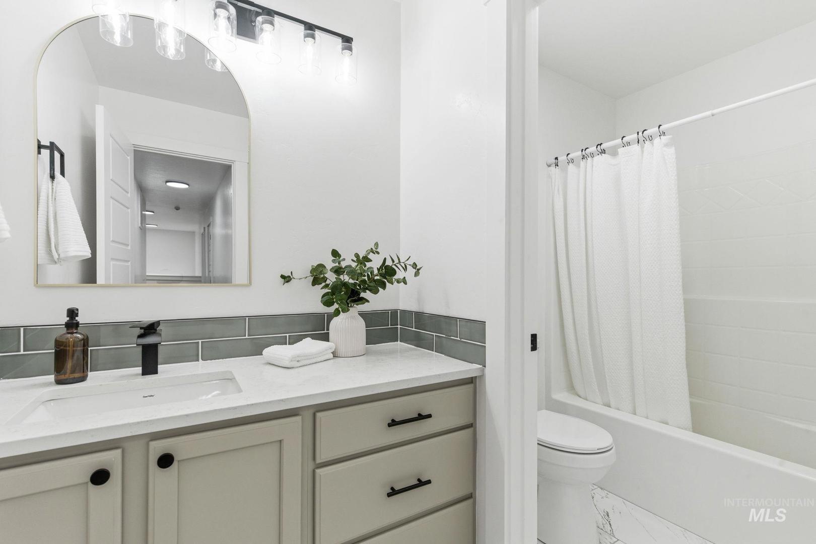 Beautifully updated home in a prime Northwest Meridian location, just steps from the community pool, Willow Creek Elementary, and minutes to shopping including Costco, restaurants, and everyday conveniences. This home offers exceptional curb appeal with fresh exterior paint, a roof in great condition (see roof certification in document tab with approximately 10 years of life remaining), and a welcoming presence from the moment you arrive. The backyard is a true retreat, featuring a spacious covered patio and mature shade, perfect for relaxing or entertaining. Inside, you’ll find a functional and versatile layout with a main-level bedroom and bathroom, ideal for guests or a home office. The home has been thoughtfully updated with new flooring, carpet, countertops, backsplash, and appliances, creating a clean and modern feel throughout. The fully finished 3-car tandem garage is a standout feature, complete with drywall, painted walls and ceilings, epoxy floors, and ample shelving and storage racks. Upstairs offers four additional bedrooms, including a spacious primary suite with vaulted ceilings, a beautifully updated en-suite bathroom featuring a stunning walk-in shower and separate soaker tub. The remaining bedrooms are generously sized and feature new carpet and fresh paint, making this home truly move-in ready.