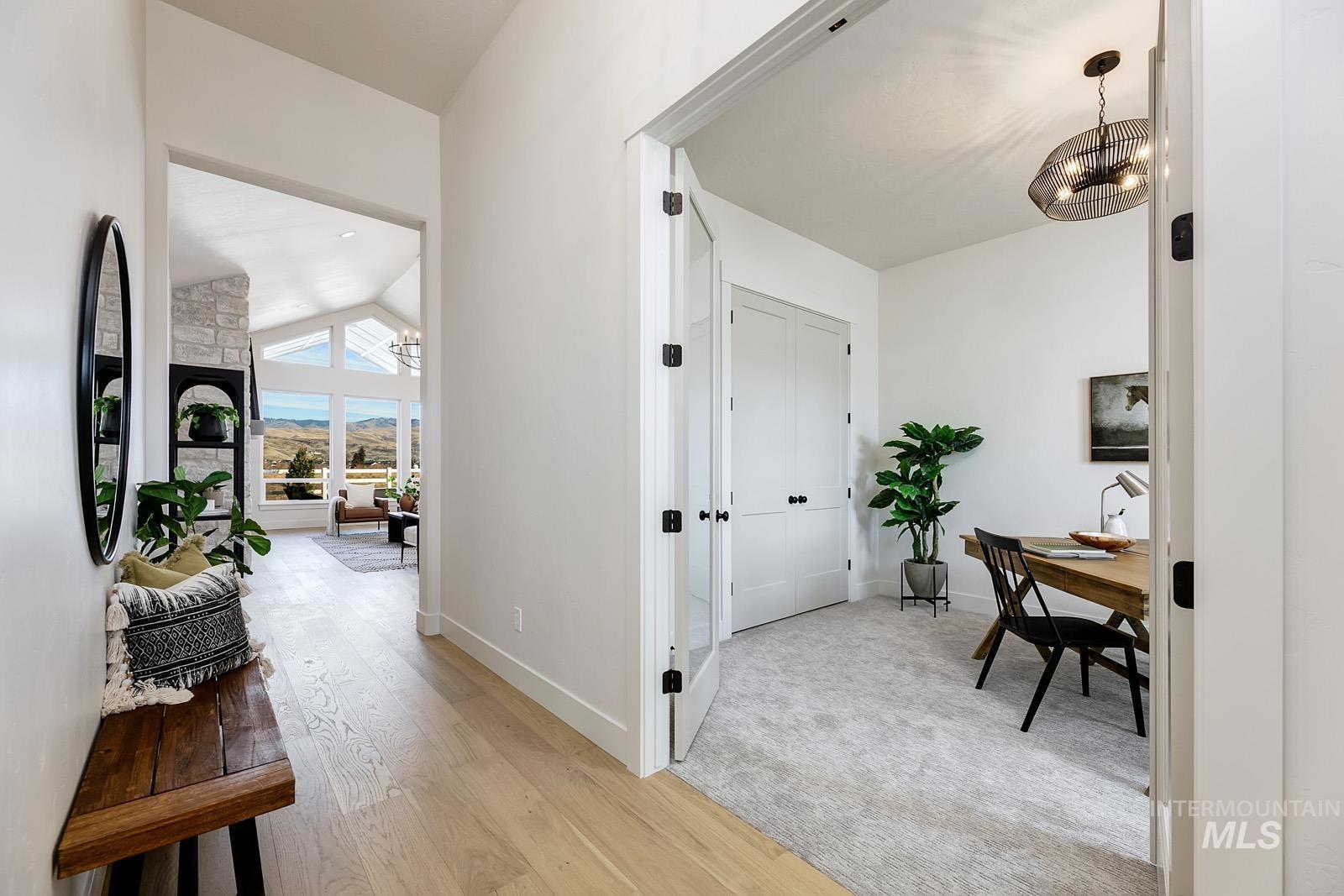 Stunning single-level Sagewood home in the heart of Sky Mesa. Step inside a long entryway that leads to a spacious great room, where a wall of windows fills the space with natural light. The open layout flows into the dining area and chef’s kitchen, complete with ample counter space, handsome cabinetry, and a walk-in pantry. Just off the main living area, the covered patio offers the perfect spot to enjoy Idaho’s beautiful weather. Down the hall, the expansive primary suite features oversized windows and a luxurious bath with a soaker tub and generous walk-in closet. An office completes the home and can easily serve as a fourth bedroom. This is your last opportunity to own a home in Sky Mesa, our signature community in Meridian, Idaho, featuring modern architecture, tree-lined walking paths, two infinity-edge pools, and green spaces, all within a short drive to exceptional schools, dining, and everyday conveniences. Home is To Be Built. Photos similar.