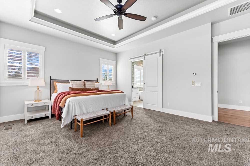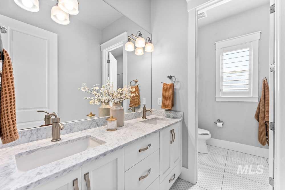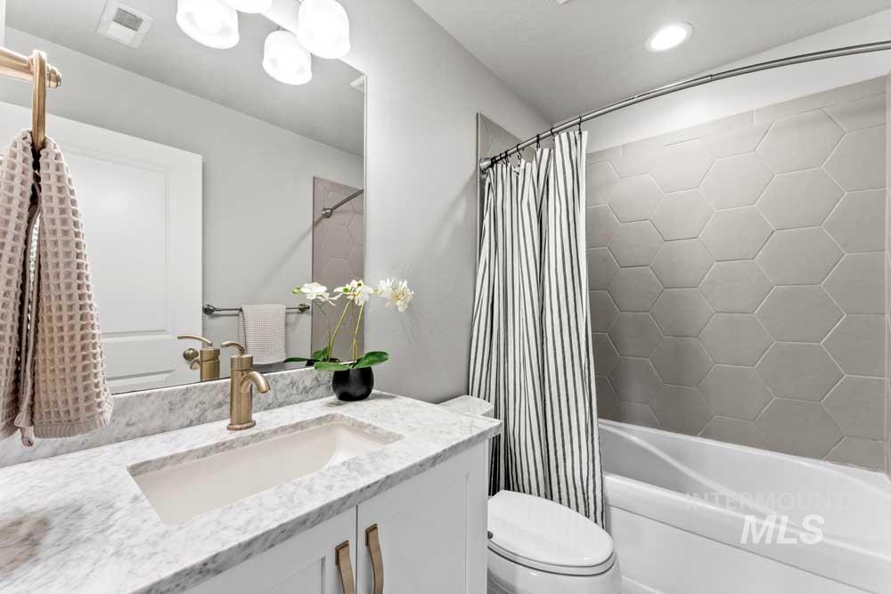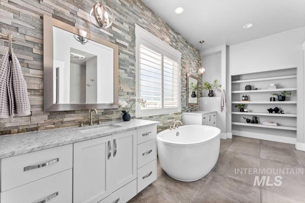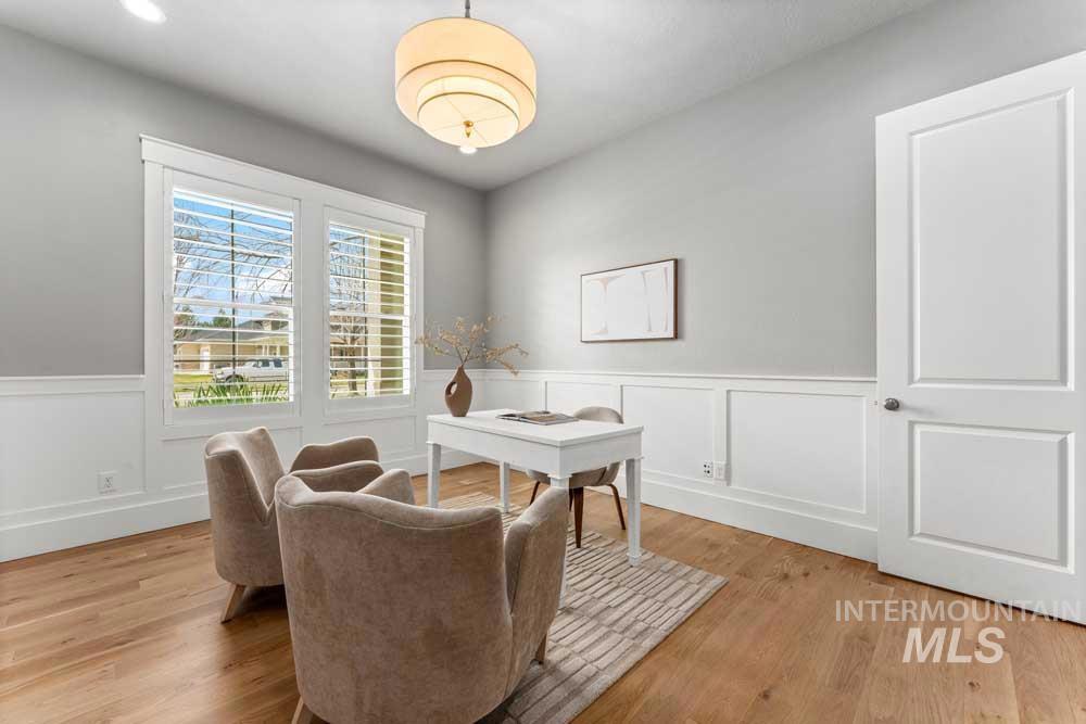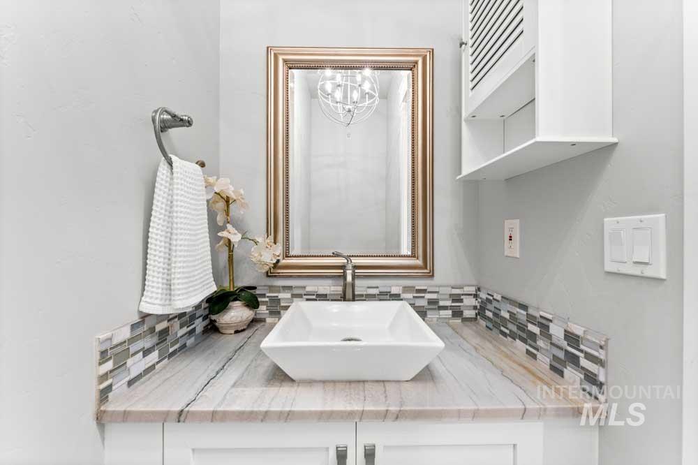 Stunning single-level home on a sprawling 0.87-acre corner lot in the exclusive Lionsgate community—an intimate enclave of just 25 estate-sized homes. Recent updates include new AC, furnace, water heater, pool equipment, and refinished hardwood floors. Designed for luxury living and effortless entertaining, the manicured grounds offer a true backyard oasis with a resort-style pool and hot tub, built-in firepit, in-ground trampoline, and sports court or RV pad. Inside, the open-concept great room features a striking stacked-stone fireplace and expansive sliding doors that seamlessly blend indoor and outdoor living. The gourmet kitchen impresses with quartz countertops, ceiling-height custom cabinetry, premium stainless steel appliances, and a spacious walk-in pantry. The private primary suite occupies its own wing with tray ceilings and a spa-inspired ensuite, complete with dual vanities, a freestanding soaking tub, tiled walk-in shower, and an expansive dressing room. A main-level office adds convenience, while an upper bonus room provides flexible space for guests or recreation. Ideally located just minutes from downtown Eagle, premier golf courses, shopping, and dining!