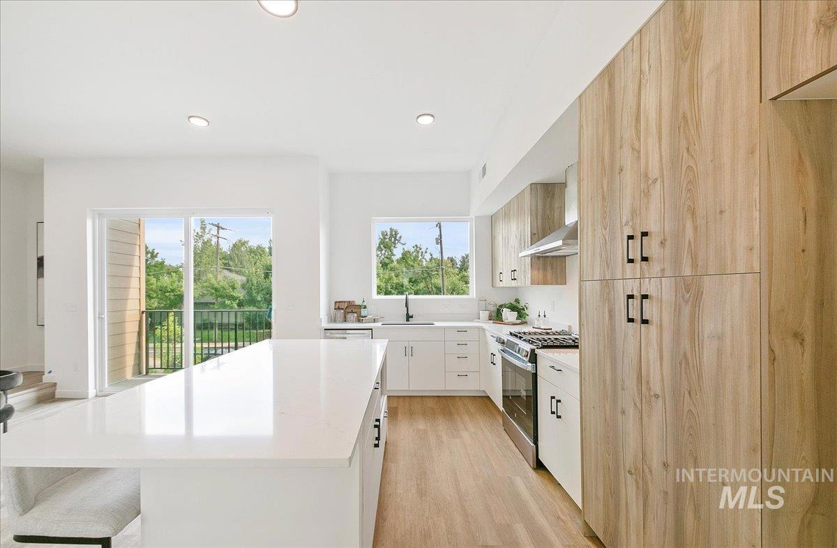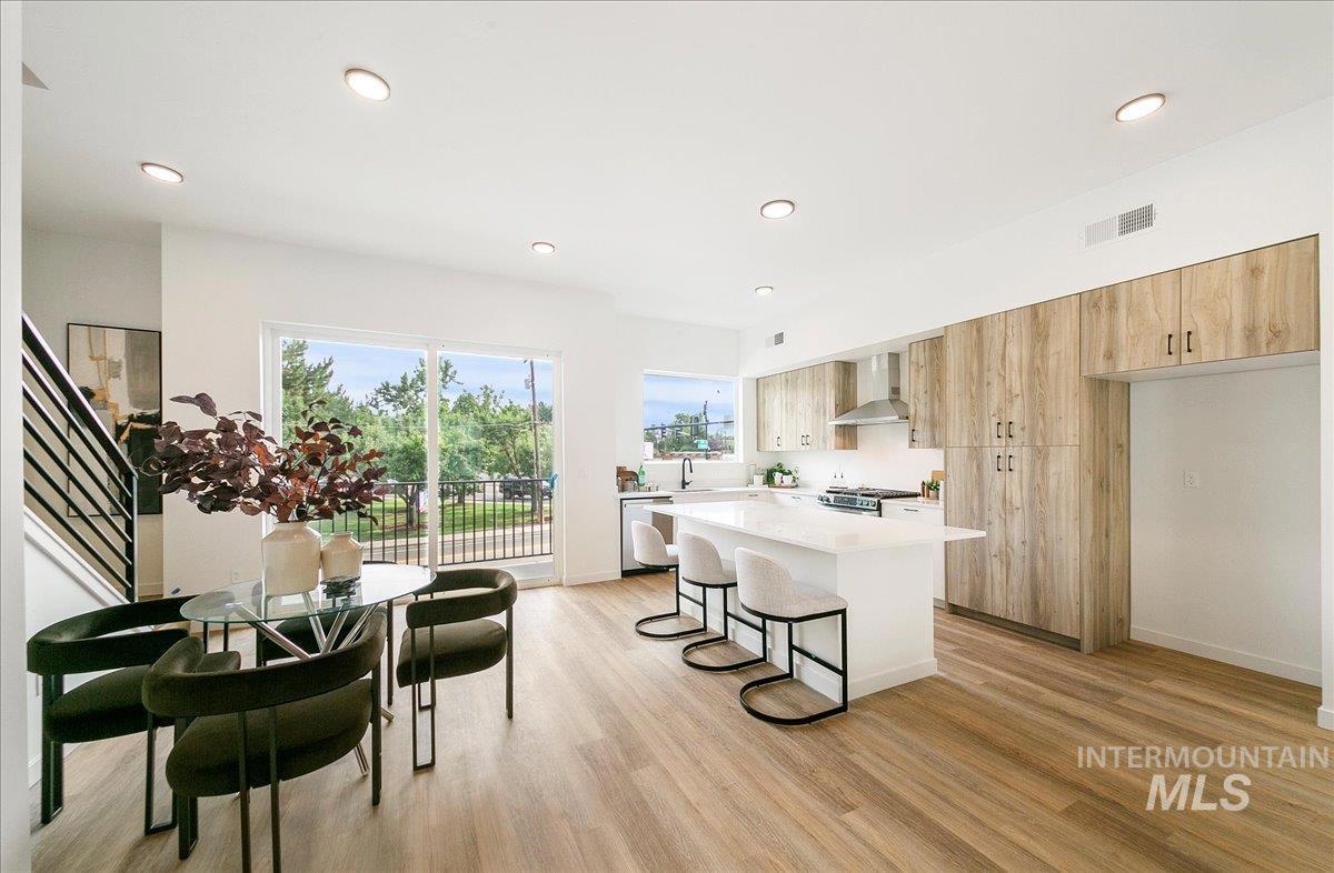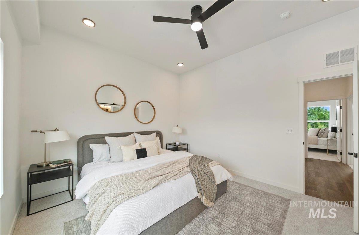Experience elevated new construction living just minutes from downtown Boise, with easy access to parks, trail systems, and the Greenbelt. Boise23 delivers a rare blend of modern architecture and low-maintenance convenience in thoughtfully designed, multi-level townhomes. Expansive windows on every level flood the home with natural light and showcase open neighborhood views, creating a bright and airy feel throughout. Enjoy seamless indoor-outdoor living with a fenced front yard perfect for pets or gardening, a private patio ideal for entertaining, and a balcony that extends your living space year-round. Inside, the versatile layout offers a main-level bedroom or office—perfect for remote work or guests. The second level features an open-concept design with a stylish kitchen, generous dining area, and a light-filled great room designed for connection and comfort. Upstairs, retreat to a spa-inspired primary suite featuring a freestanding soaking tub, curated designer finishes, and a spacious walk-in closet. A well-appointed guest bedroom completes the upper level. An oversized 2-car garage provides exceptional storage and functionality. Combining contemporary design, a highly walkable location, and attractive financing opportunities, this home stands out as a rare find in today’s market.