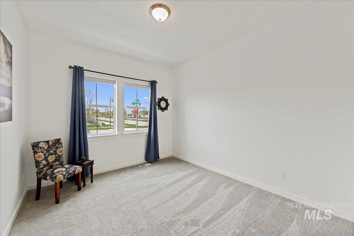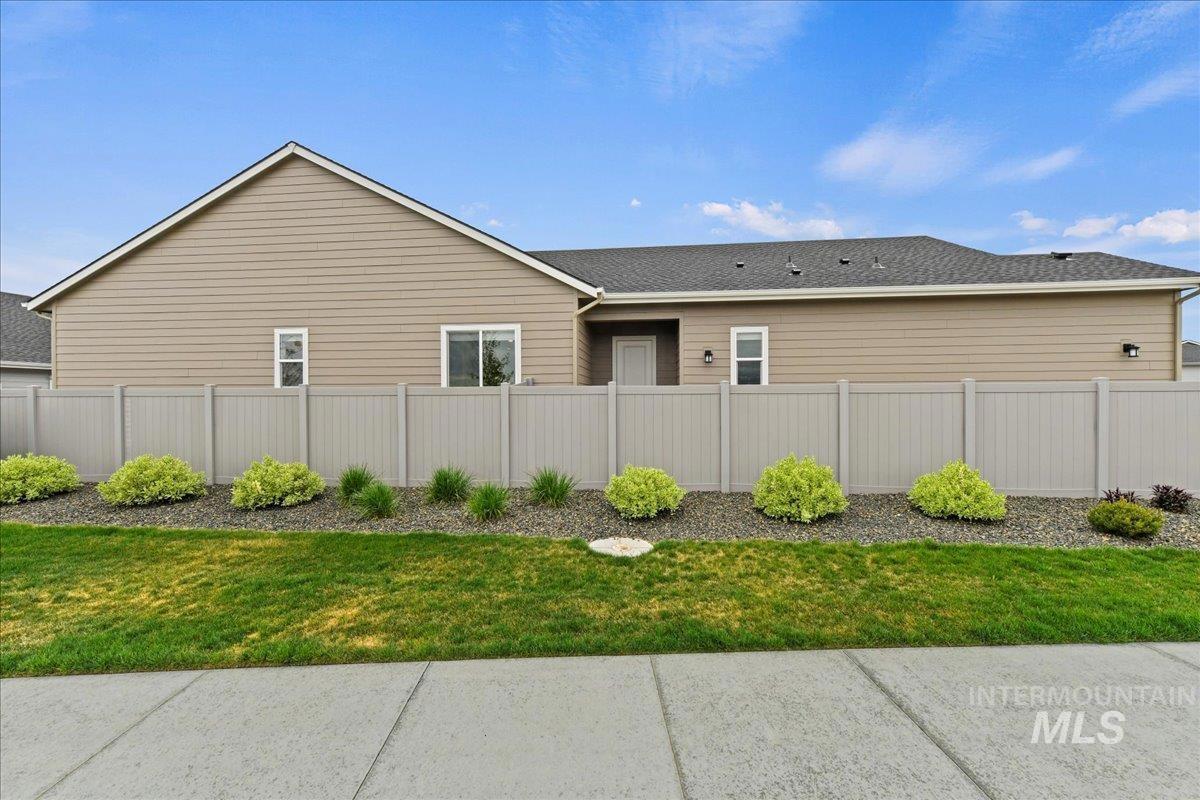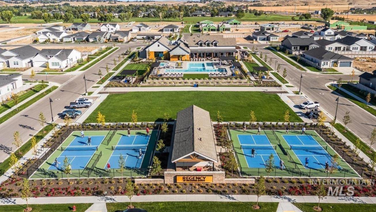 Welcome to this barely lived-in, move-in-ready home in the desirable 55+ community of Regency at Milestone Ranch in Star, Idaho. Located on a premium corner lot with serene mountain views, this elegant residence offers luxury and low-maintenance living. The bright foyer with soaring 10-ft ceilings opens to an expansive open-concept great room and gourmet kitchen featuring extra-large wood-stained cabinets with pull-out drawers, a large center island, abundant counter space, a new stainless steel refrigerator, and a walk-in pantry. The secluded primary suite includes a spa-inspired bathroom with dual vanities, luxe tiled shower with built-in bench, private toilet room, and generous walk-in closet. A secondary bedroom, second full bath, and versatile den complete the thoughtful layout. Outside, enjoy fully landscaped grounds with vibrant new plantings and designer blinds. The HOA handles front yard maintenance and snow removal. Regency at Milestone Ranch features resort-style amenities including a clubhouse with fitness center, year-round indoor pool, outdoor resort-style pool, pickleball courts, dog park, and a full-time lifestyle director who plans exercise classes, concerts, food trucks, and social events. Come experience the vibrant, active lifestyle this community has to offer. Schedule your tour today!
