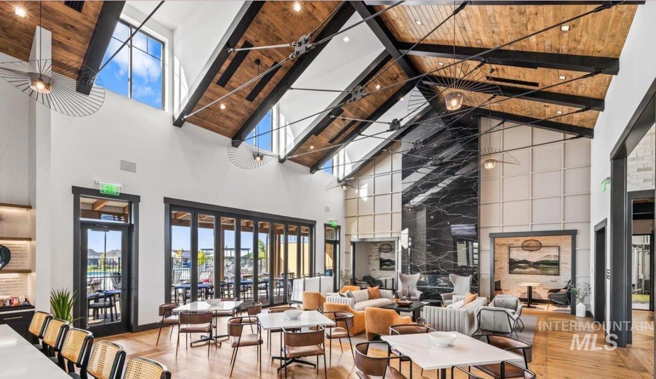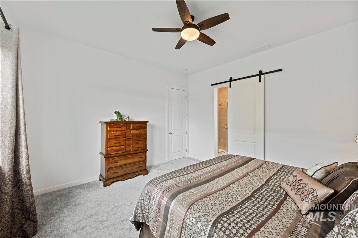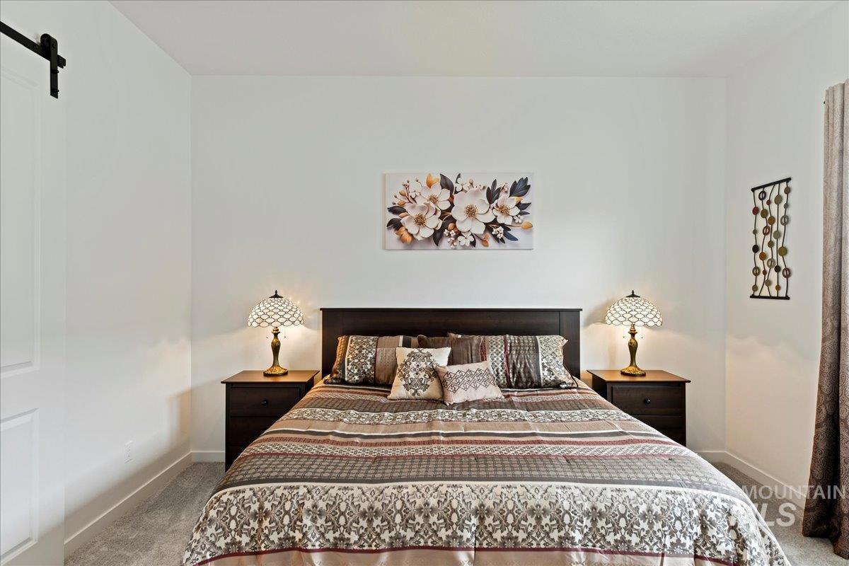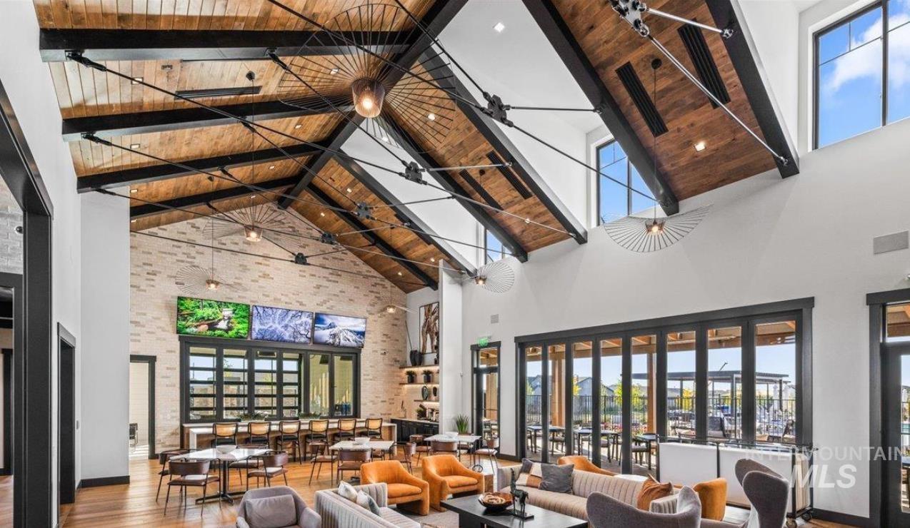 Welcome to this barely lived-in, move-in-ready home in the desirable 55+ community of Regency at Milestone Ranch in Star, Idaho. Located on a premium corner lot with serene mountain views, this elegant residence offers luxury and low-maintenance living. The bright foyer with soaring 10-ft ceilings opens to an expansive open-concept great room and gourmet kitchen featuring extra-large wood-stained cabinets with pull-out drawers, a large center island, abundant counter space, a new stainless steel refrigerator, and a walk-in pantry. The secluded primary suite includes a spa-inspired bathroom with dual vanities, luxe tiled shower with built-in bench, private toilet room, and generous walk-in closet. A secondary bedroom, second full bath, and versatile den complete the thoughtful layout. Outside, enjoy fully landscaped grounds with vibrant new plantings and designer blinds. The HOA handles front yard maintenance and snow removal. Regency at Milestone Ranch features resort-style amenities including a clubhouse with fitness center, year-round indoor pool, outdoor resort-style pool, pickleball courts, dog park, and a full-time lifestyle director who plans exercise classes, concerts, food trucks, and social events. Come experience the vibrant, active lifestyle this community has to offer. Schedule your tour today!
