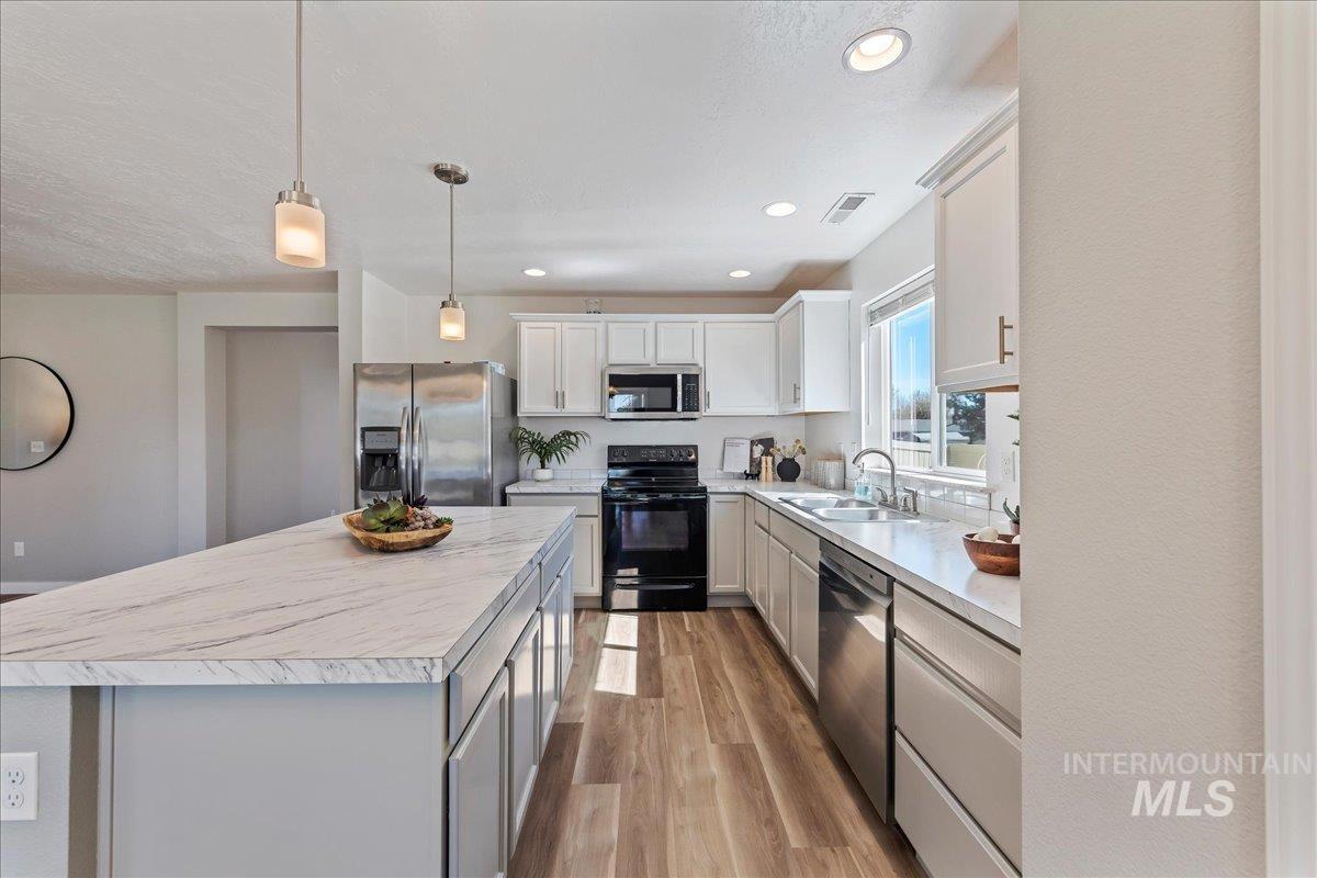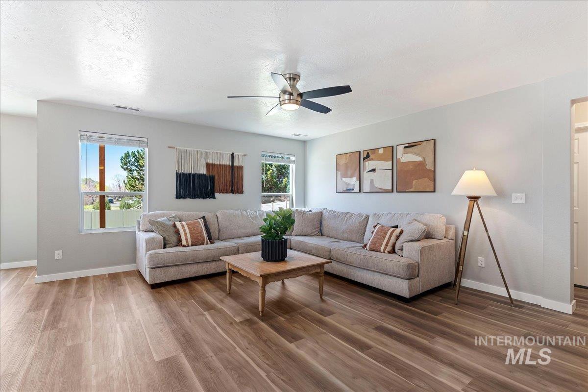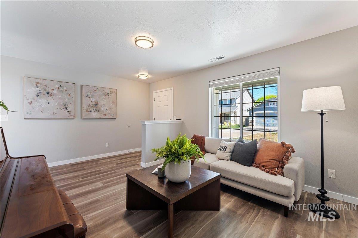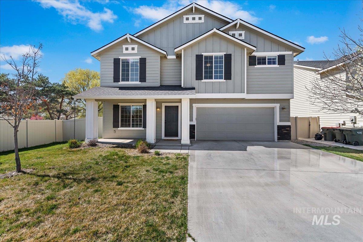 Welcome to this inviting home tucked at the end of a private shared drive, offering a peaceful setting. A charming covered front porch creates a warm first impression as you step inside. The formal living area just off the entry gives that cozy feeling. New luxury vinyl plank flooring and fresh interior paint throughout create a bright and updated feel. The kitchen has been refreshed with newly painted cabinetry, giving the space a clean, modern look. The main level also includes a generously sized den or flex room that could easily serve as a fifth bedroom. Upstairs, you’ll find a spacious bonus area filled with natural light, perfect for a media room, play space, or home office. The primary suite offers comfortable space along with a large walk-in closet. Each additional bedroom is well-sized with plenty of room to spread out. Carpet was replaced just five years ago and remains in excellent condition. An added luxury is a whole home water softener system!