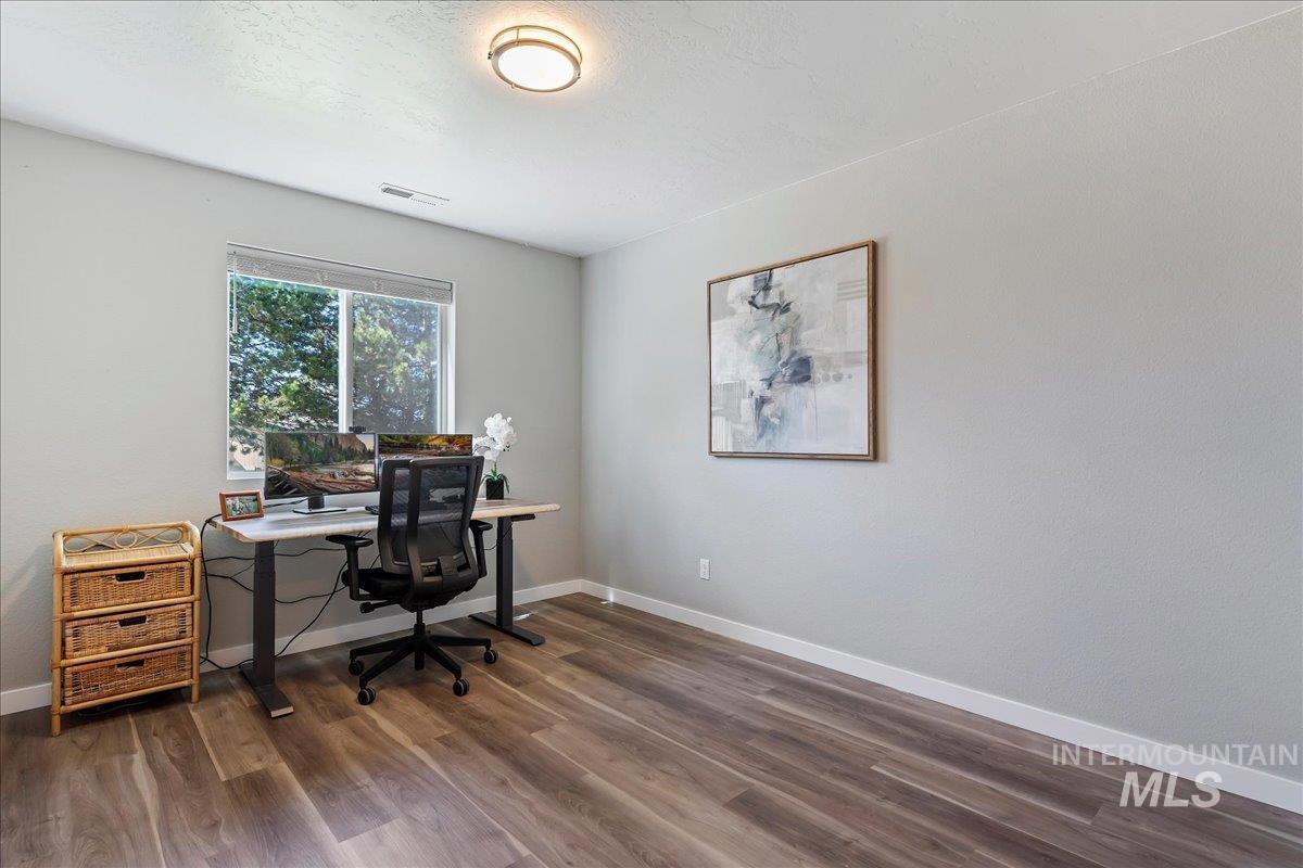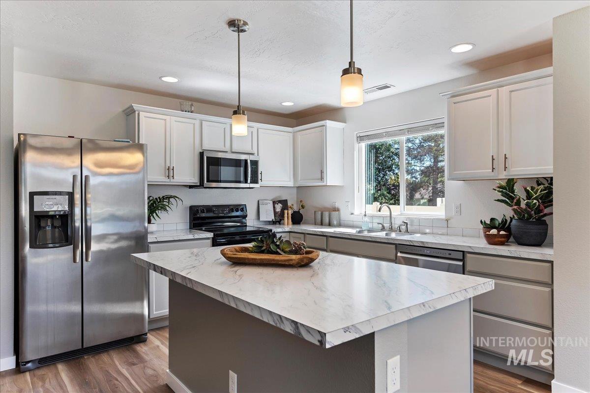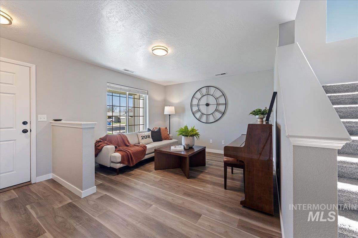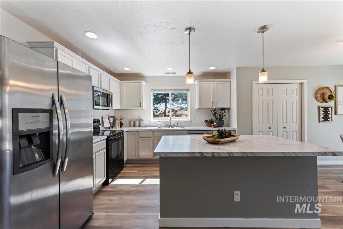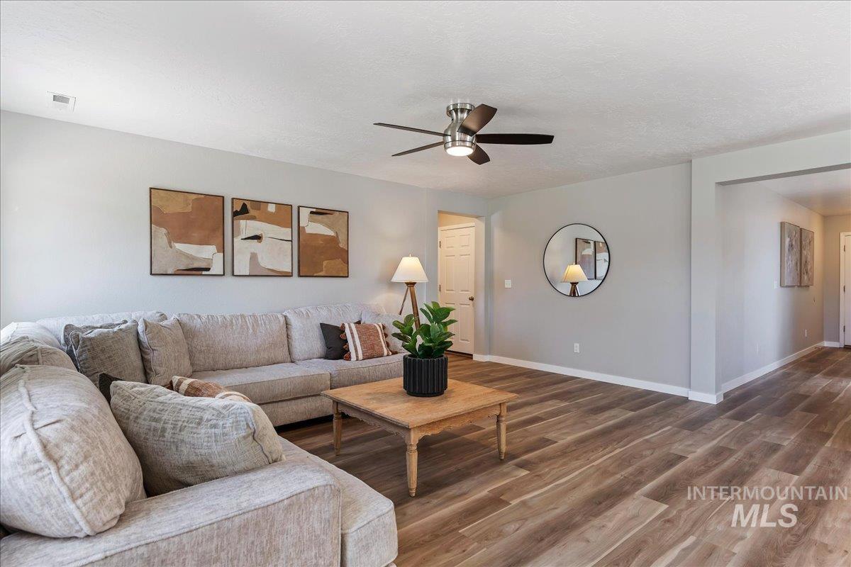 Welcome to this inviting home tucked at the end of a private shared drive, offering a peaceful setting. A charming covered front porch creates a warm first impression as you step inside. The formal living area just off the entry gives that cozy feeling. New luxury vinyl plank flooring and fresh interior paint throughout create a bright and updated feel. The kitchen has been refreshed with newly painted cabinetry, giving the space a clean, modern look. The main level also includes a generously sized den or flex room that could easily serve as a fifth bedroom. Upstairs, you’ll find a spacious bonus area filled with natural light, perfect for a media room, play space, or home office. The primary suite offers comfortable space along with a large walk-in closet. Each additional bedroom is well-sized with plenty of room to spread out. Carpet was replaced just five years ago and remains in excellent condition. An added luxury is a whole home water softener system!