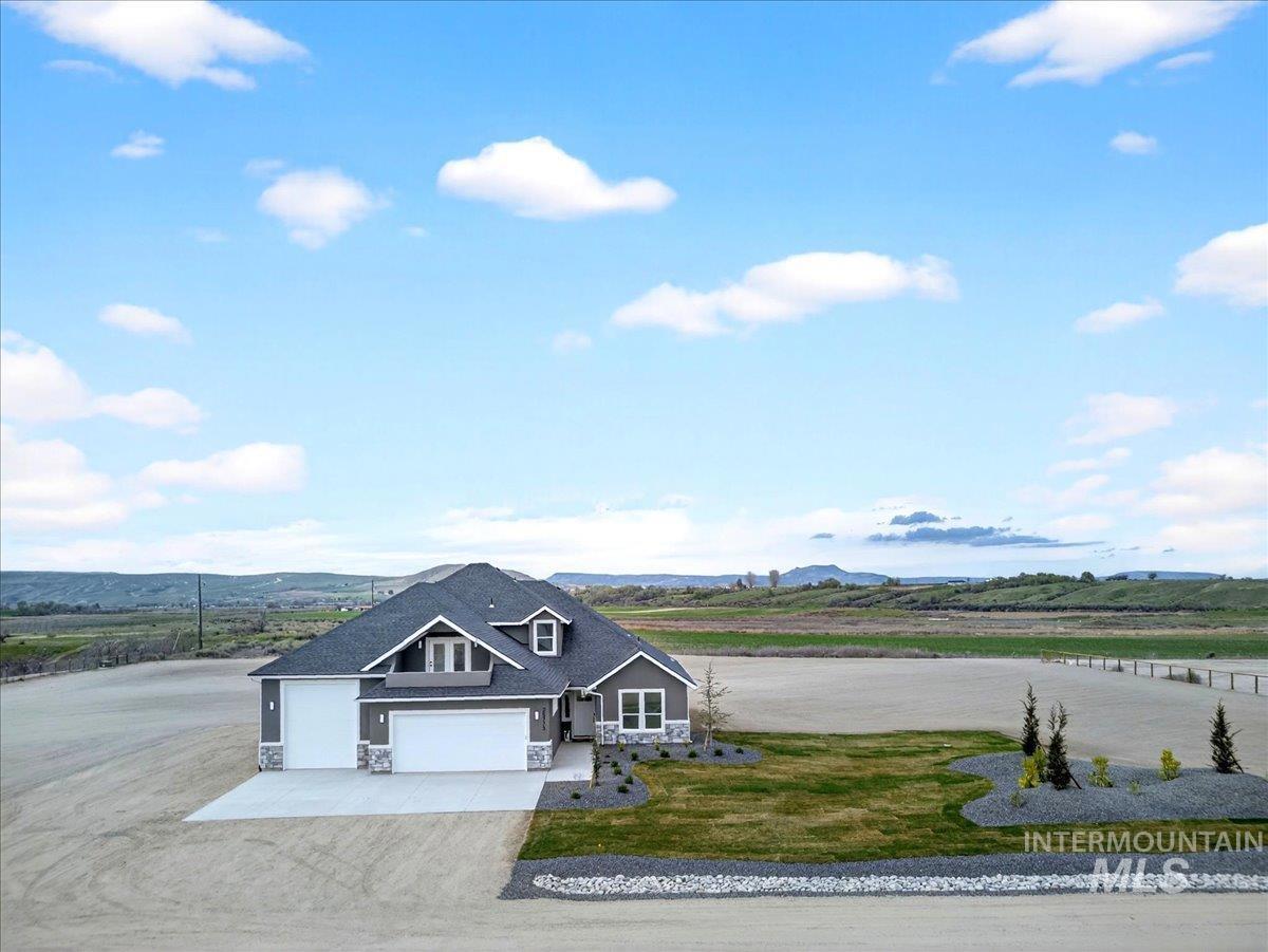 Experience luxury country living at its finest in this exceptional new construction home situated on 2.10 private acres in Parma, Idaho. Offering 2,811 sq. ft., this thoughtfully designed residence features 4 spacious bdrms, 2.5 bths & a versatile upstairs bonus room that easily functions as a 5th bdrm, providing flexible living options to suit your needs. The main living area makes a breathtaking first impression w/soaring vaulted ceilings, a stunning floor-to-ceiling fireplace & an impressive wall of picture windows that flood the home w/natural light while showcasing panoramic views. The primary suite also enjoys expansive windows, creating a peaceful retreat w/incredible scenery. At the heart of the home, the chef’s kitchen is designed to impress w/SS appliances, a double oven, beautiful quartz countertops & a generous walk-in pantry-perfect for entertaining & everyday living. Step outside to the expansive covered patio, ideal for hosting gatherings, relaxing evenings & taking in dramatic Idaho sunsets. The oversized garage includes an RV bay, plus an additional pad for extra RV parking. There is plenty of room for horses, a future shop, recreational vehicles, or even the addition of an ADU-offering excellent potential for multi-generational living. Fully fenced. Located close to the Snake River.