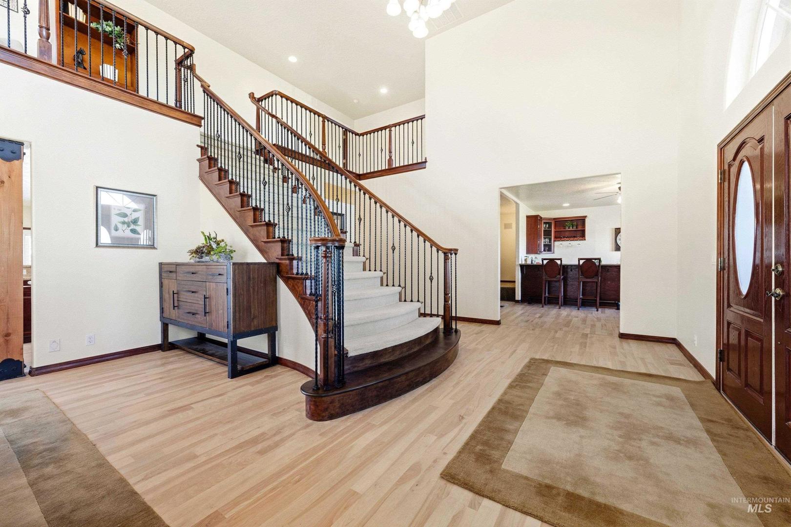 A rare opportunity in South Boise offering a level of flexibility, functionality, and lifestyle that’s difficult to find at this price point—set within Huckleberry Estates, one of Ada County’s final estate-lot communities with no HOA. From the moment you enter, the home opens into a light-filled layout with refined finishes, a grand staircase, and seamless flow between the main living areas and kitchen—designed for both everyday living and effortless entertaining. The primary suite offers a private retreat with balcony access, fireplace, soaking tub, and walk-in shower. Multiple living areas provide flexibility for entertaining, working from home, fitness, or creating dedicated spaces tailored to your lifestyle. One standout feature truly sets this property apart—offering over 2,100 sq ft of garage and shop space, including an RV bay and upper-level flex area, delivering versatility rarely found in this segment. Outdoors, enjoy a thoughtfully designed patio, expansive lawn areas, and established garden beds—ideal for both relaxation and activity. Ideally located with convenient access to downtown Boise, the airport, freeway, and the greater Treasure Valley. There is much more to this property than meets the eye—be sure and check out the tour links!