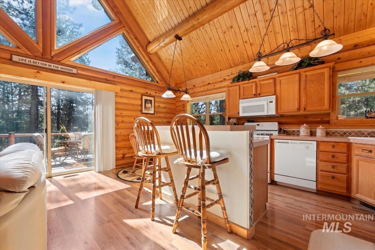 Beautifully maintained by its original owners, this charming log home sits on 1.54 private acres, offering peace and seclusion in a stunning mountain setting. A dramatic wall of windows fills the home with natural light and showcases serene timber views. The main level features two bedrooms and a full bath, while the loft—currently used as a third bedroom—includes its own full bathroom and flexible living space. Step outside onto the newer Trex deck to enjoy fresh mountain air and watch elk and deer pass by. The manicured grounds include a cozy firepit for starlit evenings, a garden area, and a storage shed for all your outdoor gear. With automatic sprinklers, community water, and year-round road maintenance, mountain living is both comfortable and convenient. Located just 60 scenic minutes from Boise, Garden Valley offers the perfect balance of adventure and relaxation, with nearby access to rafting, hiking, snowmobiling, trails, pickleball, and golf.