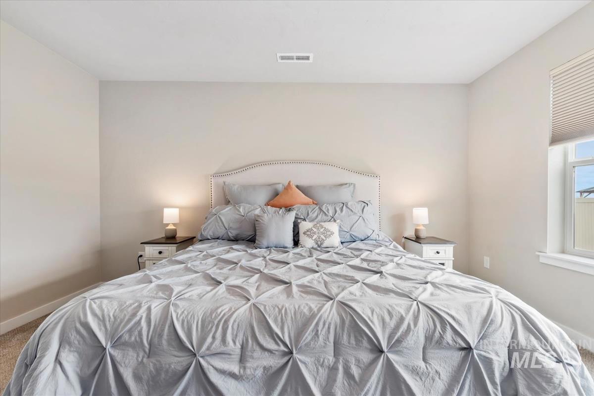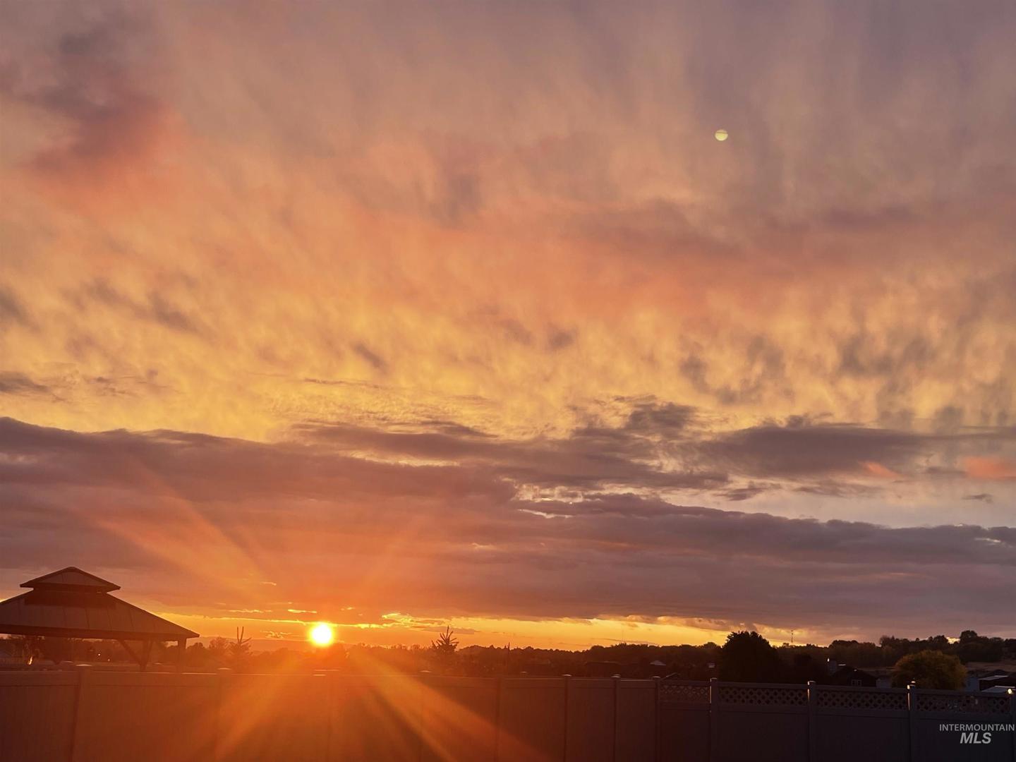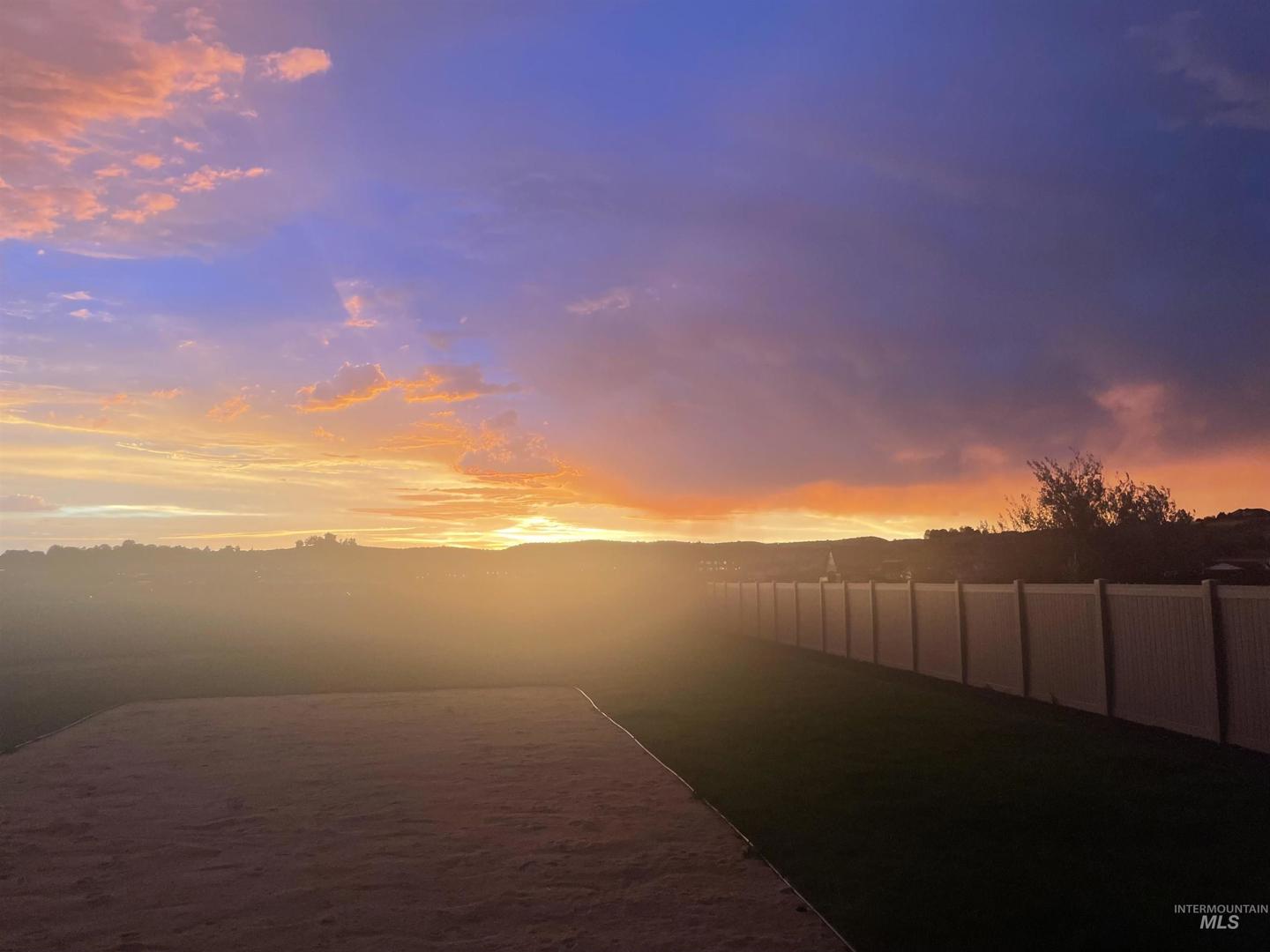 Welcome to this beautifully maintained 3 bedroom/2 bath home with a dedicated office & versatile bonus rm, offering 2290 square feet of thoughtfully designed living space in a peaceful Star, Idaho neighborhood. Built in 2022, this home showcases modern style and quality upgrades throughout. Step inside to find a bright, open layout featuring neutral contemporary color, upgraded window coverings,& elegant extra-wide trim around doors & windows w/crisp white finishes that create a clean, sophisticated look. The flexible floor plan includes a private office perfect for working from home and a spacious bonus room ideal for a fourth bedroom, game room or media center. Outside is where this property shines. Situated on a generous .33 acre lot,the extra large backyard offers endless possibilities. Enjoy relaxing or entertaining under the extended covered patio with breathtaking views of the sunsets and surrounding hillside. Located in a quiet welcoming community, residence enjoy access to a neighborhood park, perfect for walking, playing and outdoor enjoyment. the nearly new home combines space, style and scenery-don`t miss your chance make it yours!